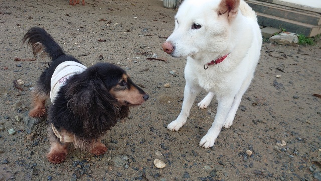 見学に触れ合い、老犬について・保護活動についての話をさせていただきました。