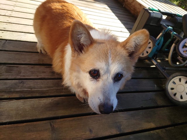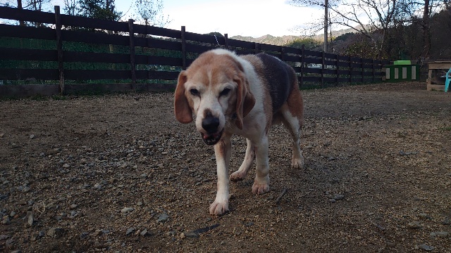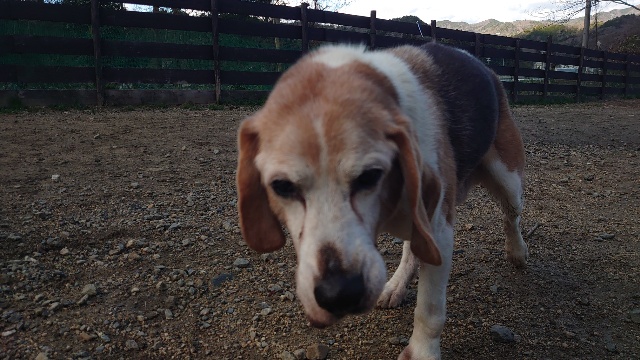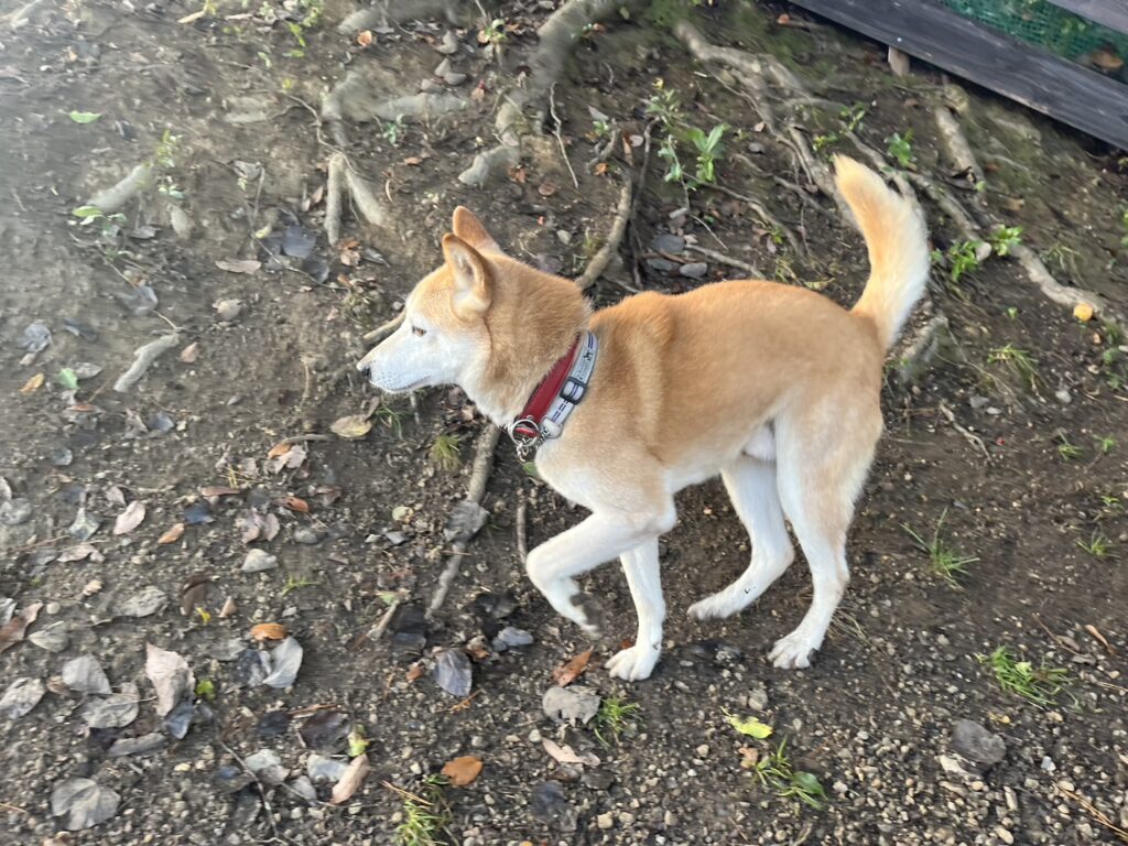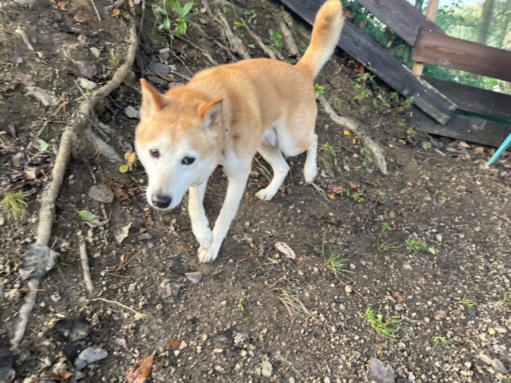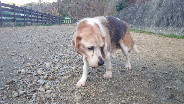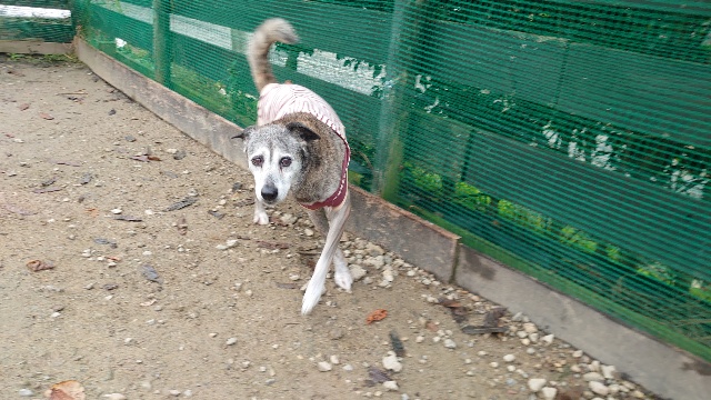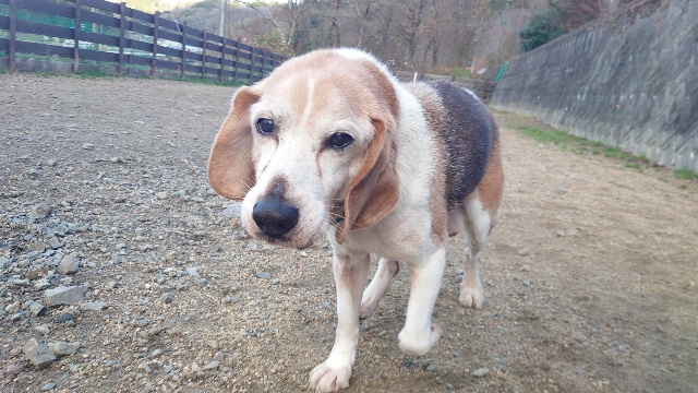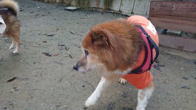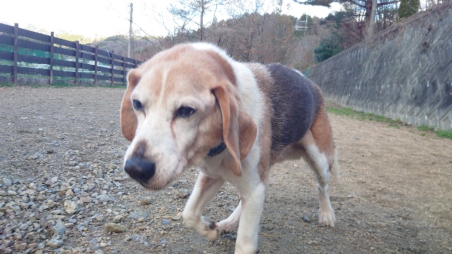 普段よちよち歩きの超シニア犬も跳ねるように歩きます^^