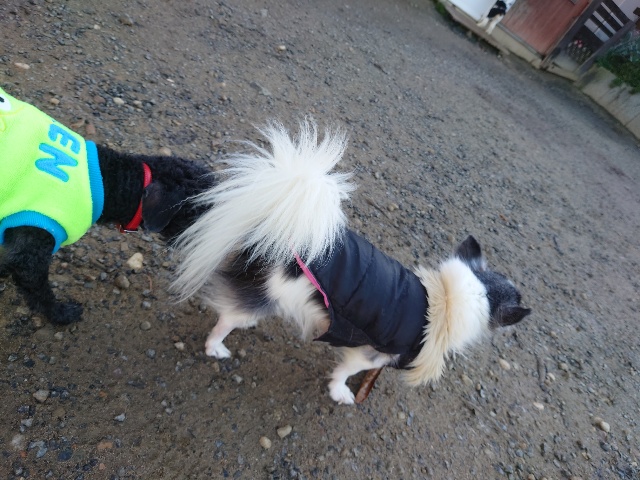 ワンコ達もまだ寒さに慣れていません。