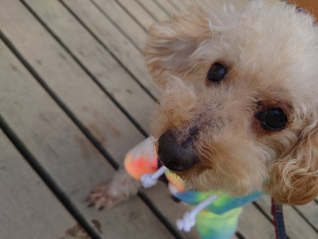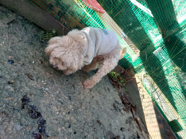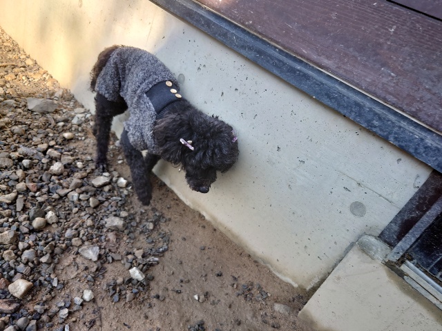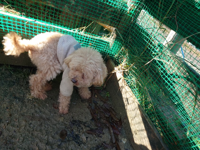 帰る日、飼い主様に説明するも「この子は犬小屋が好きだから」と、、、辛い気持ちになりました。