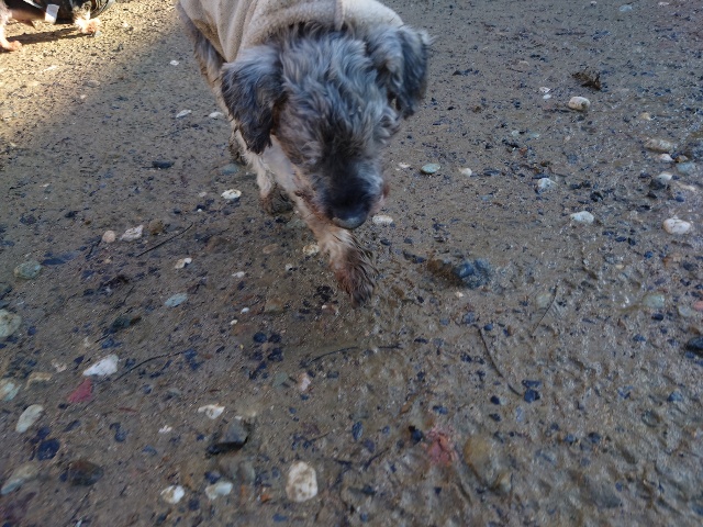 以前 真夏に1週間ほどのお預かりをしたワンコ、お迎えに行くと外の犬小屋につながれていました。