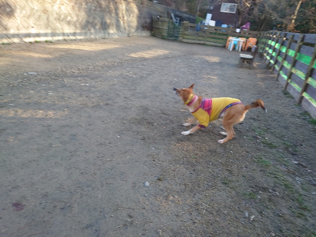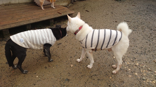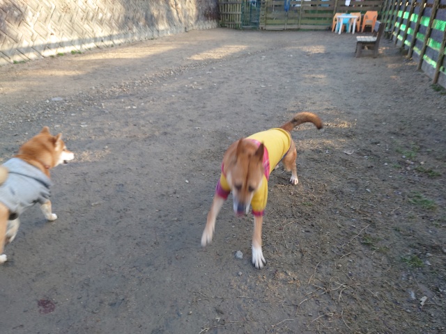 ほかのワンコと遊ぶとき、群れに任せます^^
