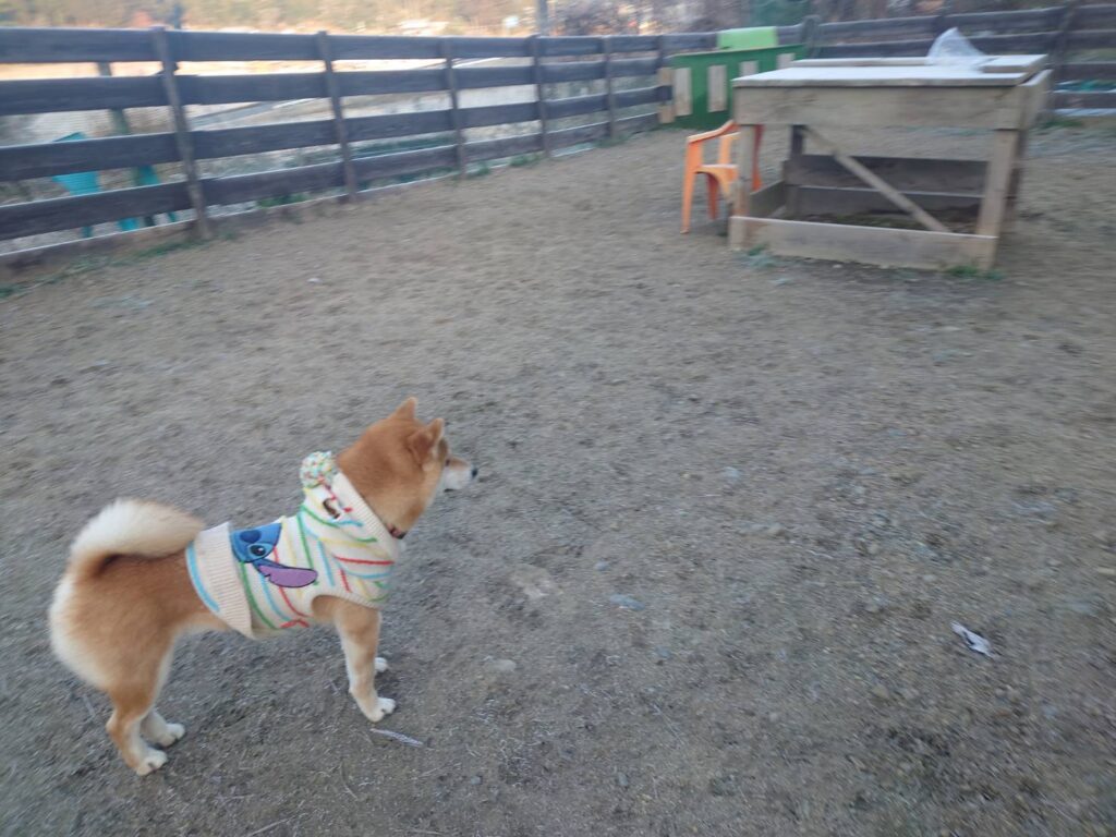 自然の中の老犬ホームあん、都会で暮らしてきたワンコ達にとっては非日常的な環境です。