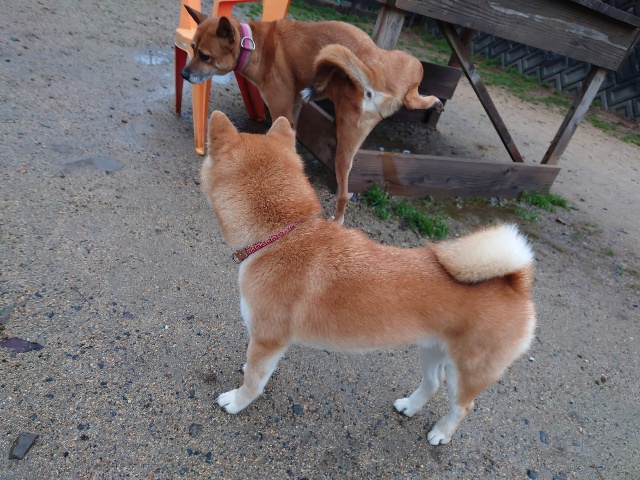 カフェは団体さんのディナーのお客様がワンコと一緒に来てくださっています。