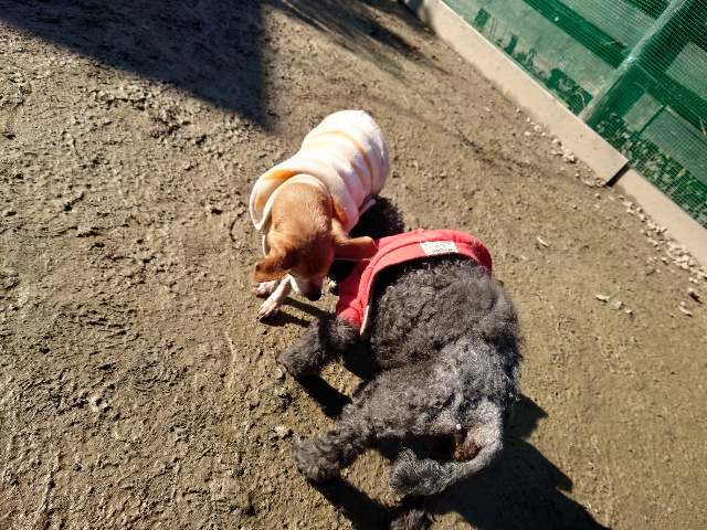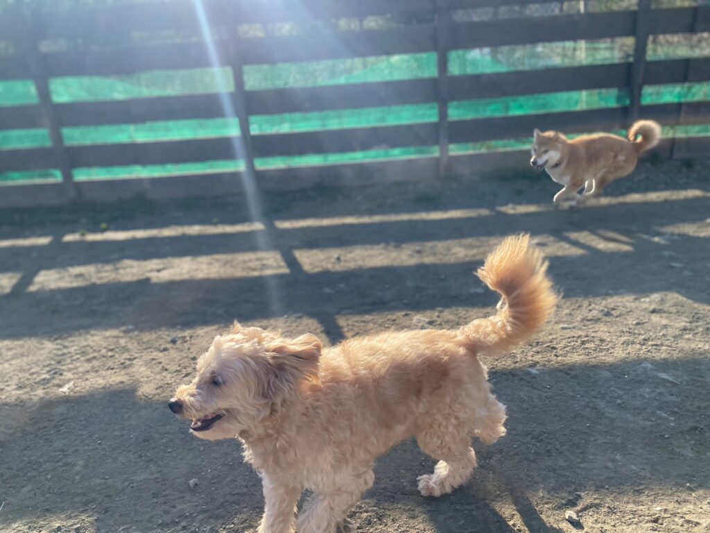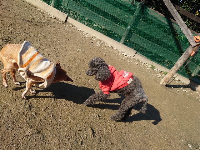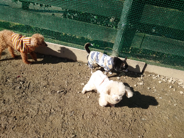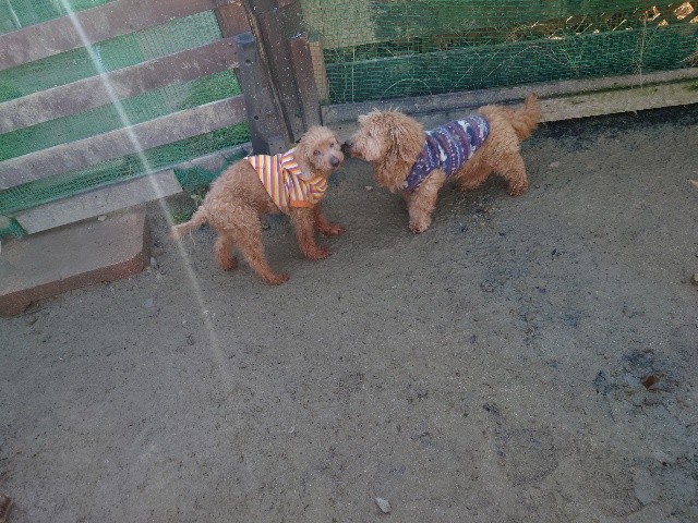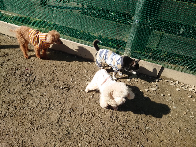 日中と朝晩の気温差、犬舎内は年間通して安定した快適温度を保っていますが外に出ると気温差があります。