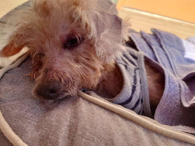 今日はスタッフさんの愛犬ポンズが去勢手術のために大阪のホームドクターの病院に。