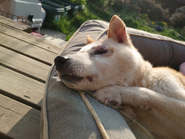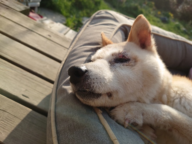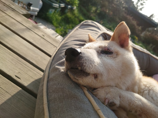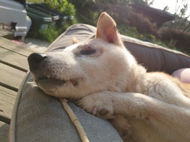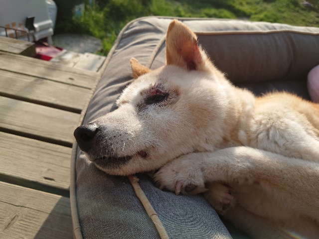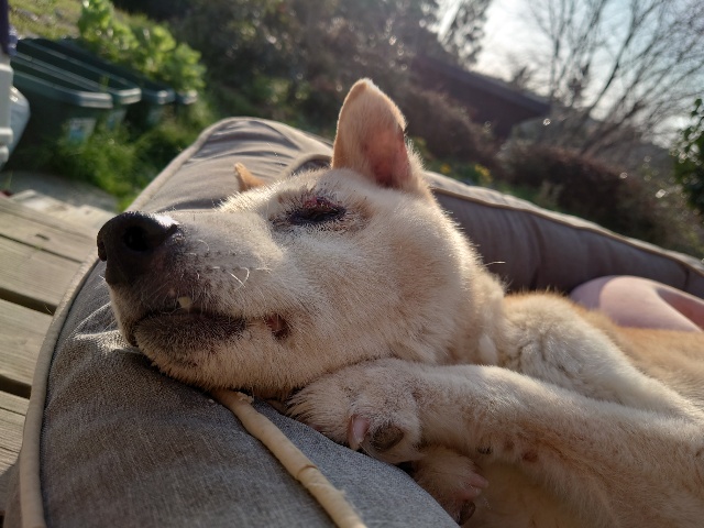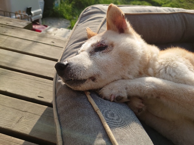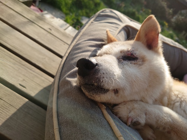 先日 避妊手術をした保護犬ちゃんのミリン、順調です^^
