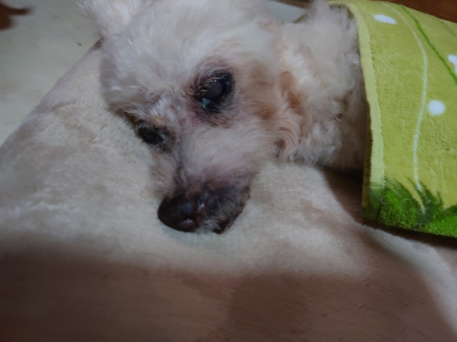 昼夜逆転で夜中に介護ケアをすることが多い認知症ワンコの飼い主様、精神的にも参ってしまいパニックになって掛けてこられる方もいます。