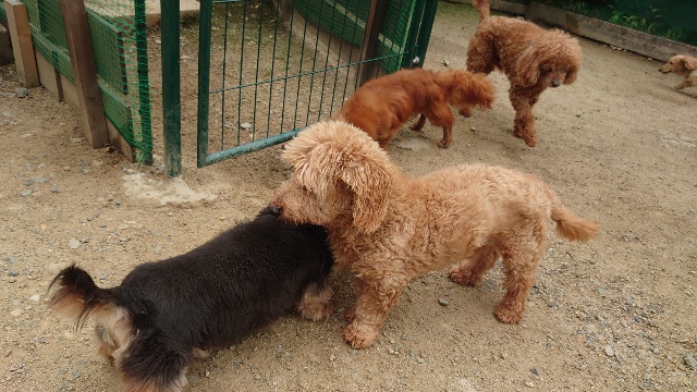 人間は口で説明し頭で理解ができますがワンコ達は理解ができないので慣れてくれるまで待つしかありません。