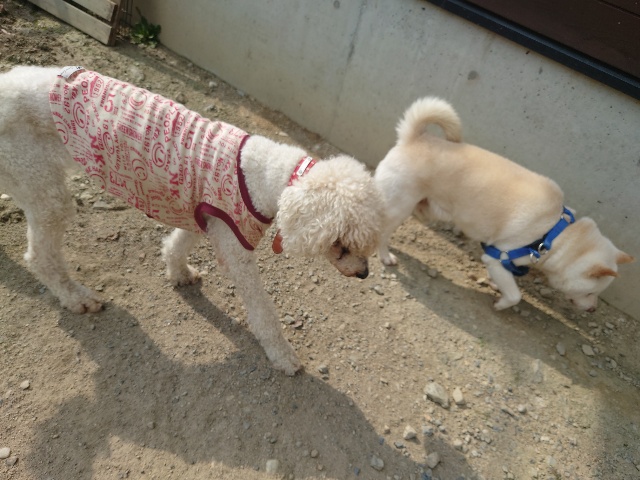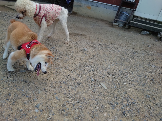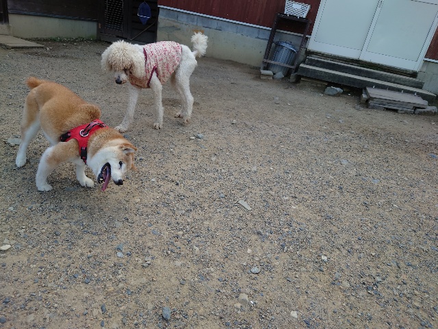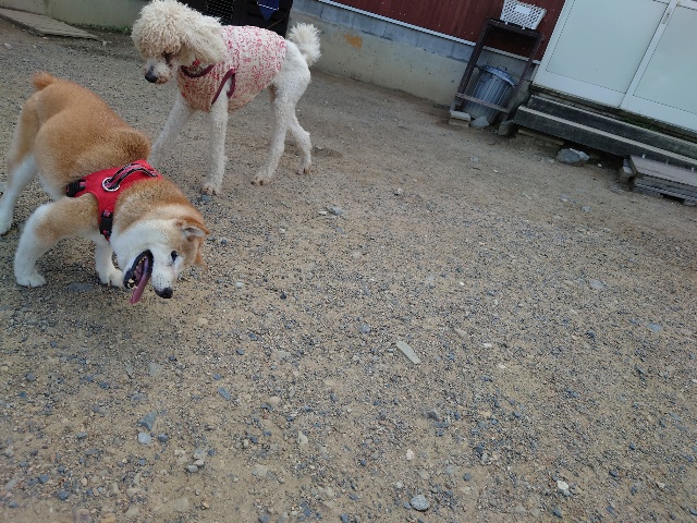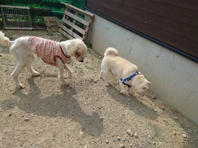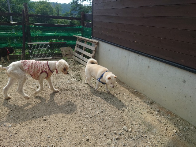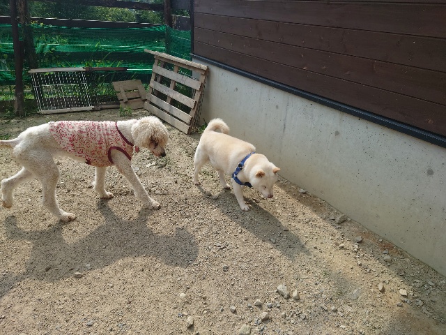 現在 1歳のトイプーちゃんに11カ月のチワワちゃんが1ヵ月~2カ月の予定でお泊りに来ています。