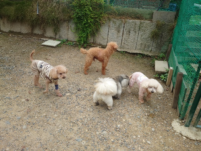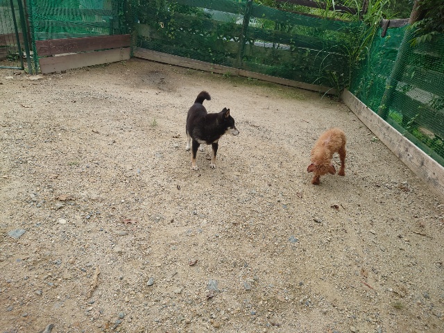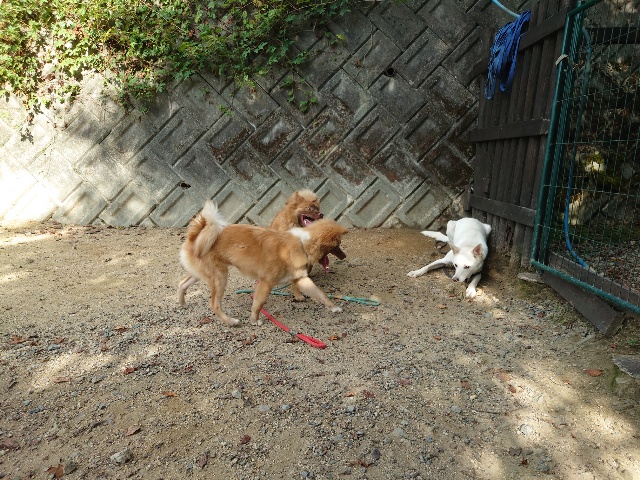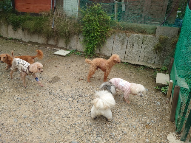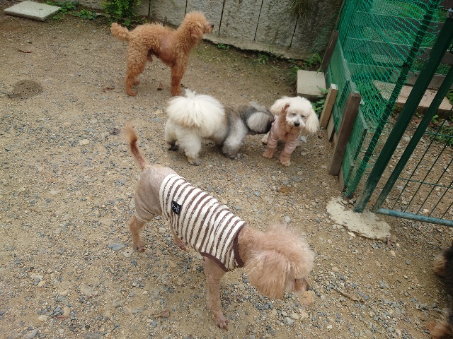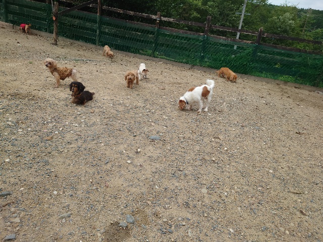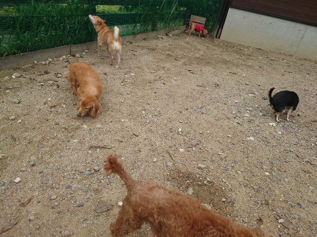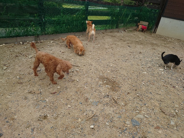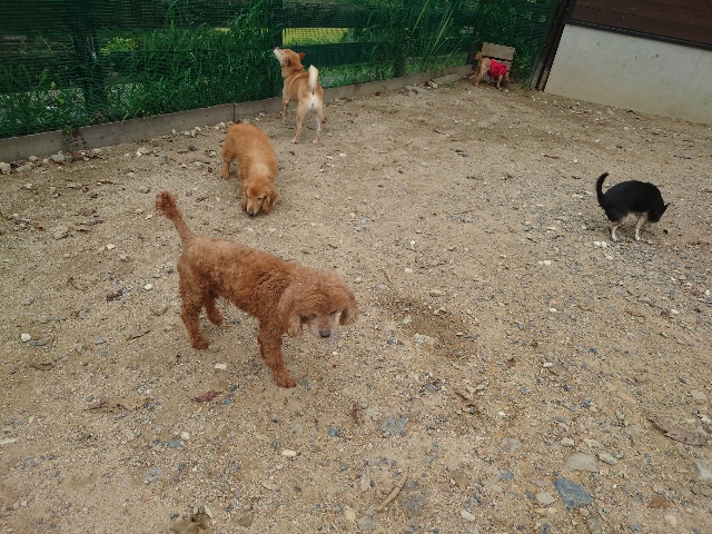 早朝より外に出ているワンコ達、最も暑い11時~15時はゆっくり涼しい部屋の中で過ごします。
