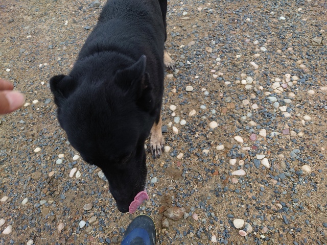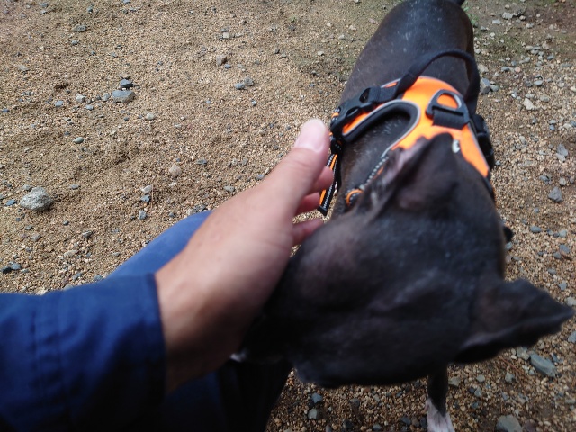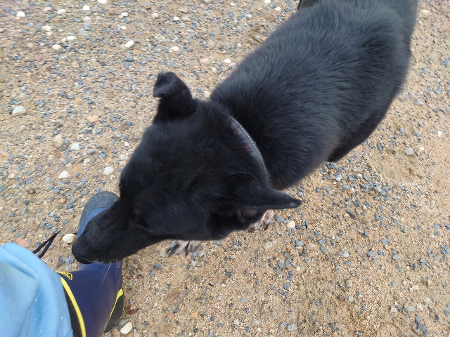 下流の穏やかな場所でワンコと一緒に川遊び、上流で野生動物が水に入り細菌が流されてきます。