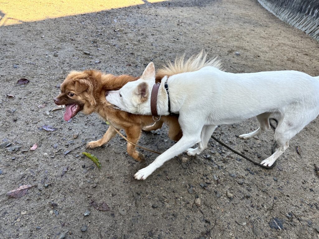 噛み犬の猛者、保護犬のケイの行動は勉強になります。