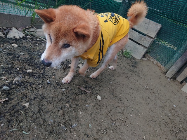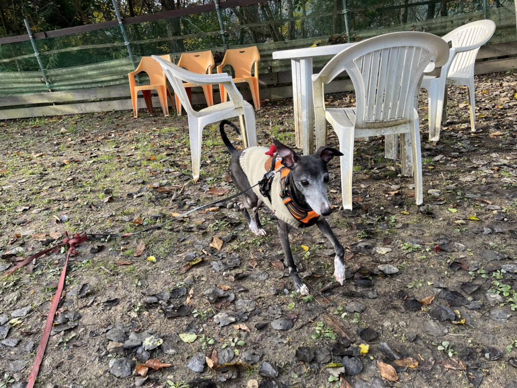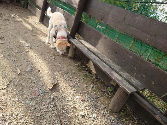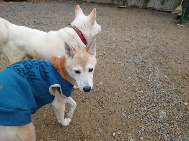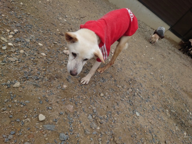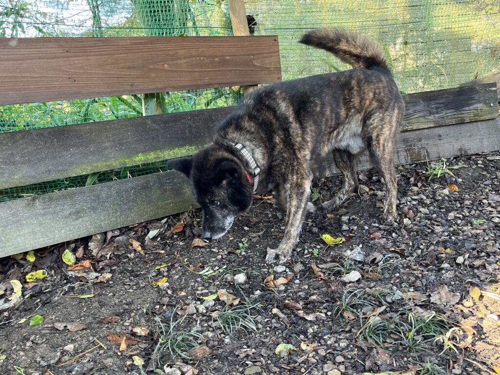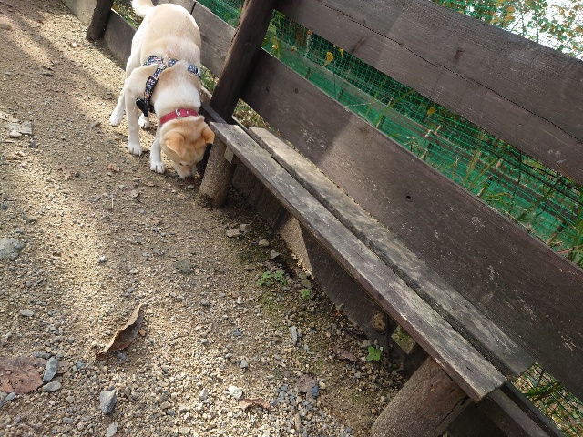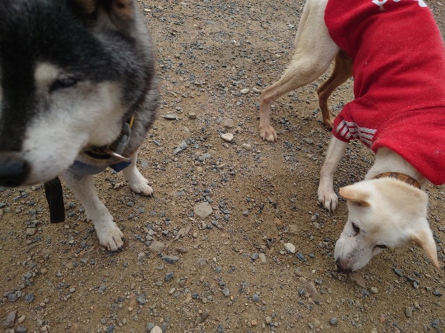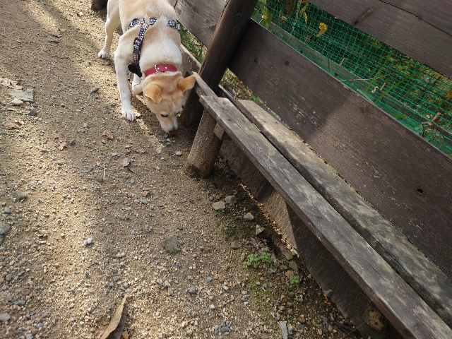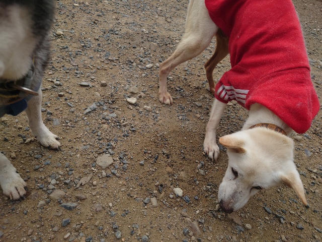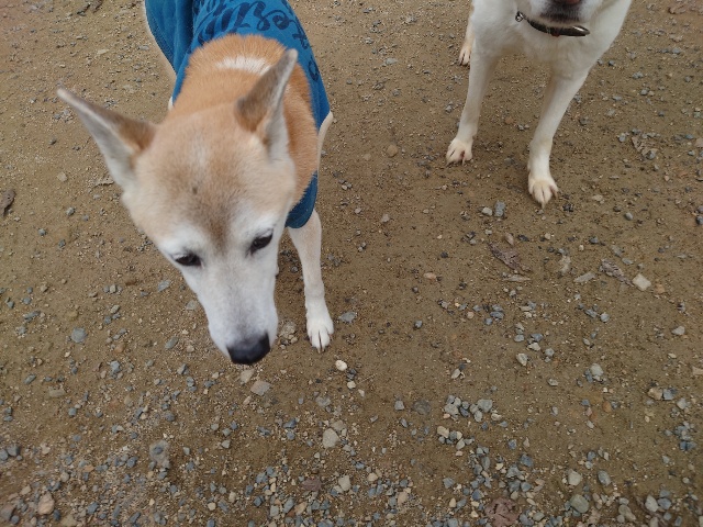 よちよち歩きの子もいるシニア犬、リードをつないでの散歩より自由にできるランの方が楽です。