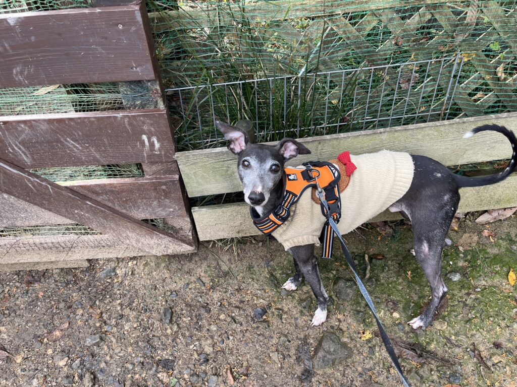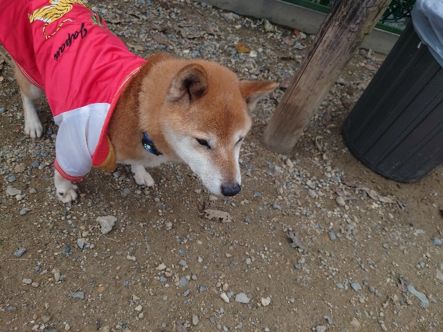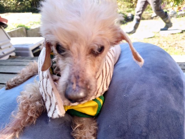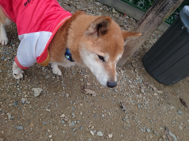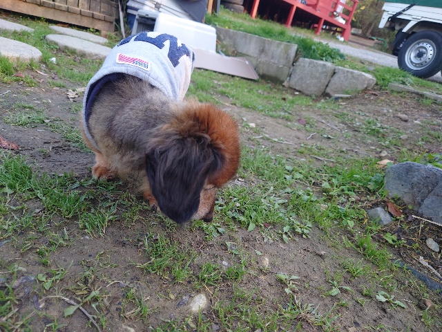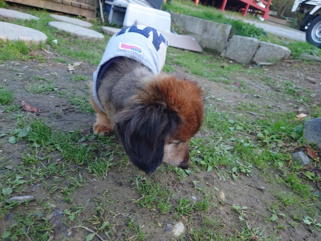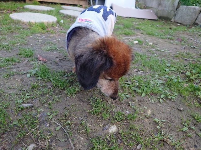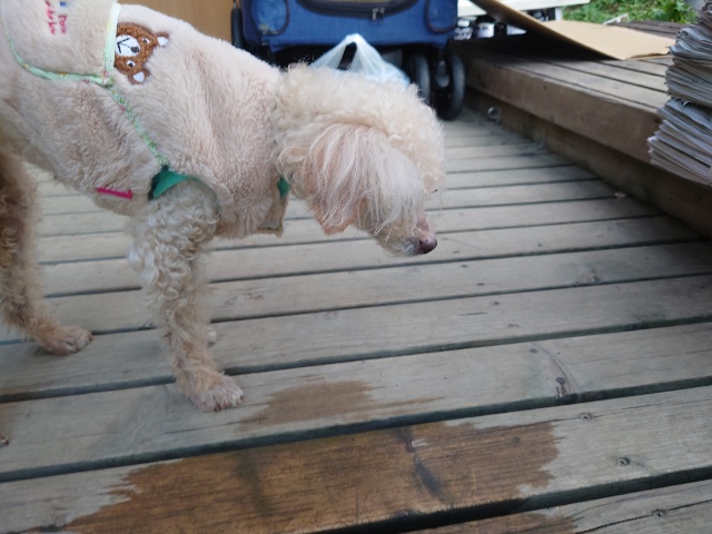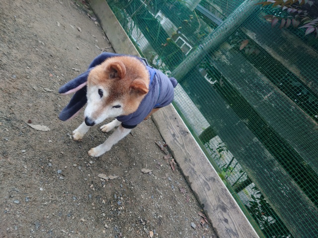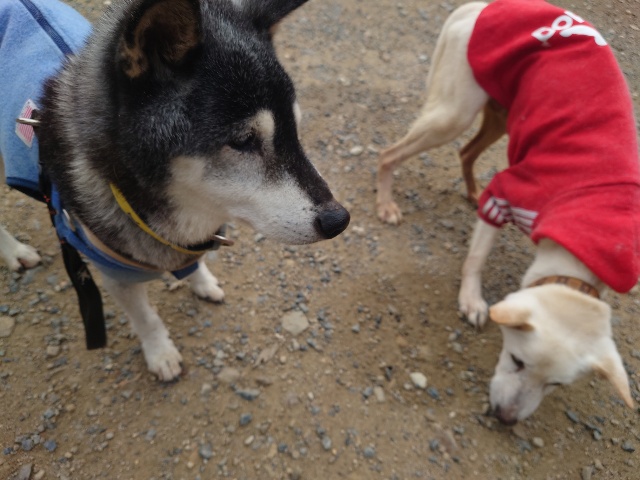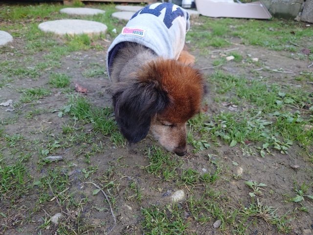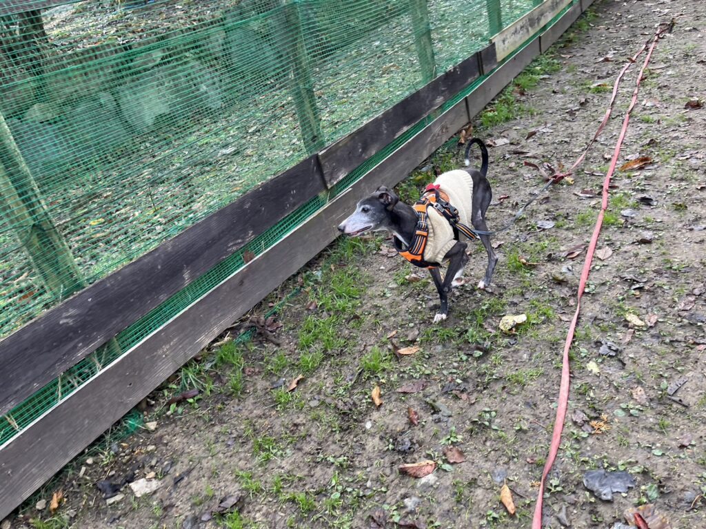 よちよち歩きの子もいるシニア犬、リードをつないでの散歩より自由にできるランの方が楽です。