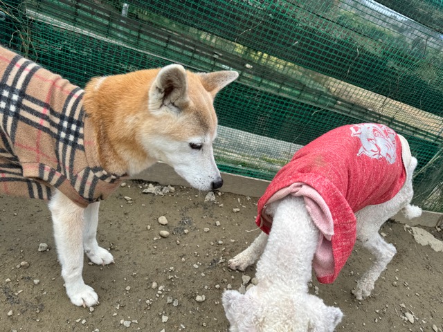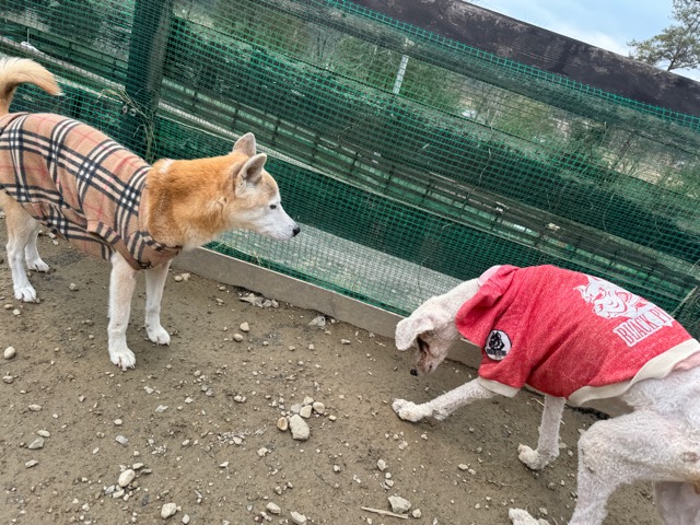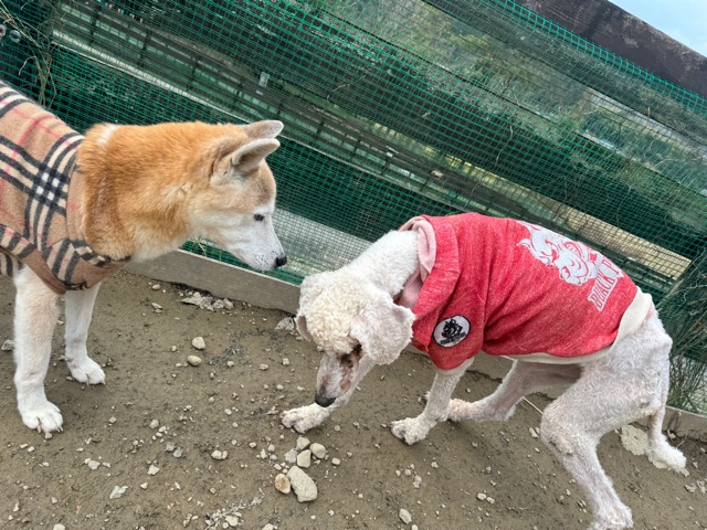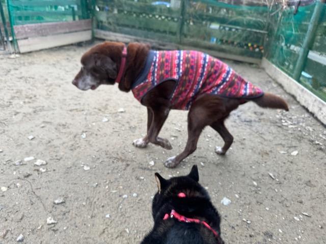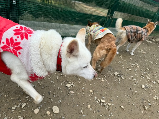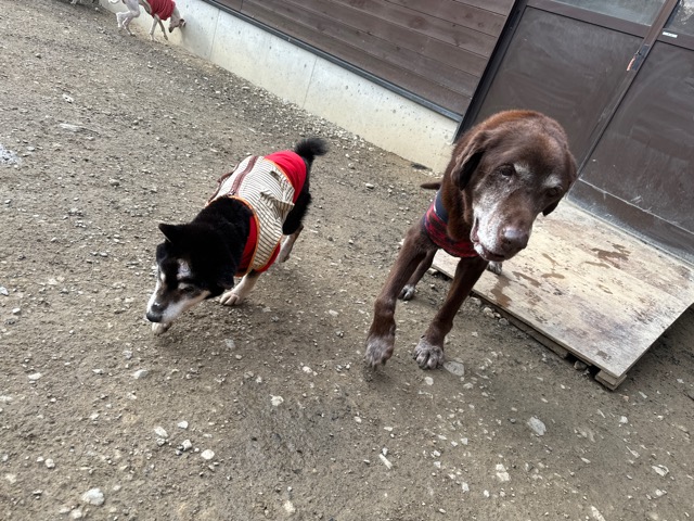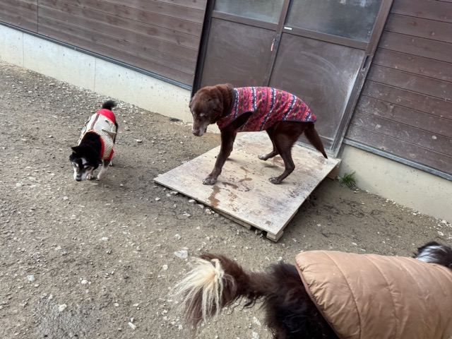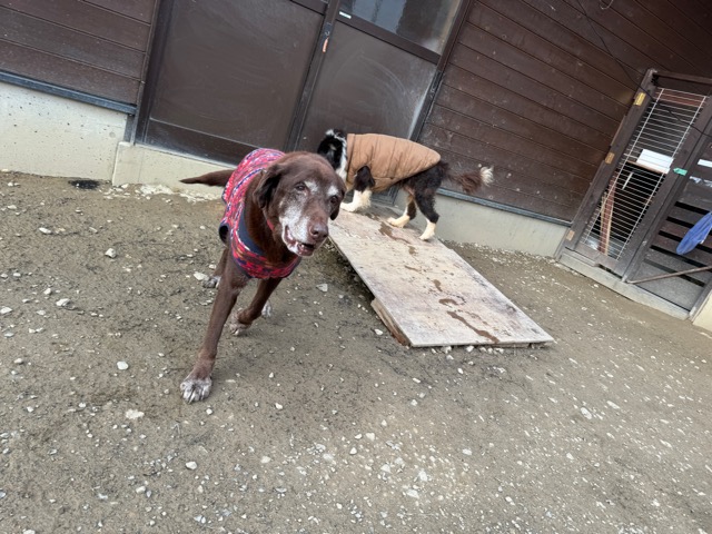 朝からほとんど気温が上がっていないためランの時間は短めに、要介護の子達は室内でゆっくり過ごしました。