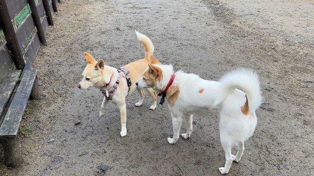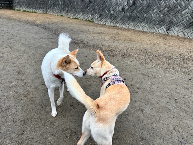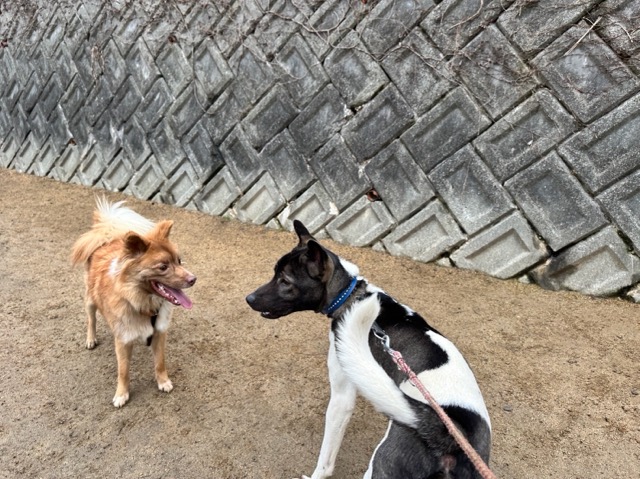 犬と飼い主さんとの距離が離れていてリードが良く見えないので自転車とのニアミスも多く見ました。