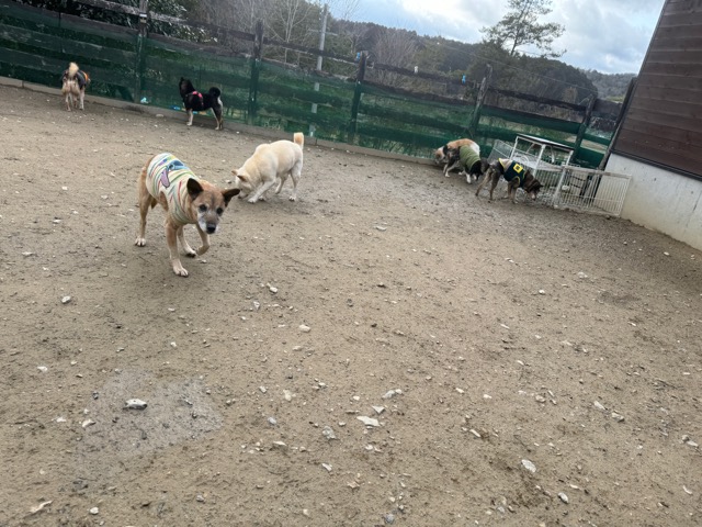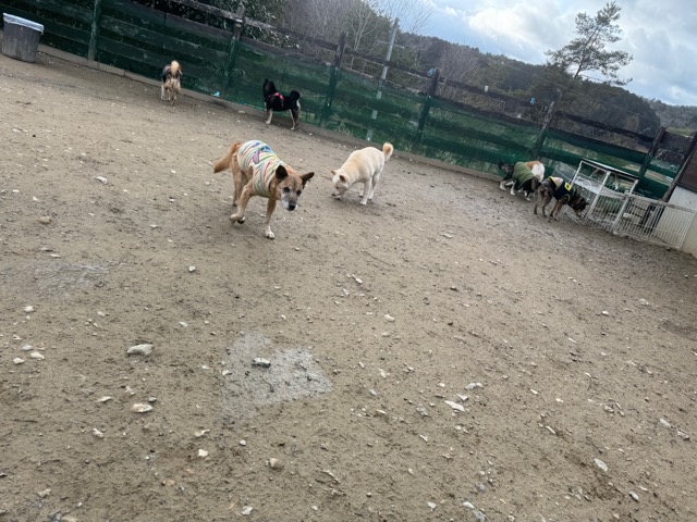風もなく穏やかな日、ワンコ達のんびりとした空気です。