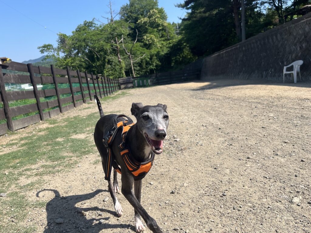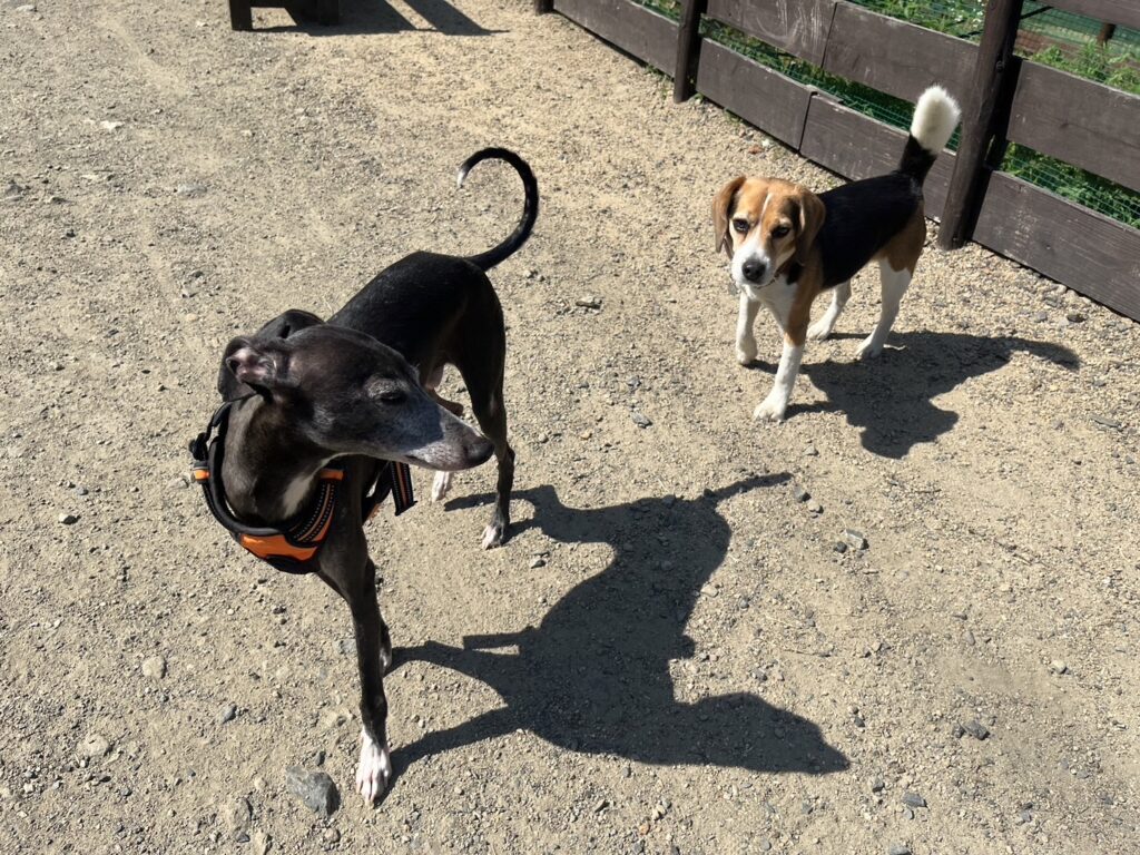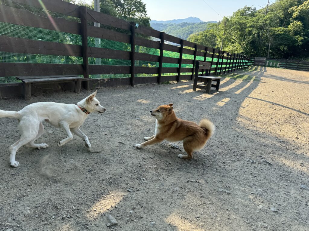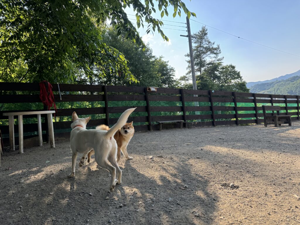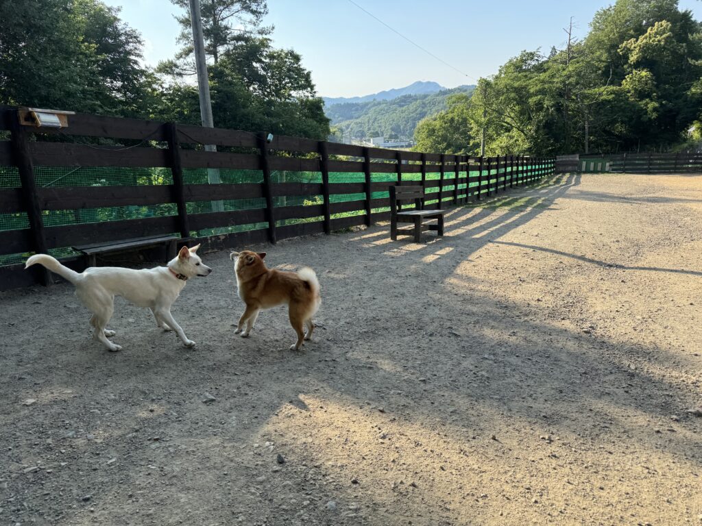 ドッグランは土なのでアスファルトのような高温にはなりません。