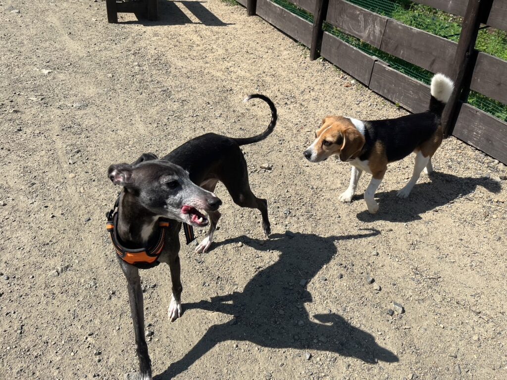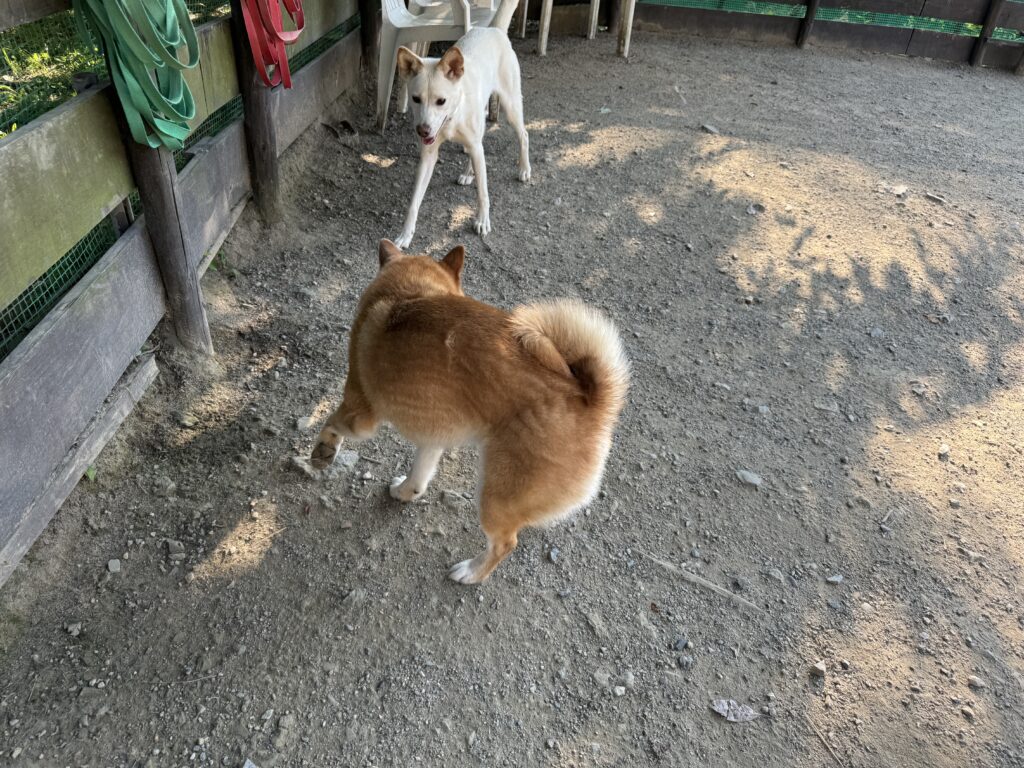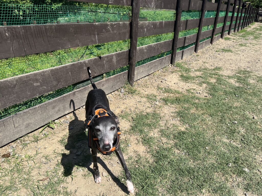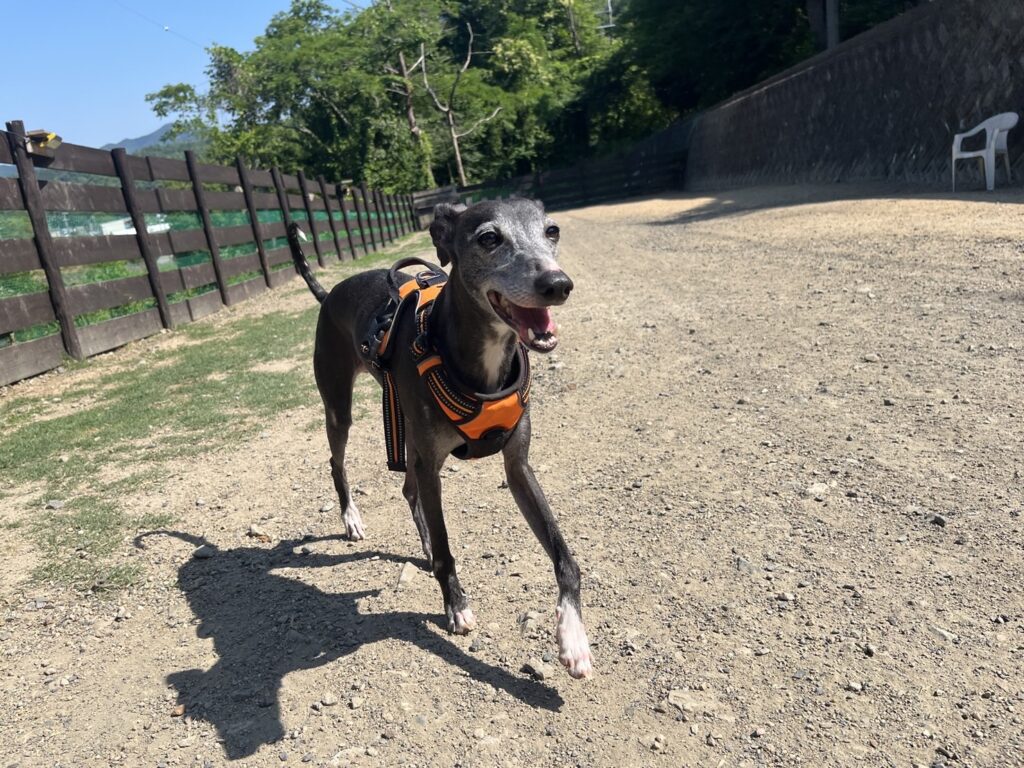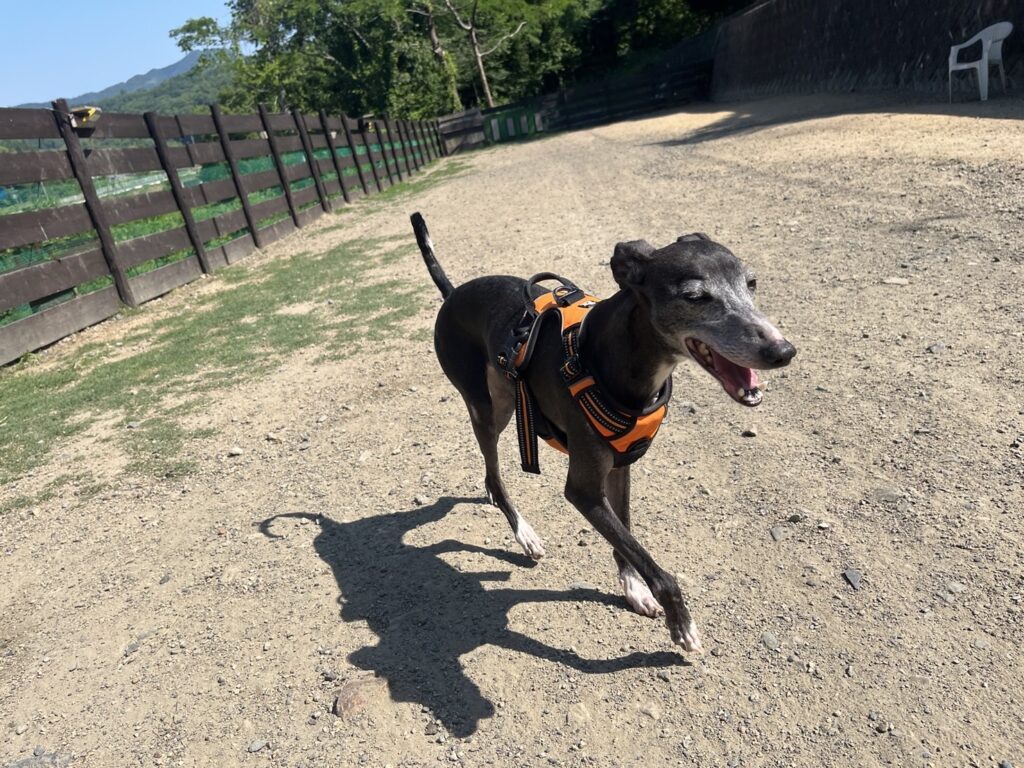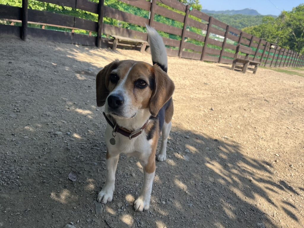 ドッグランは土なのでアスファルトのような高温にはなりません。
