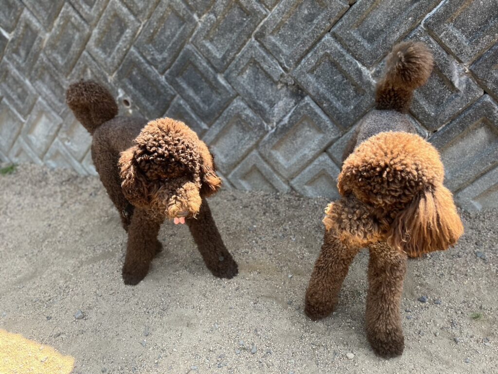 暑さ対策、シニアワンコ達は特に無理をさせないようにしないと。