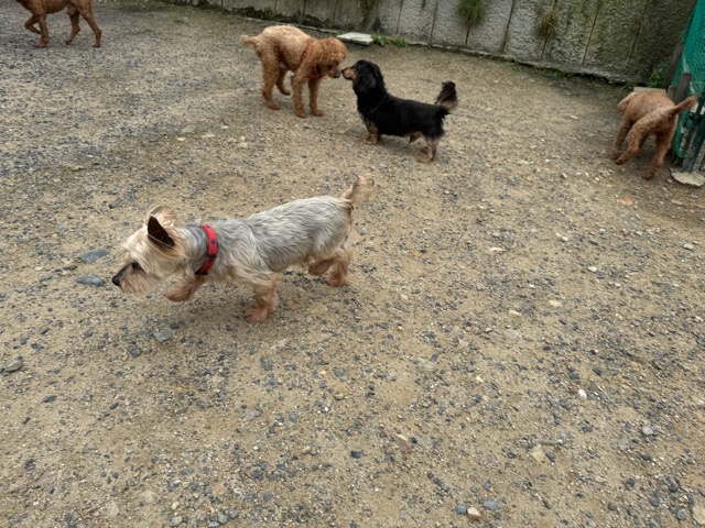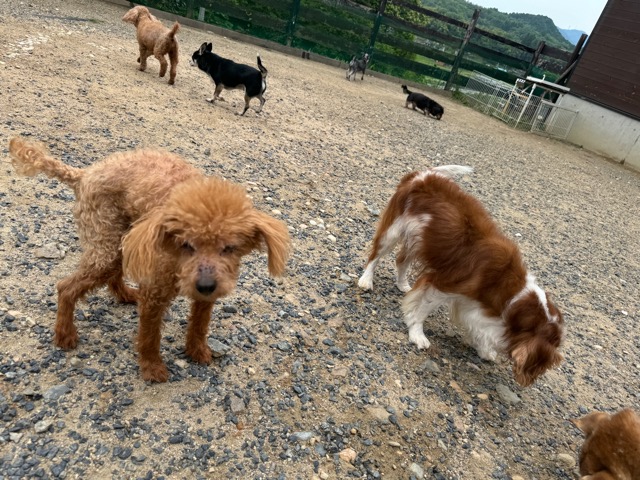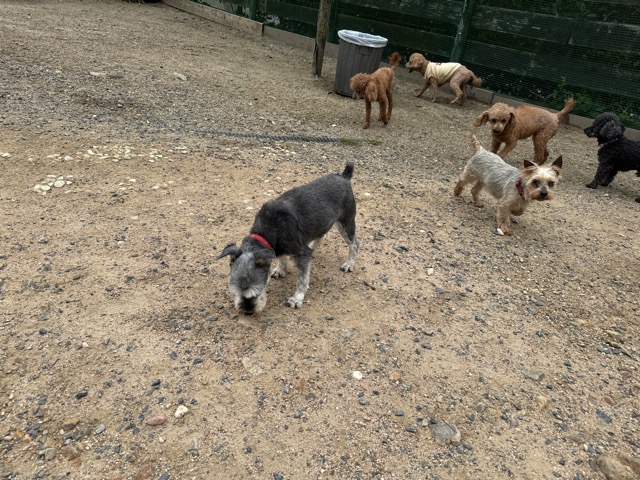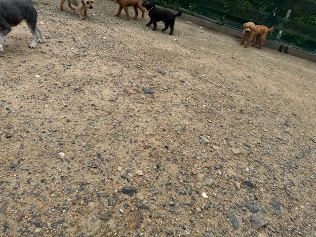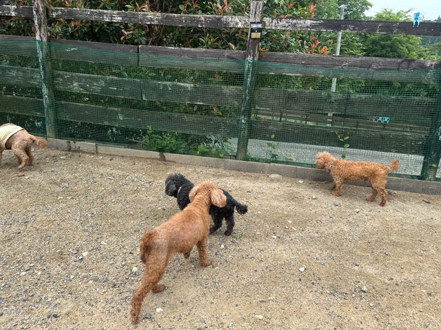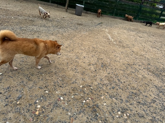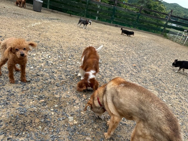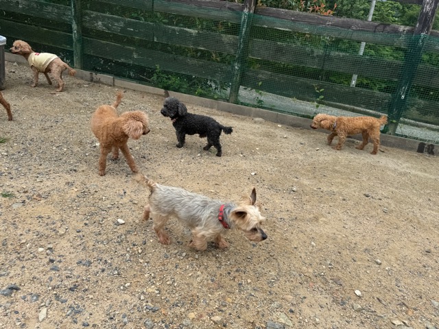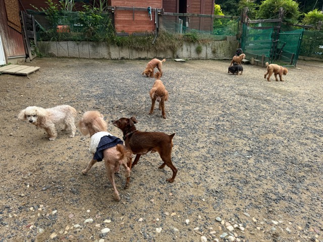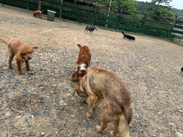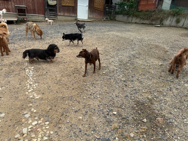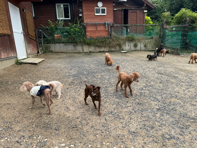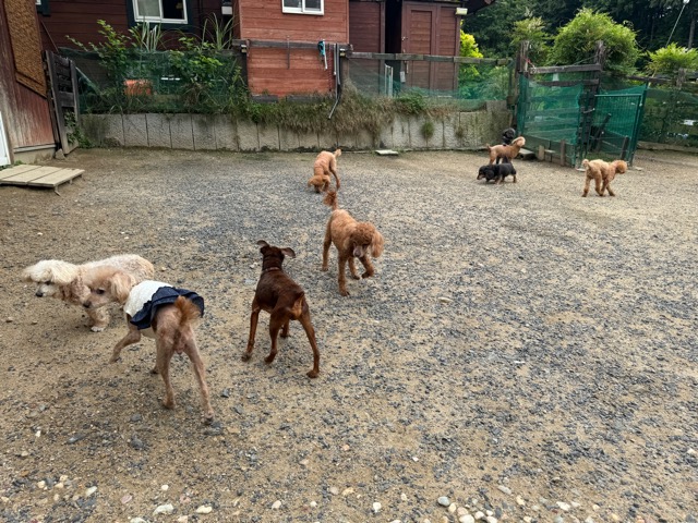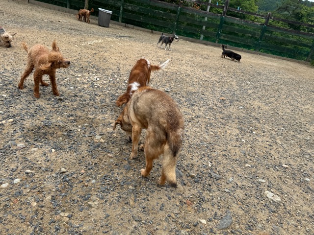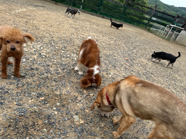 今日はラブラドール3頭にプロットハウンドにゴールデン、雑種のワンコ達も4頭一緒に。