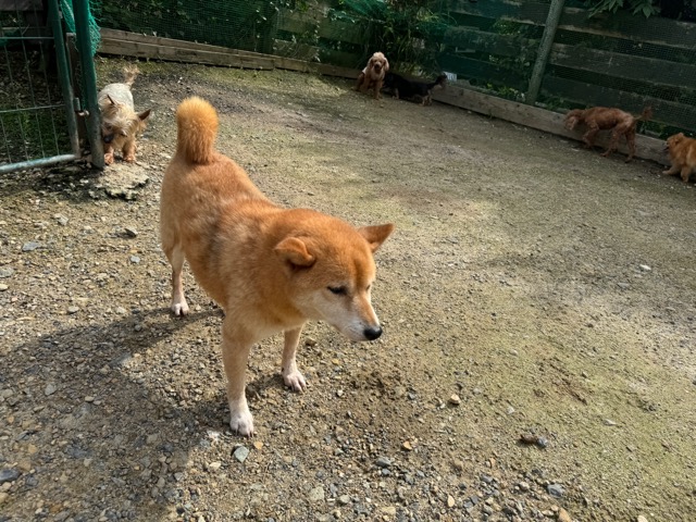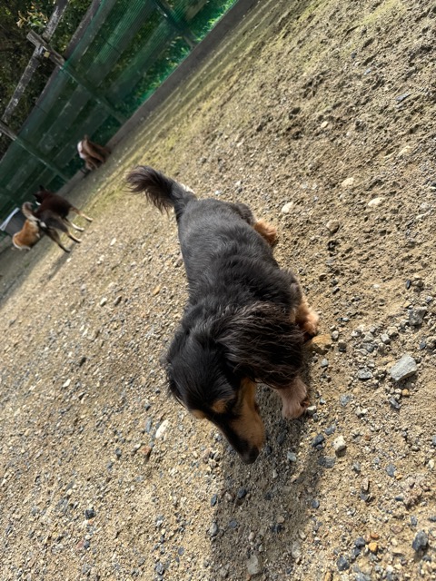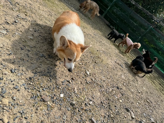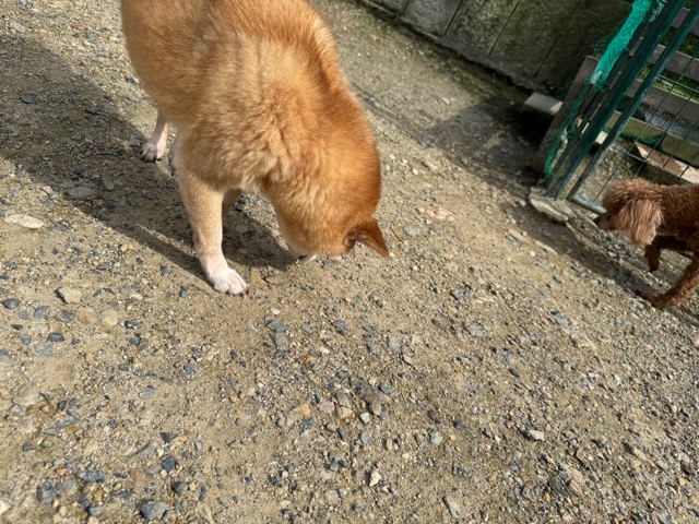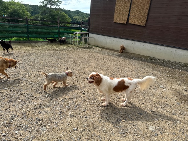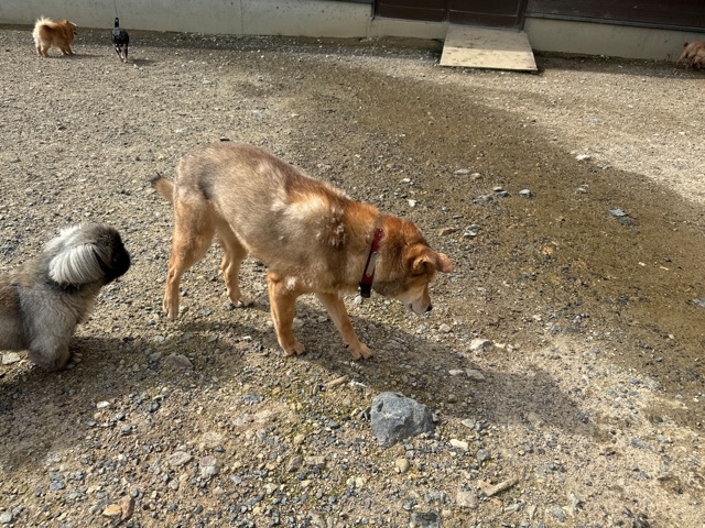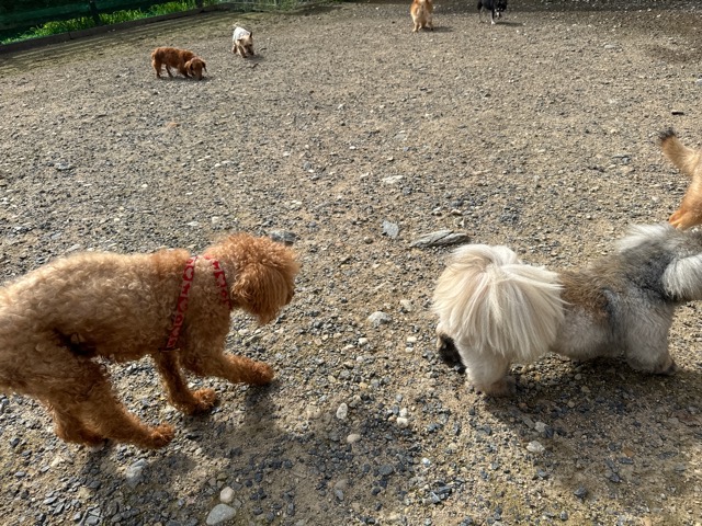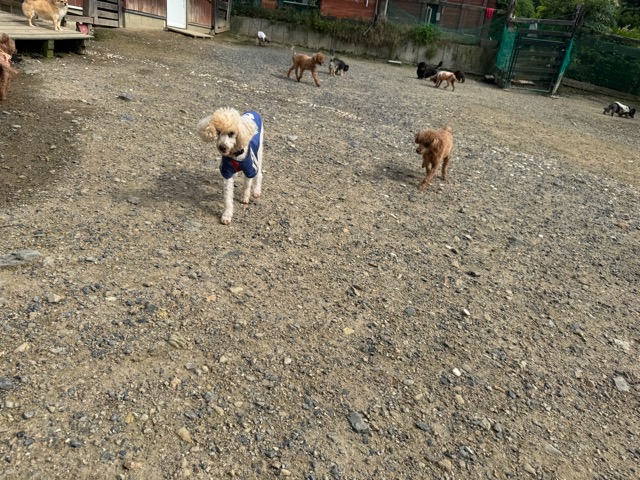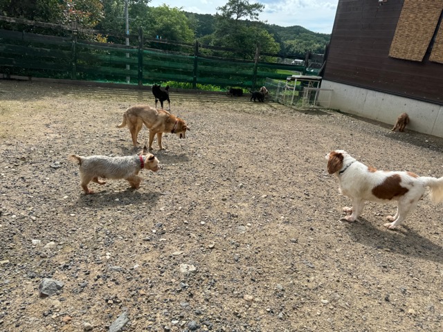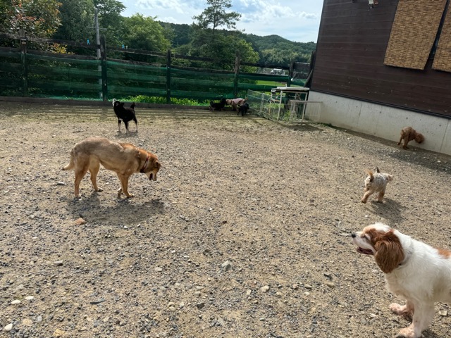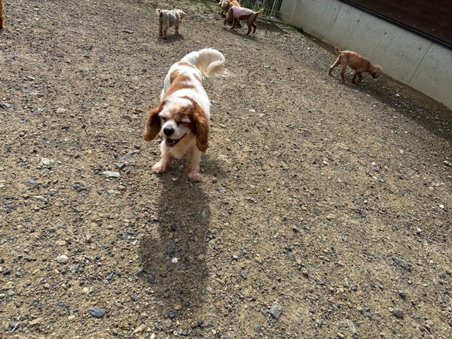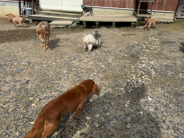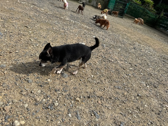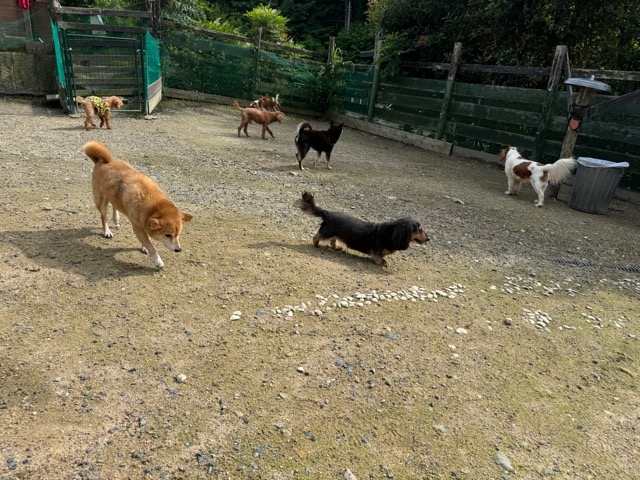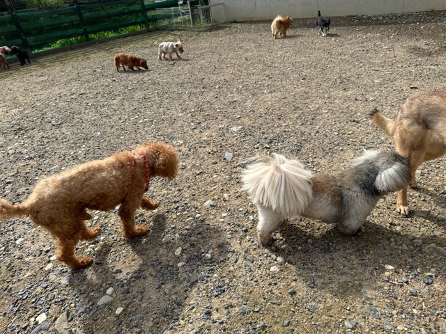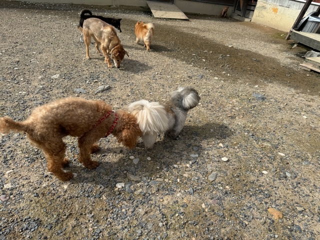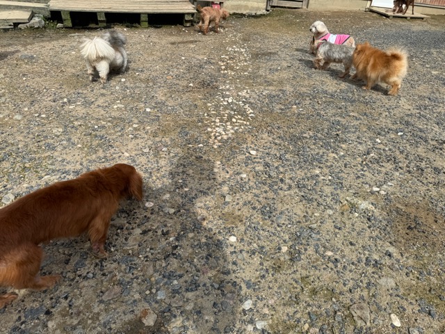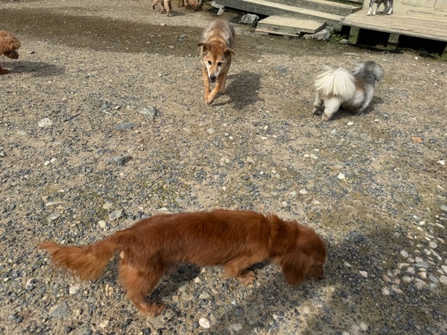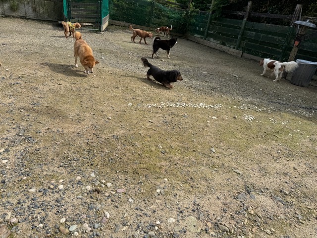 ランでの過ごし方はそれぞれ自由に、遊ぶ子もいれば匂いを嗅いでストレス発散の子も^^
