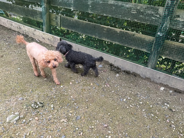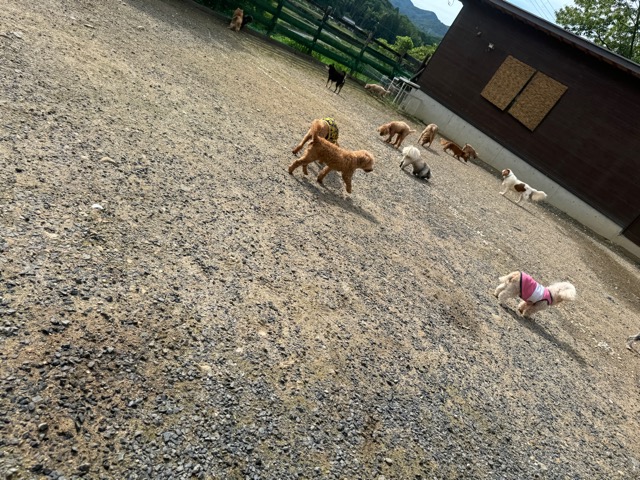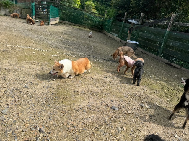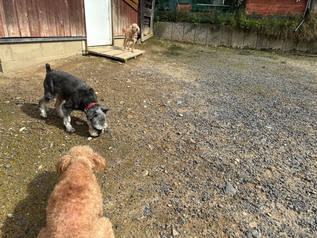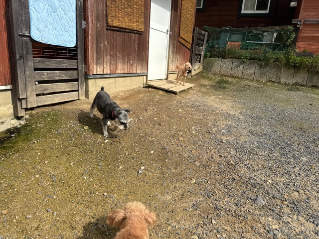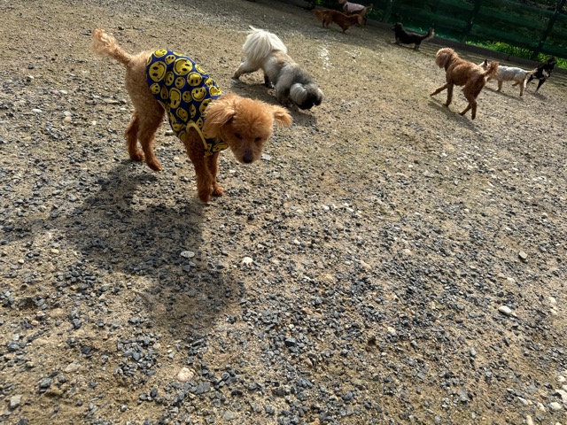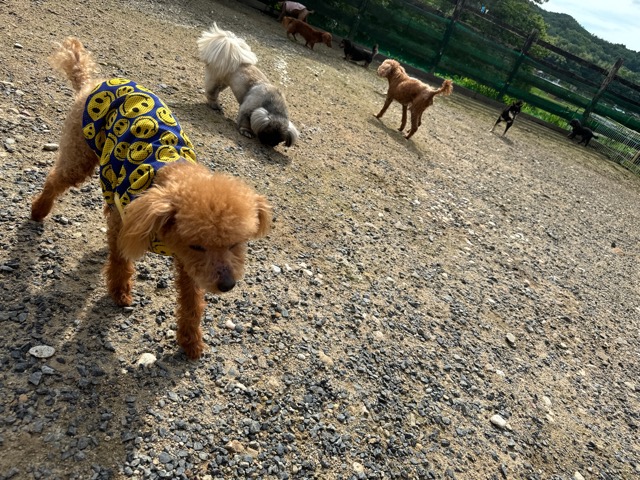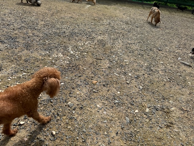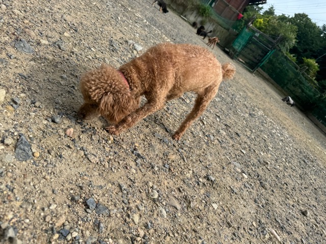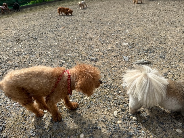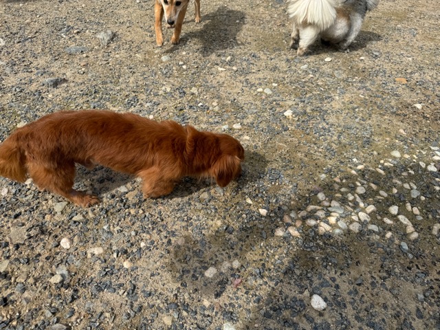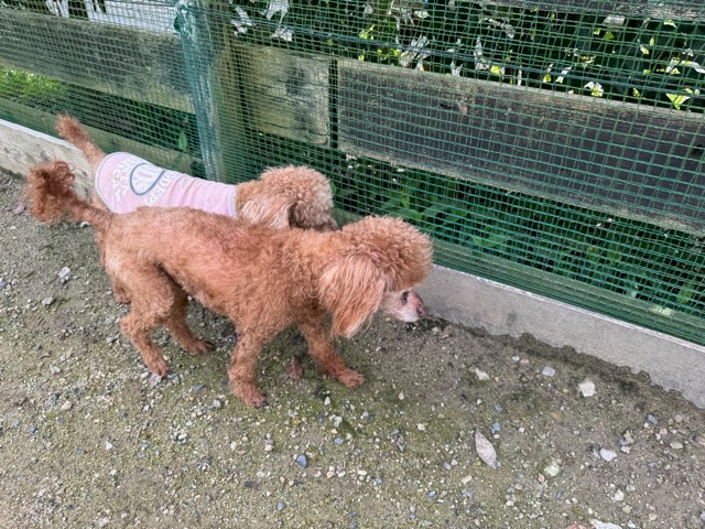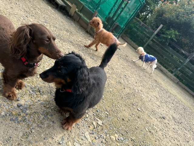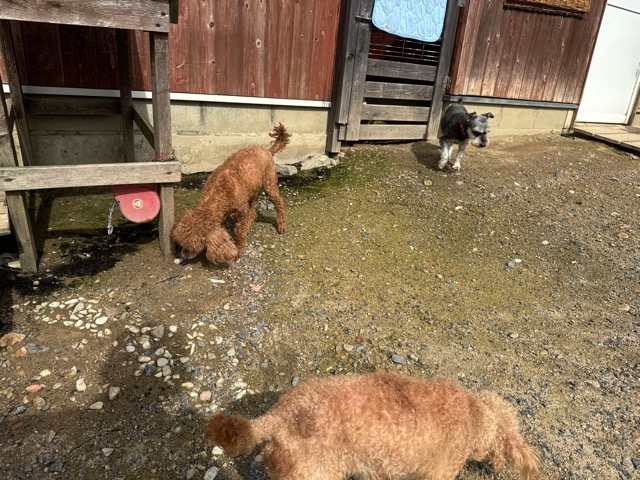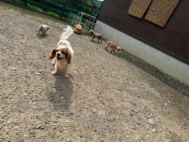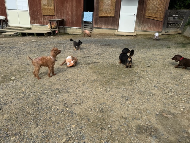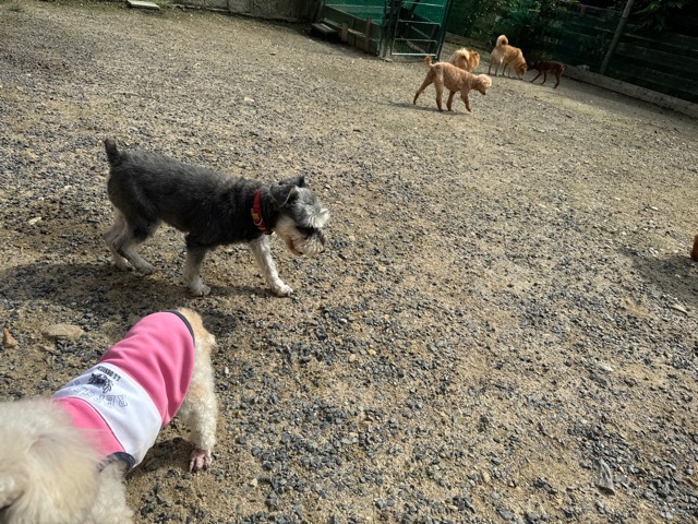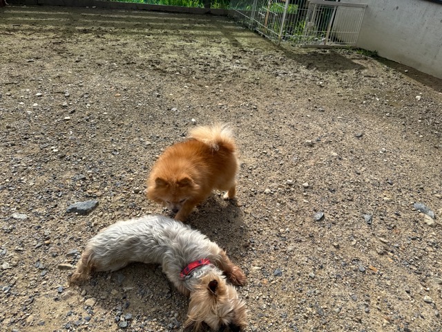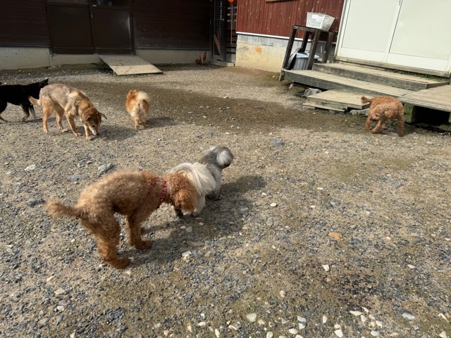 ランでの過ごし方はそれぞれ自由に、遊ぶ子もいれば匂いを嗅いでストレス発散の子も^^