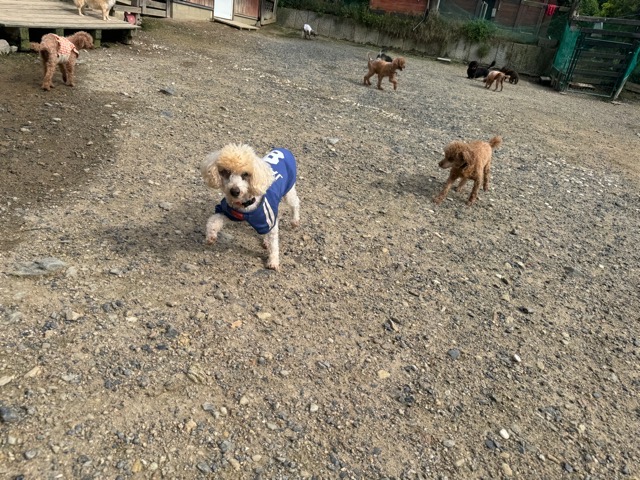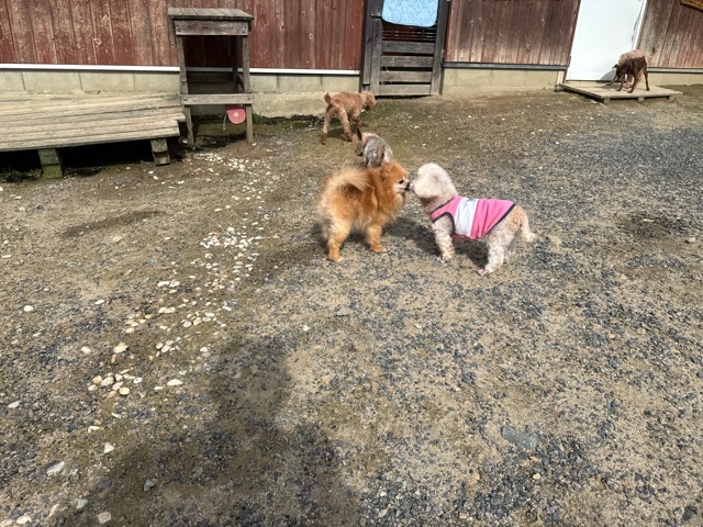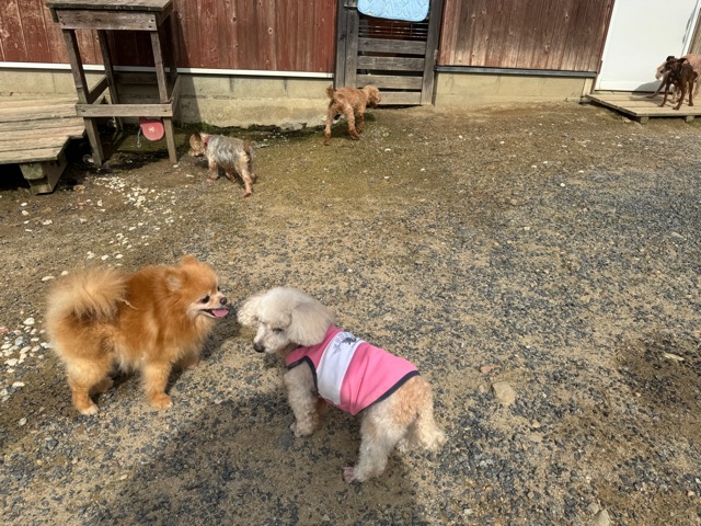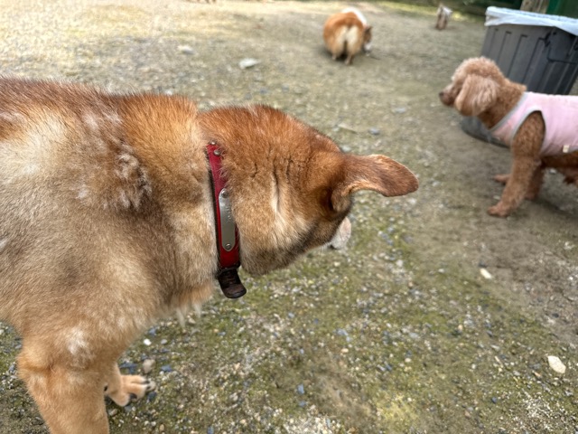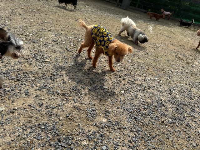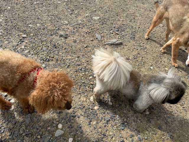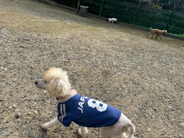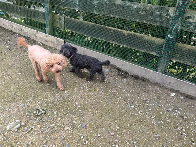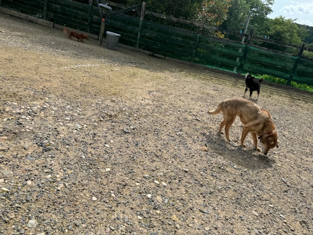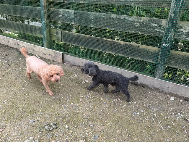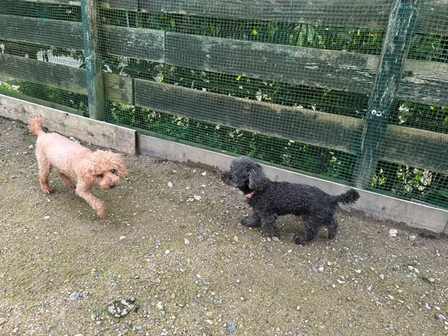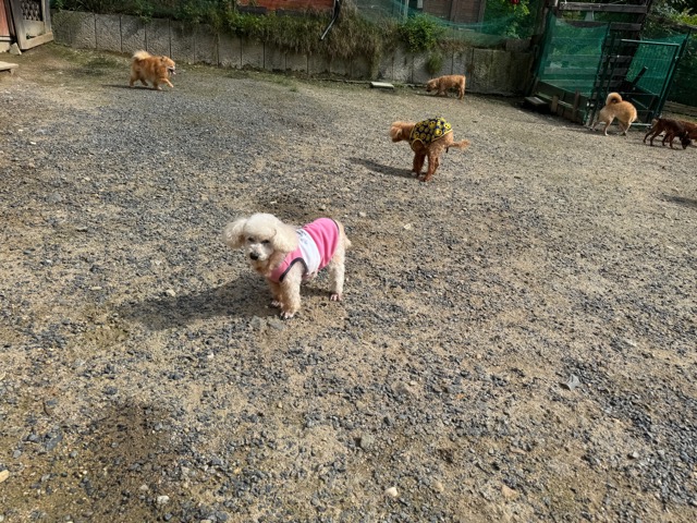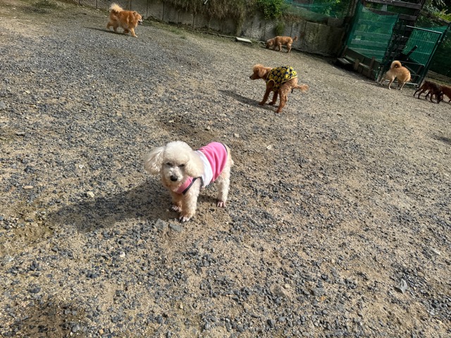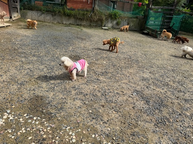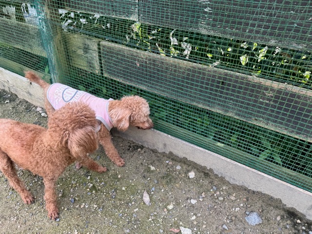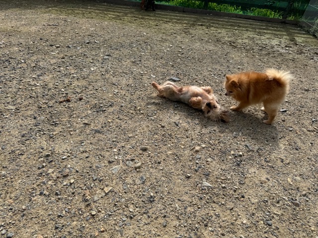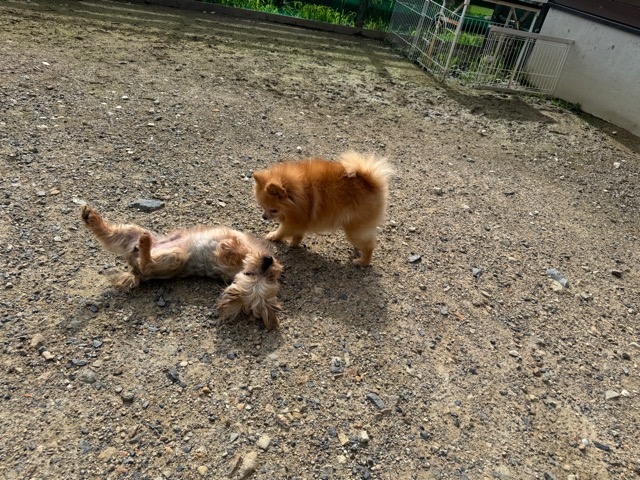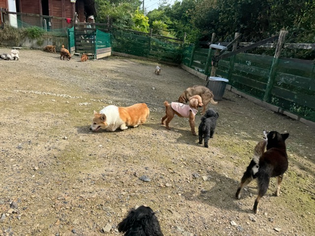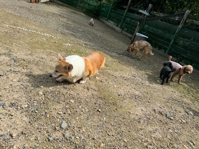 ランでの過ごし方はそれぞれ自由に、遊ぶ子もいれば匂いを嗅いでストレス発散の子も^^