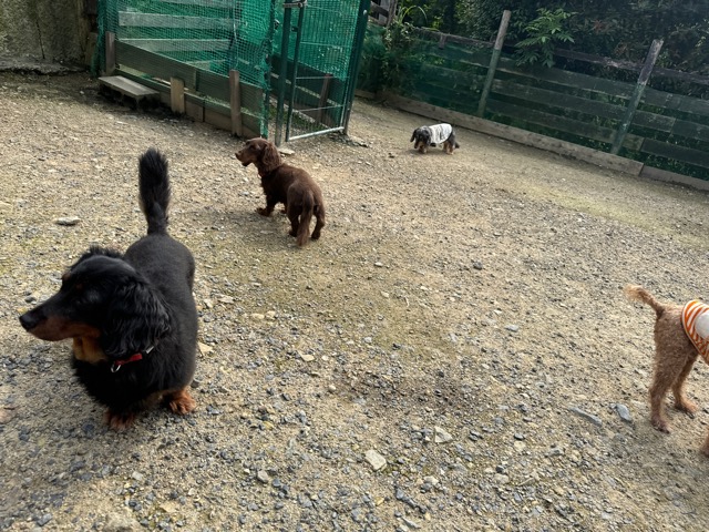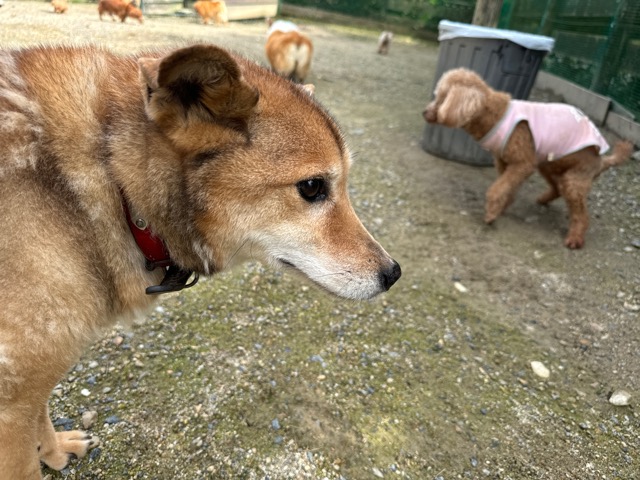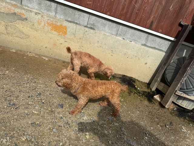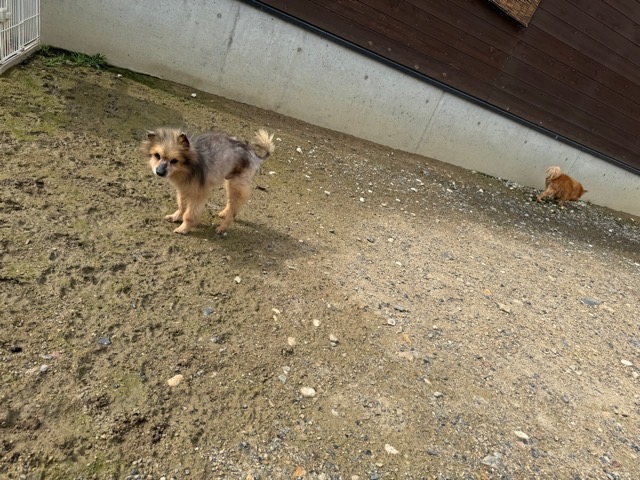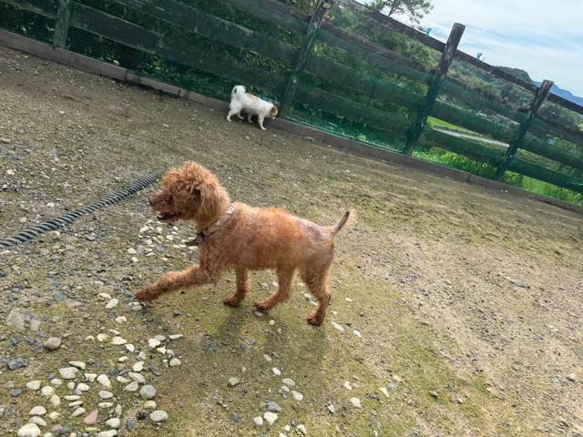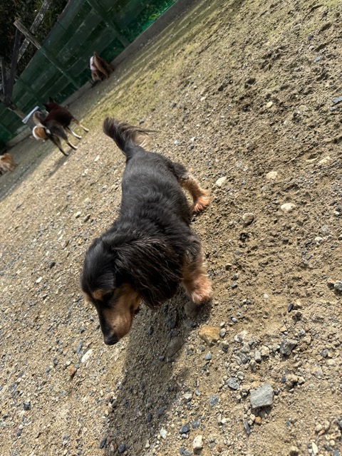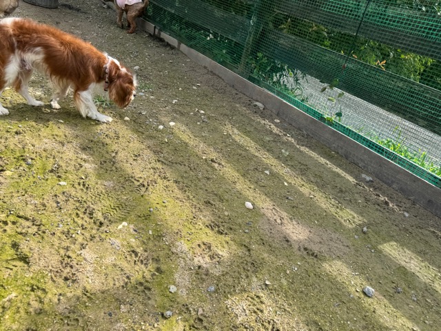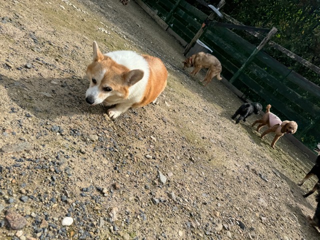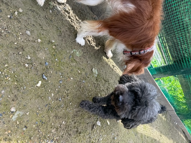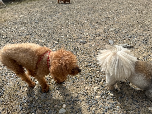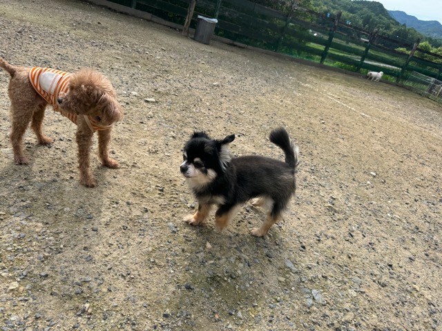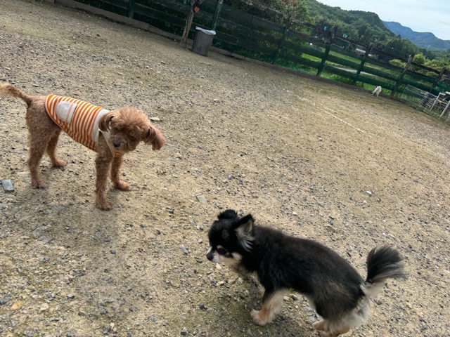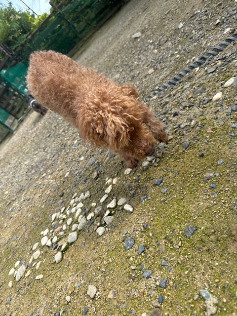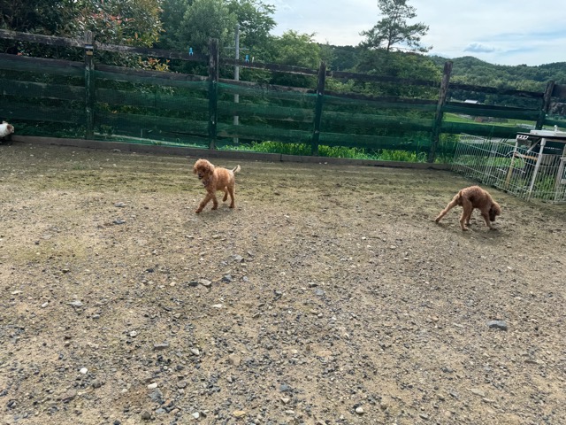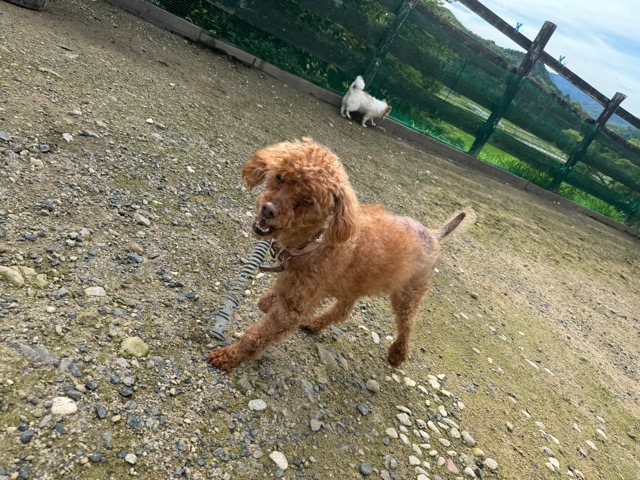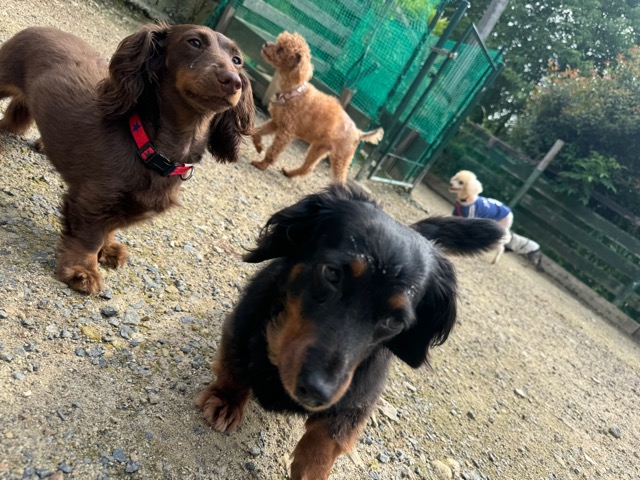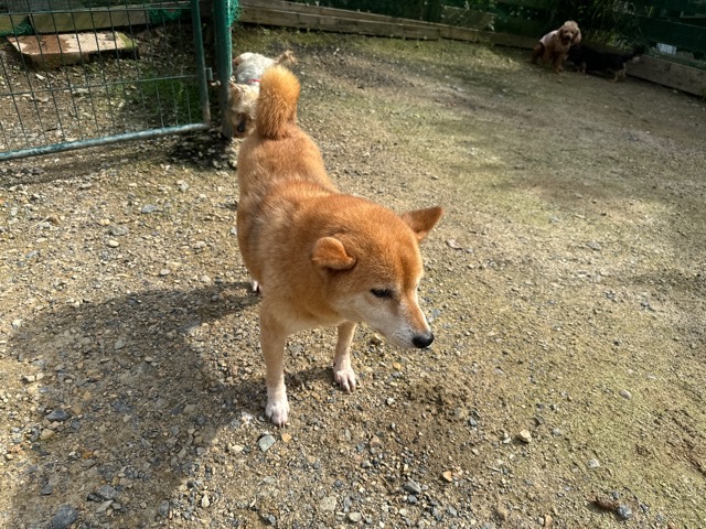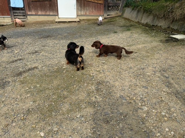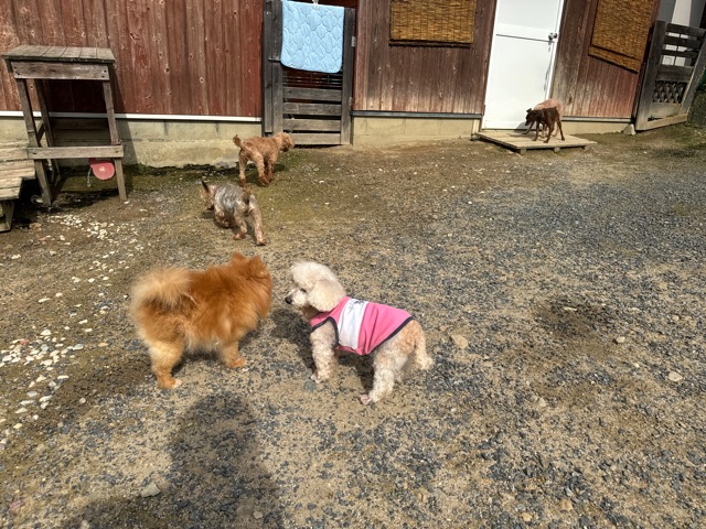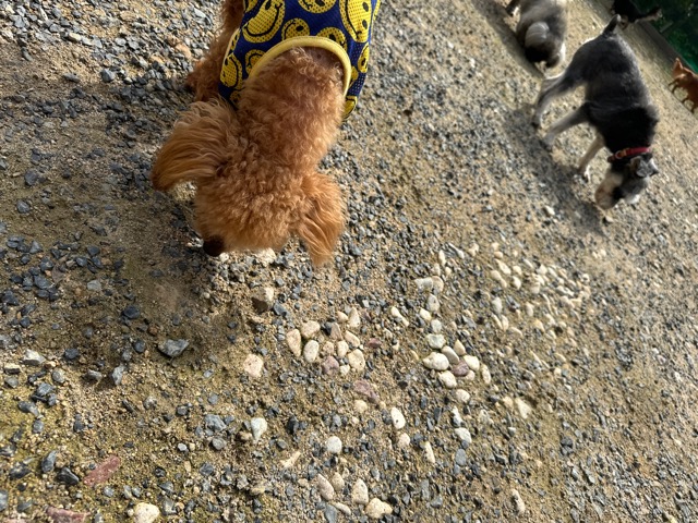 ランでの過ごし方はそれぞれ自由に、遊ぶ子もいれば匂いを嗅いでストレス発散の子も^^