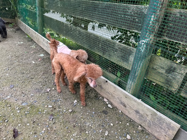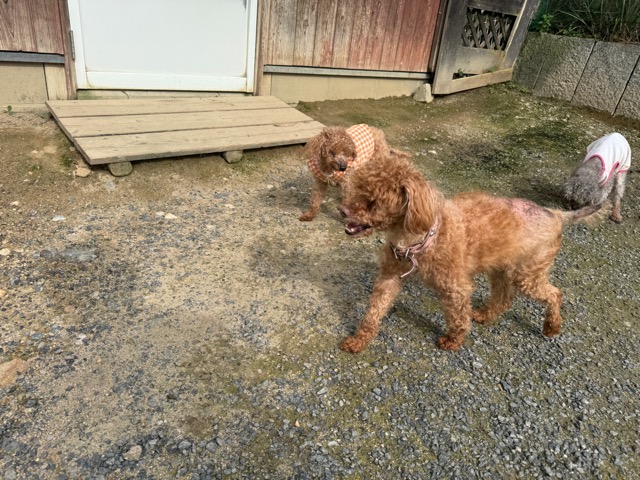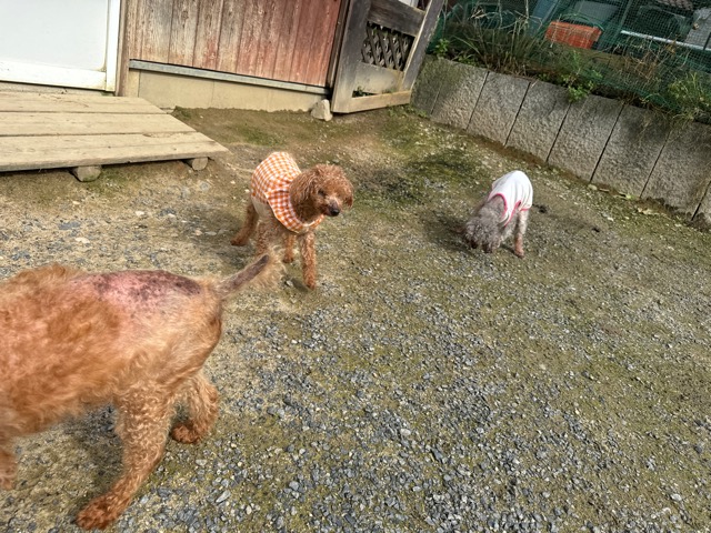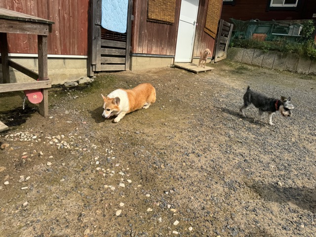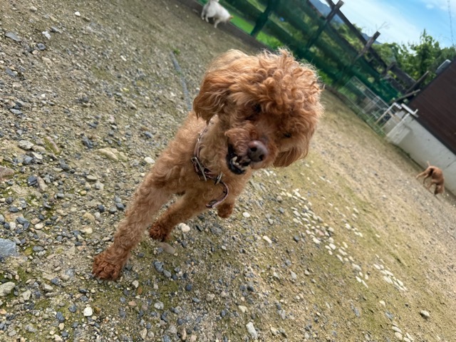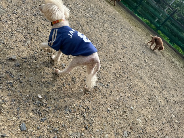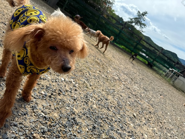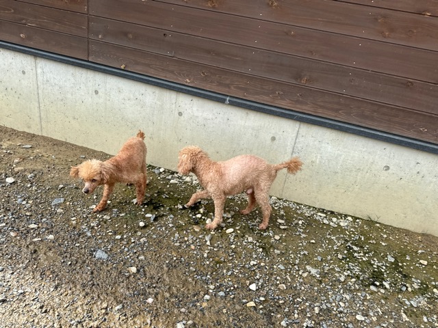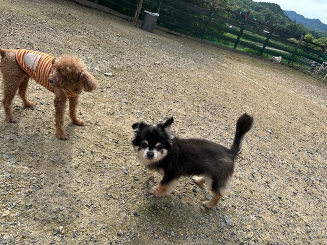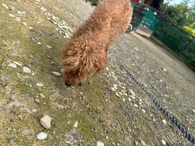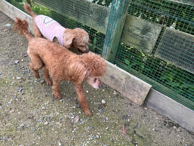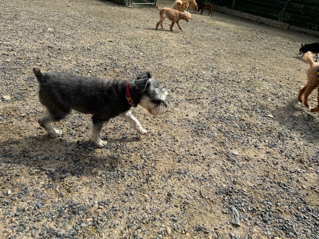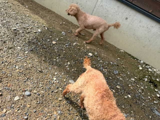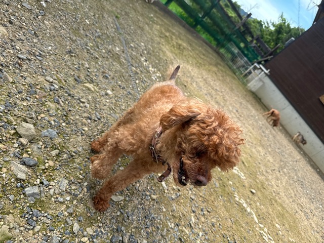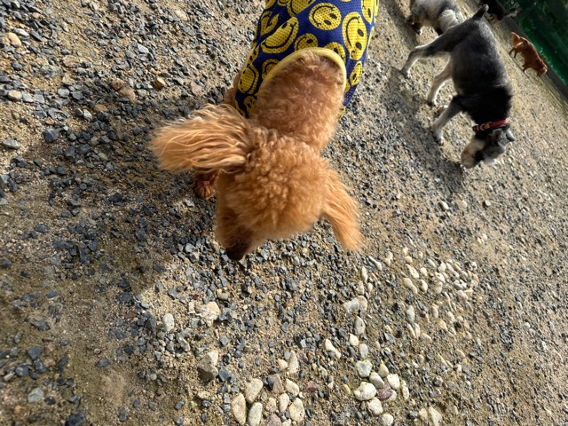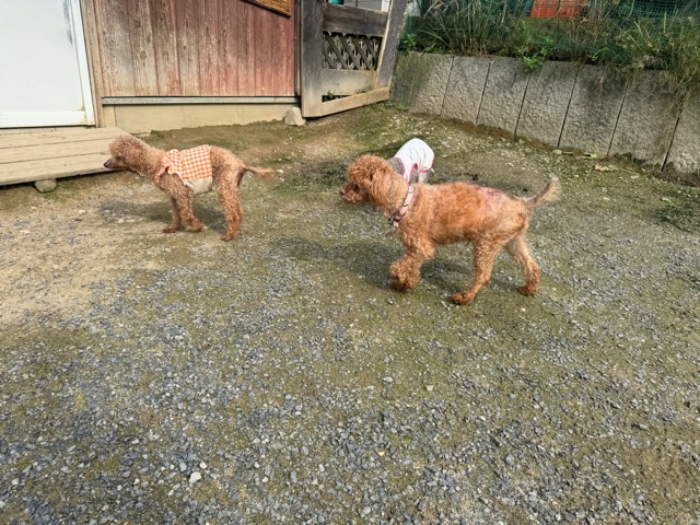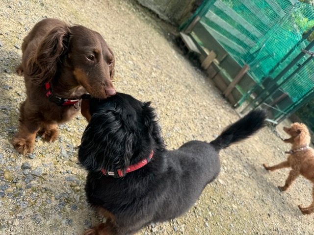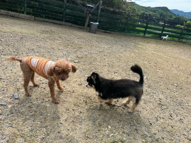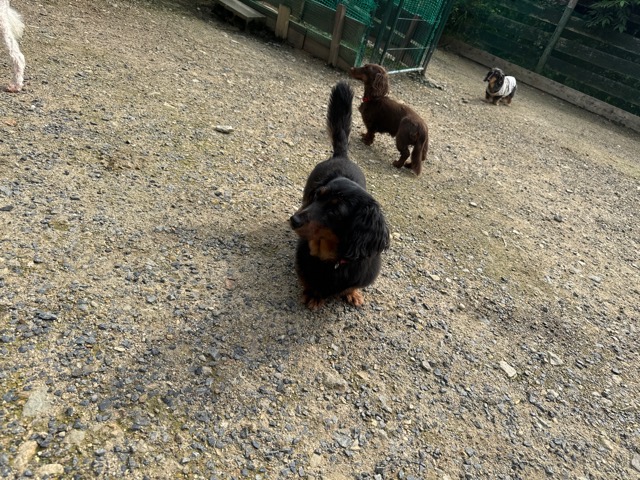 ランでの過ごし方はそれぞれ自由に、遊ぶ子もいれば匂いを嗅いでストレス発散の子も^^
