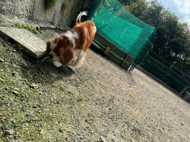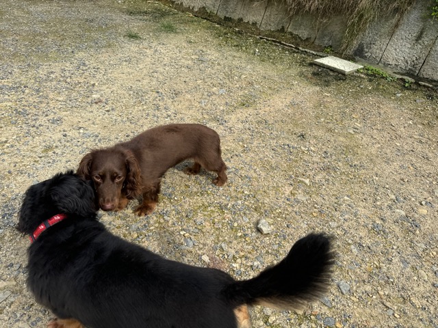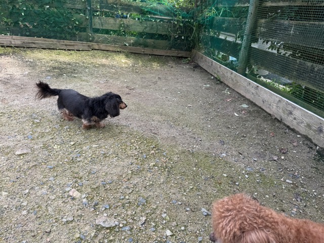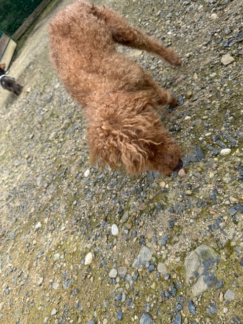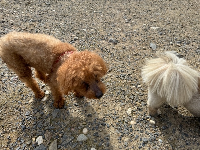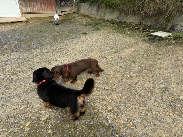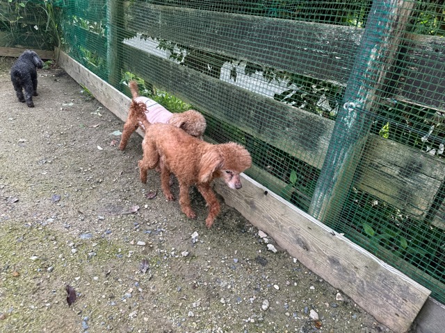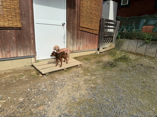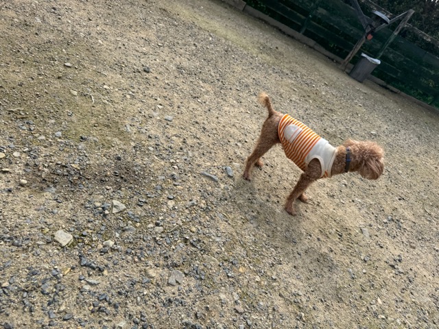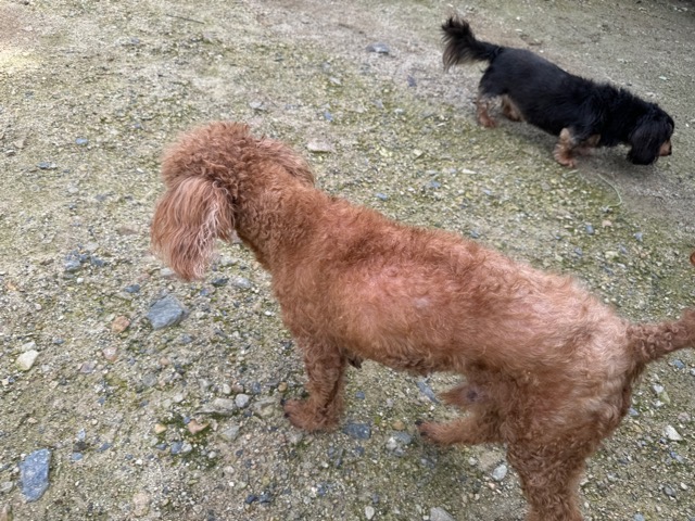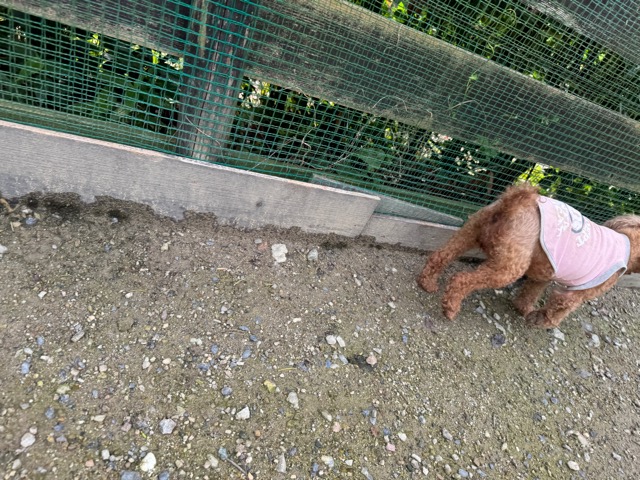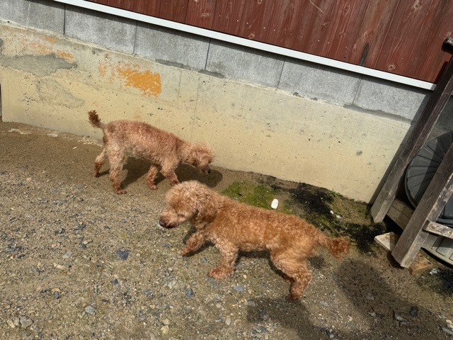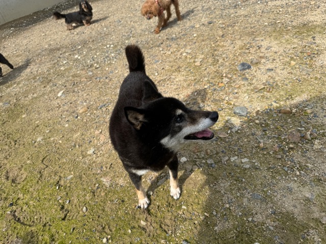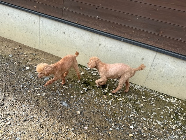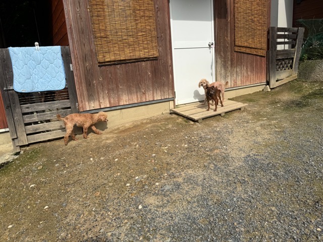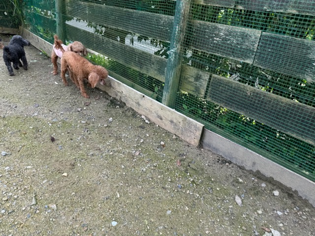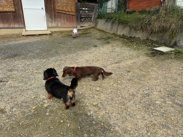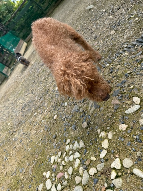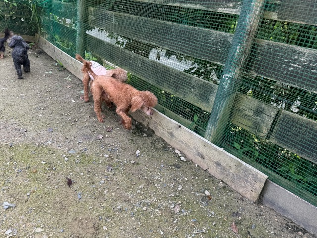 ランでの過ごし方はそれぞれ自由に、遊ぶ子もいれば匂いを嗅いでストレス発散の子も^^