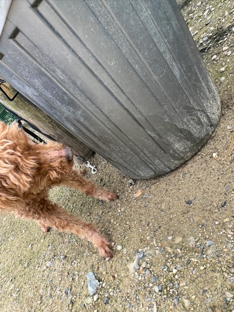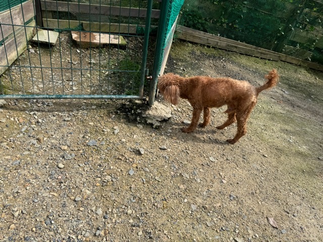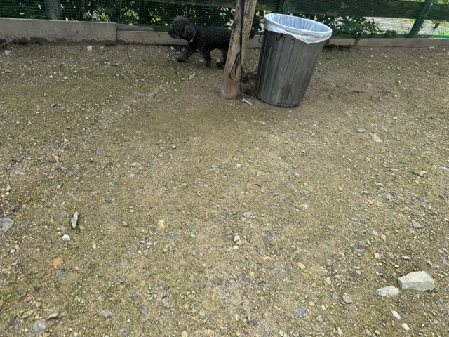 超大型犬のボブ、怖がりさんで初日から下痢、犬舎に入るのも全力で拒否していましたがようやく慣れてきました。