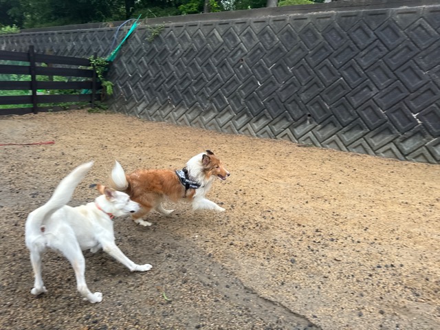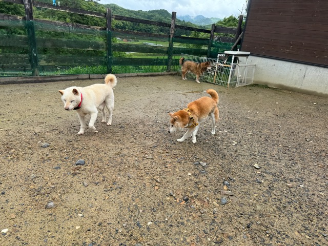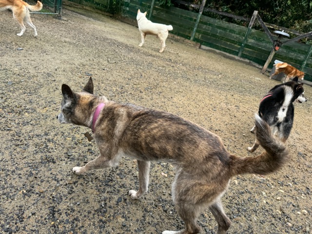 頑張る子は初日から他のワンコ達と遊んだりもします。