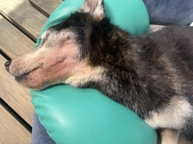 手術を控えているクリン、元気に走る時もありますが休んでいる時間の方が長いです。