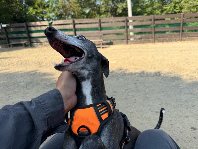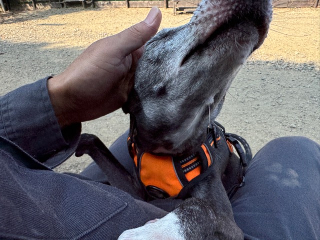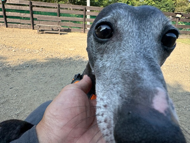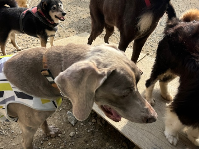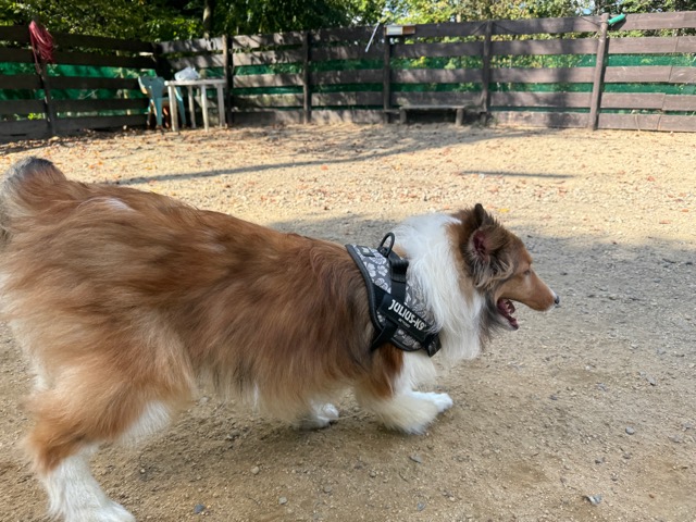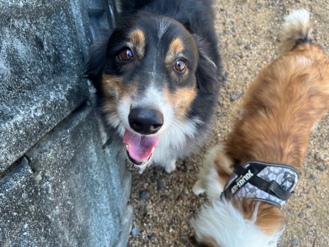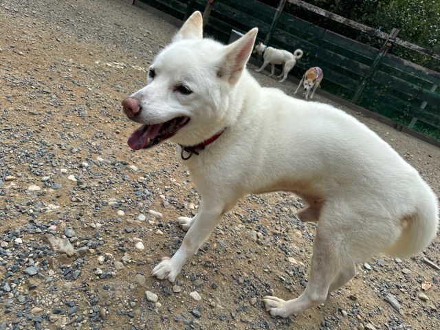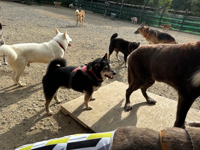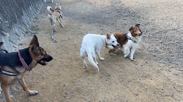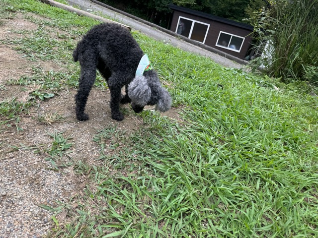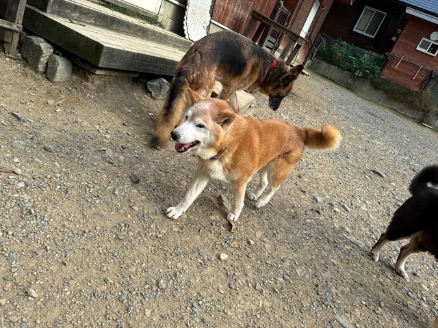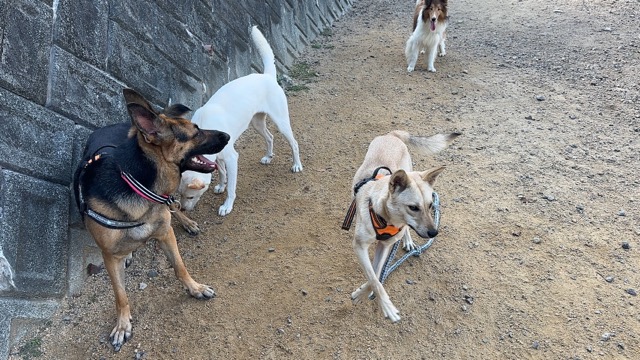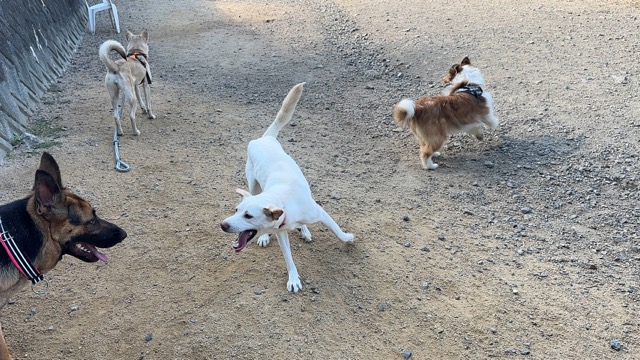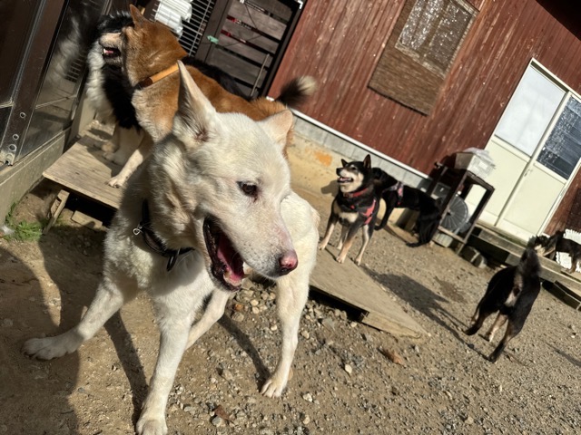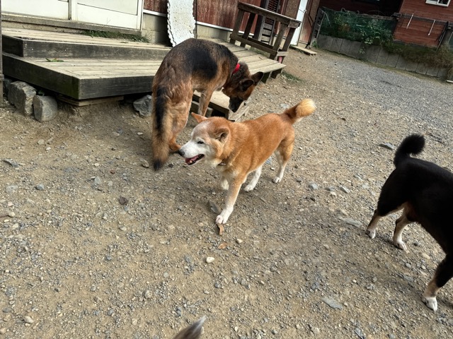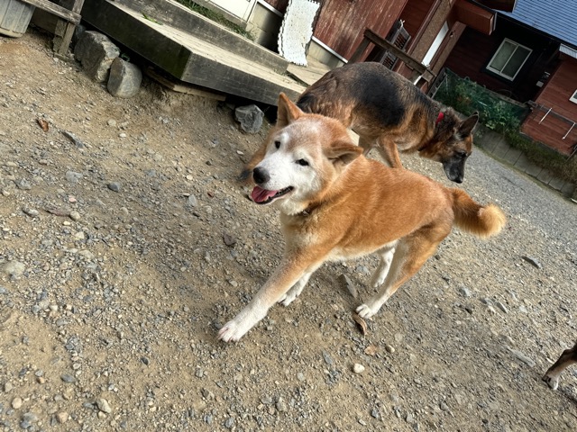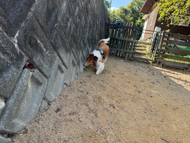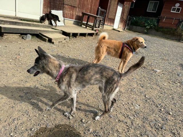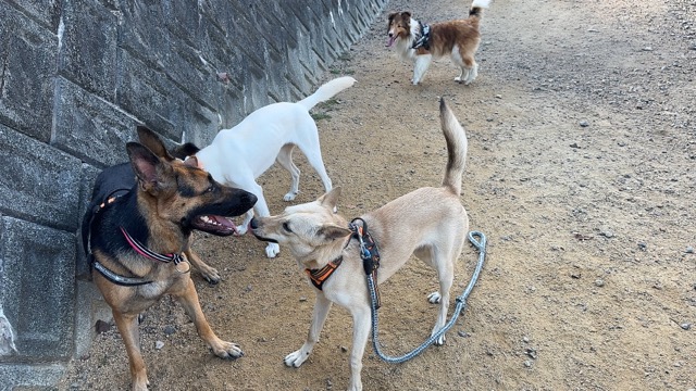 撮影中に背後から激しくじゃれてくるワンコがたくさんいます。