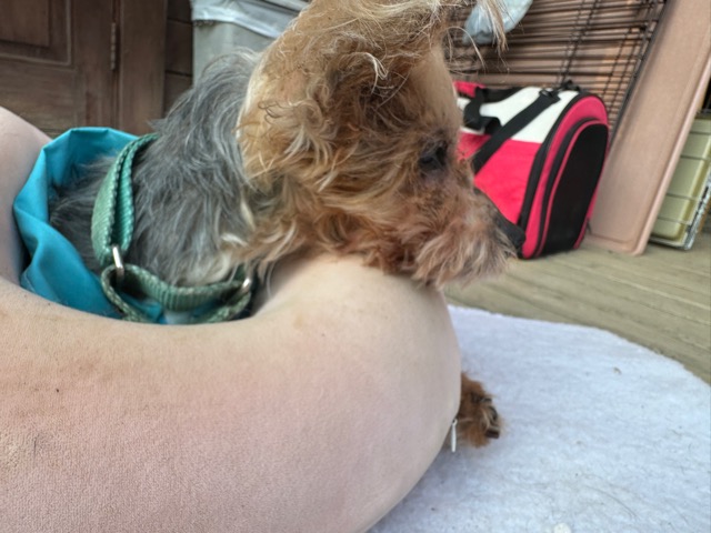 ハードな1日、大阪のホームドクターのもとにワンコも連れていきました。