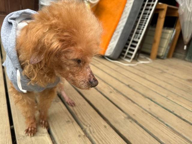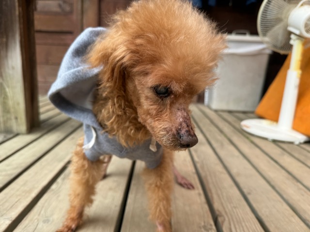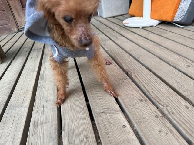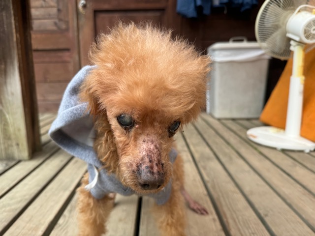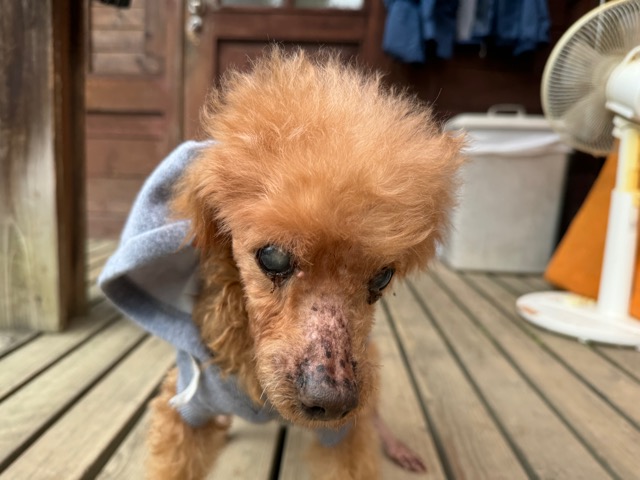 白内障を患っているのも同じ、飼い主さんにモモの出産経験をお聞きすると9頭産んだそうで。