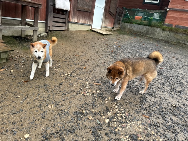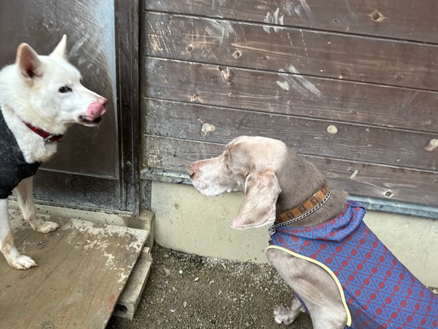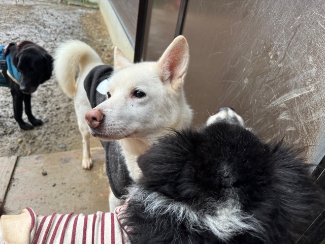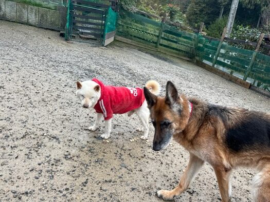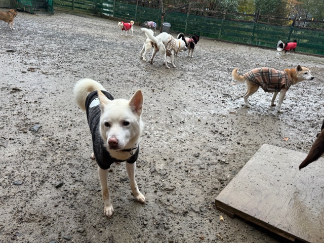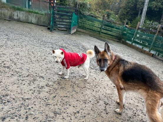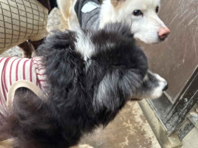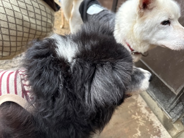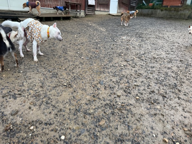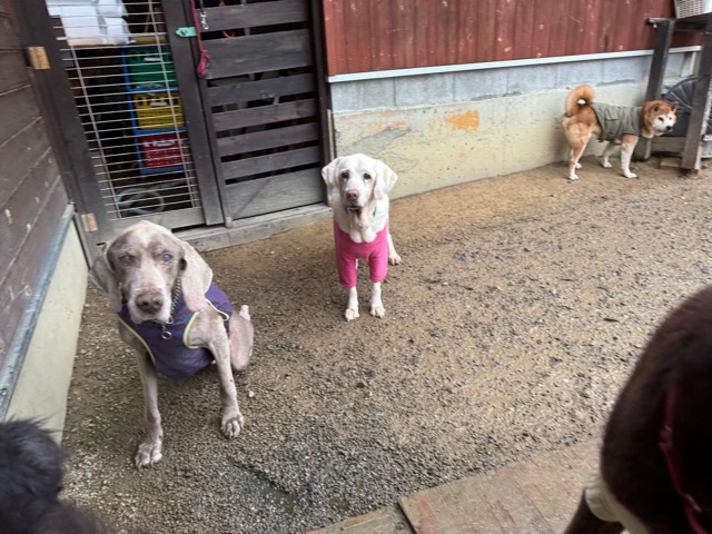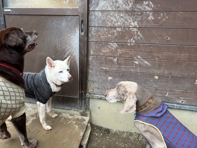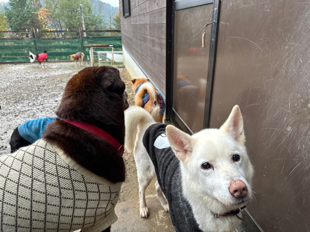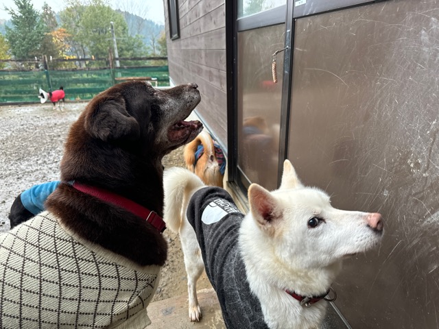 ホテルの常連ワンコ達は尻尾フリフリ御機嫌ですが初めての子は緊張モード。