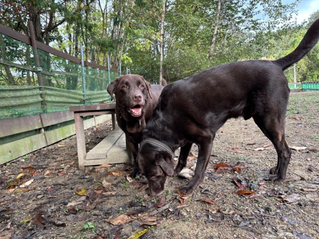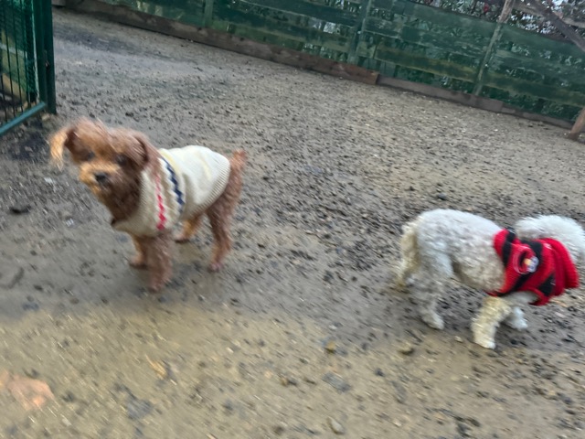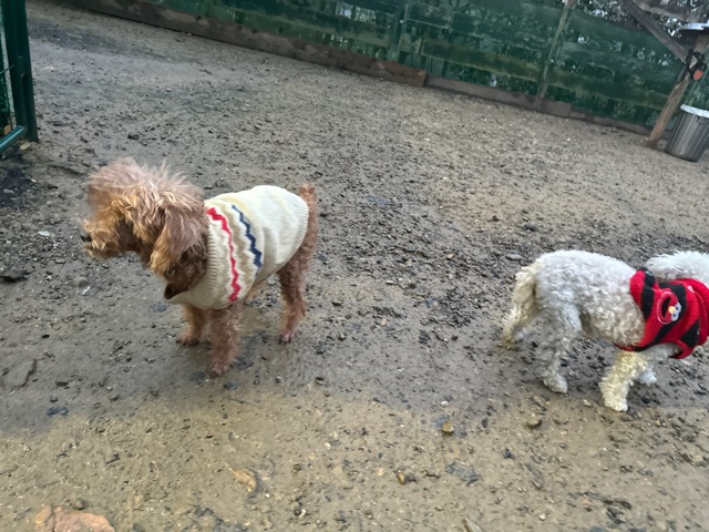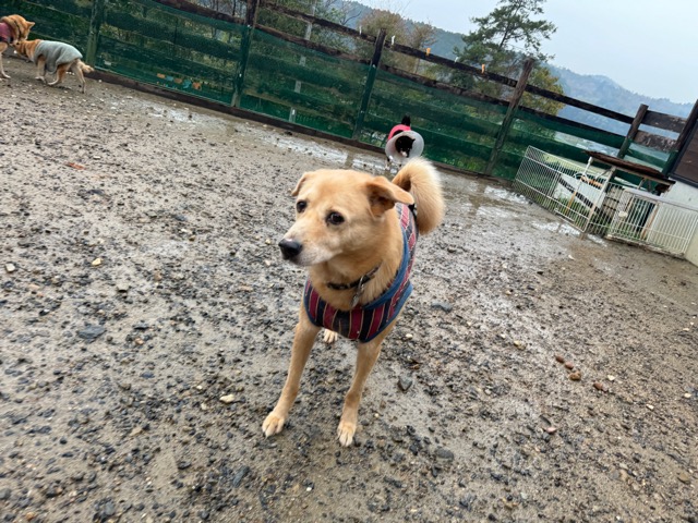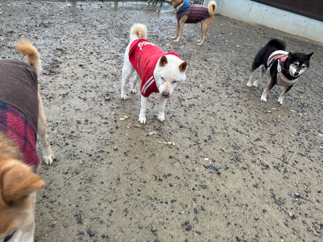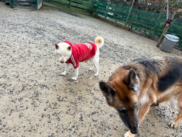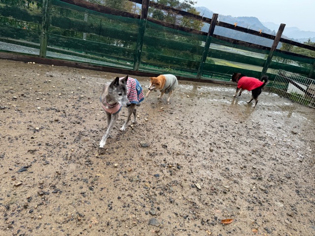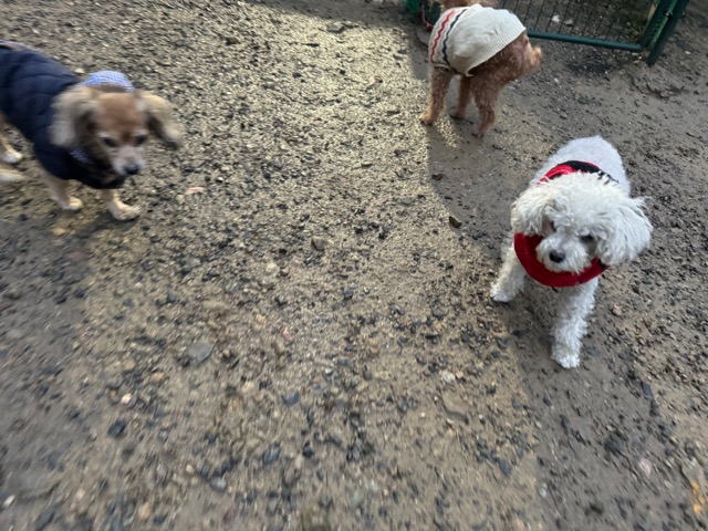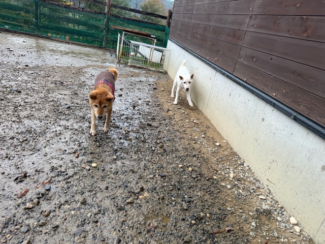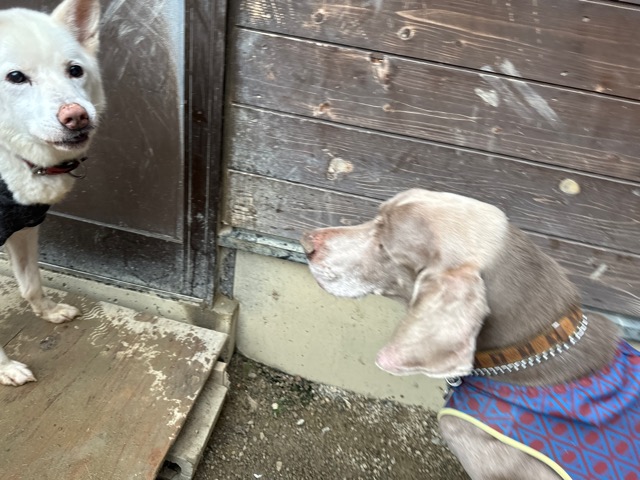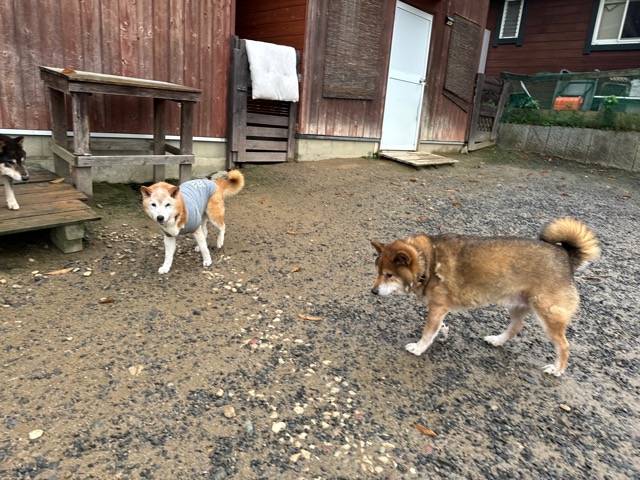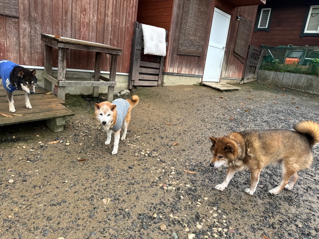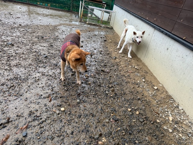 ホテルの常連ワンコ達は尻尾フリフリ御機嫌ですが初めての子は緊張モード。