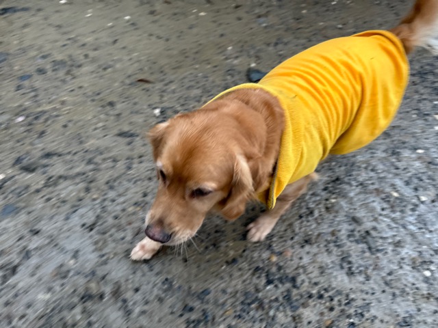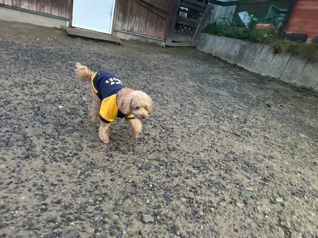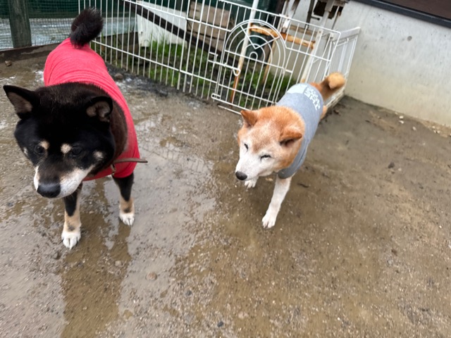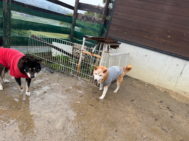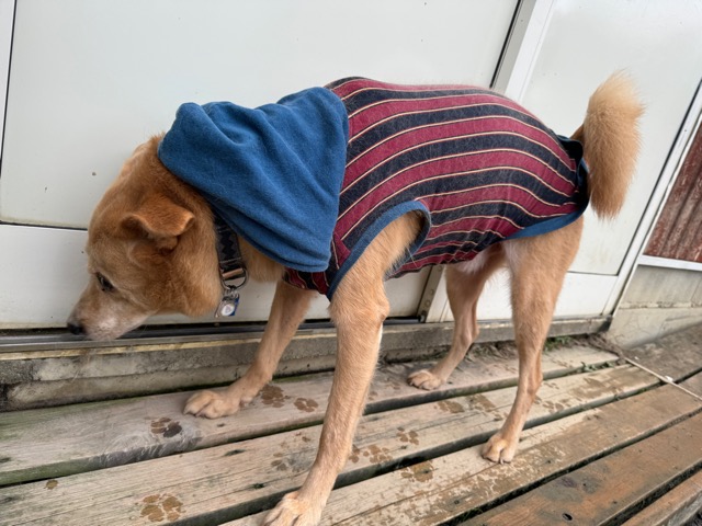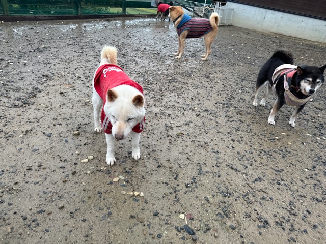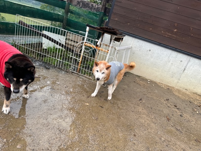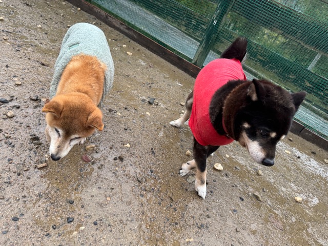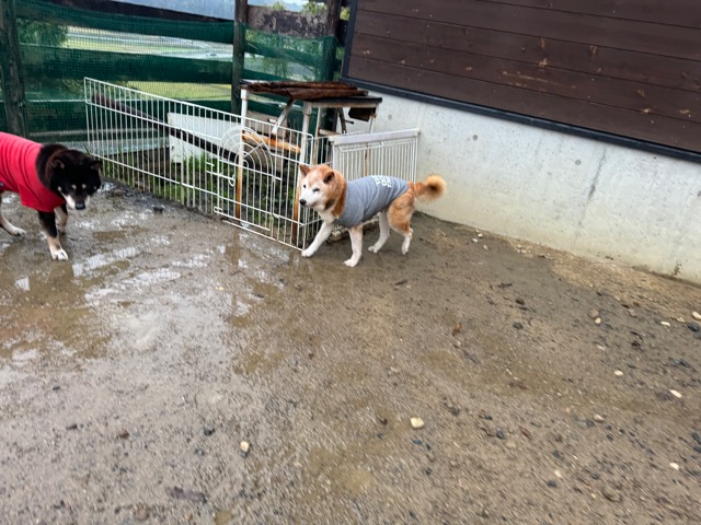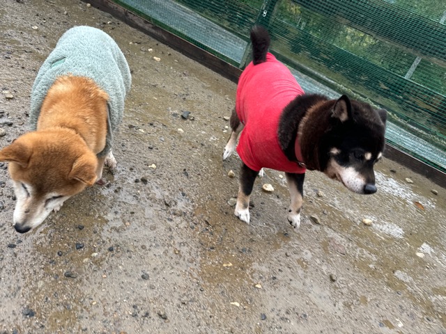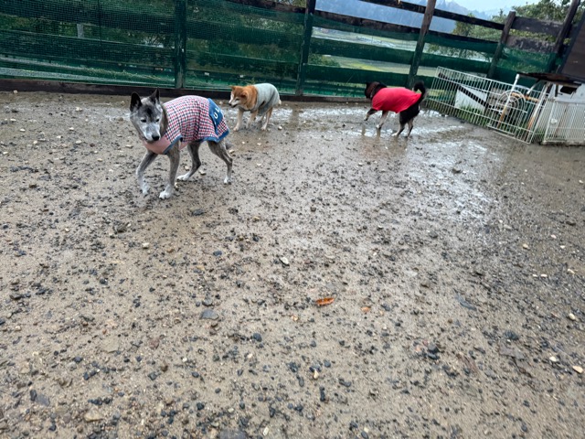 雨も続いたためワンコ達の服の洗濯が大変です、エアコンに洗濯機がフル稼働中。