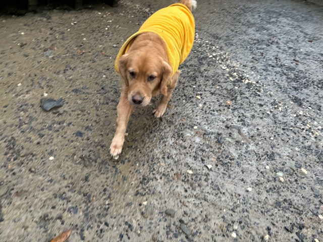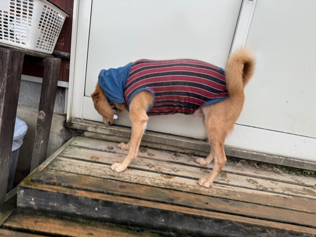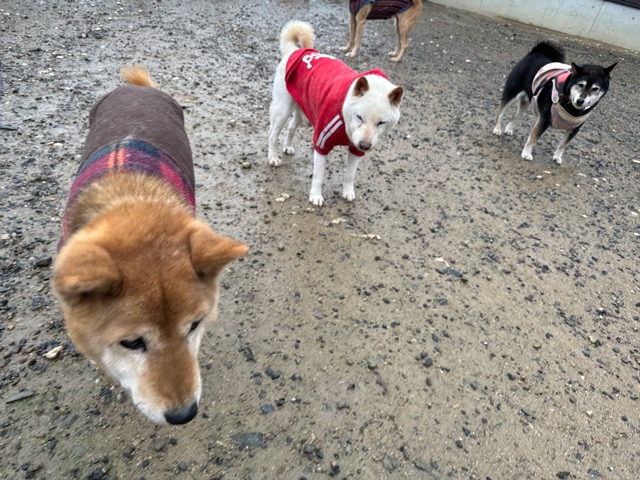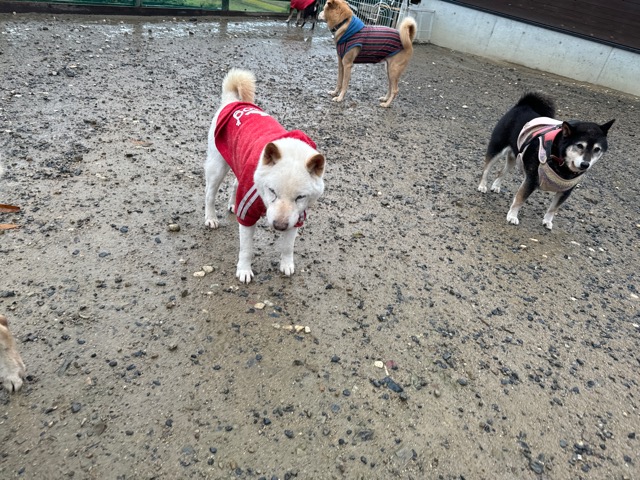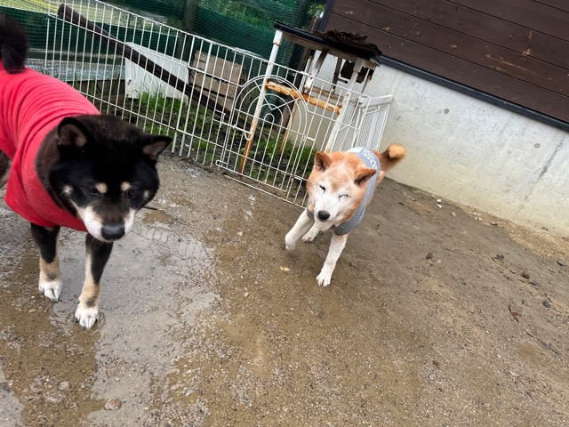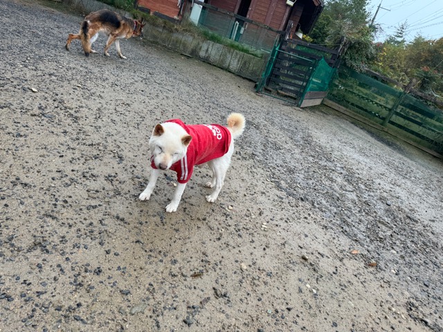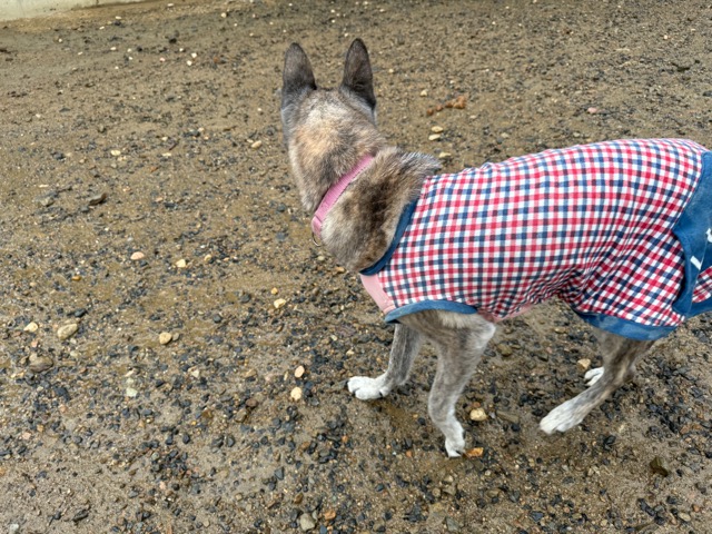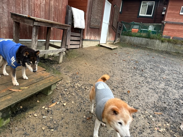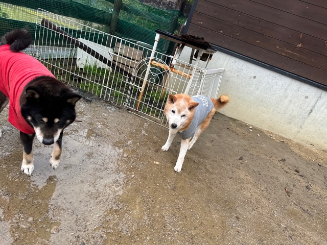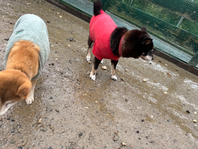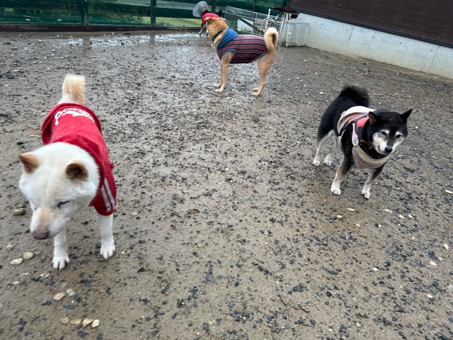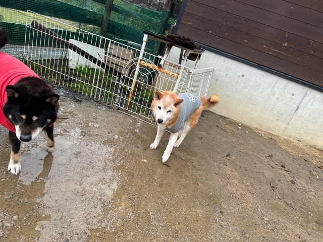 雨も続いたためワンコ達の服の洗濯が大変です、エアコンに洗濯機がフル稼働中。