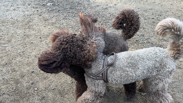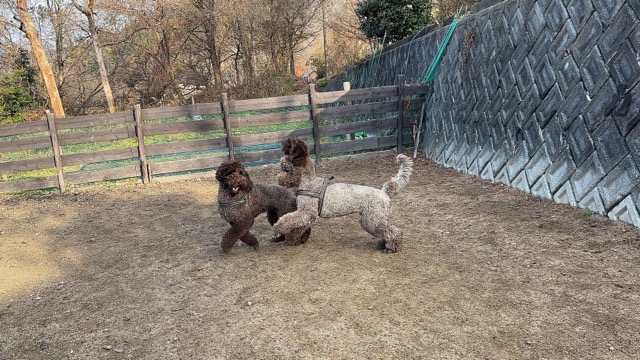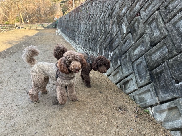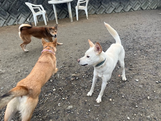 あんファミリーのワンコ達はランでは集団行動、さりげなく周りのワンコ達に気を使っています^^
