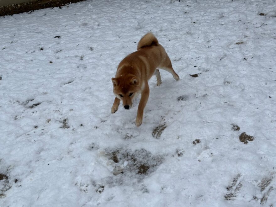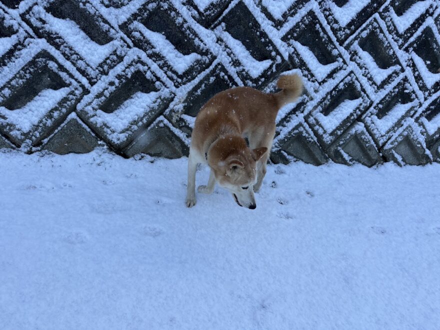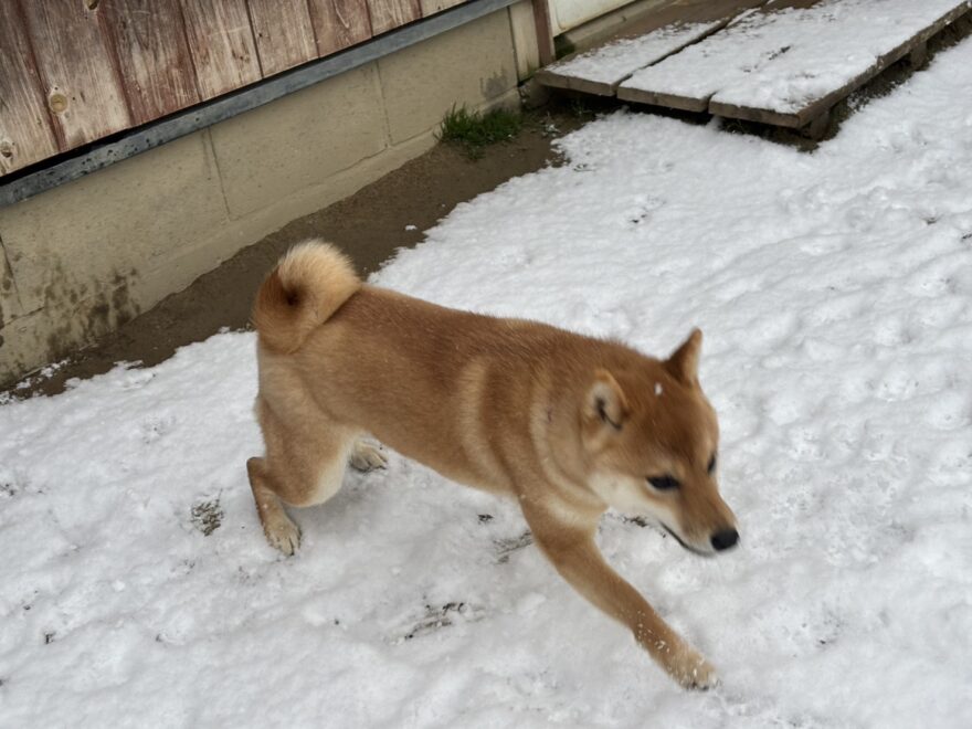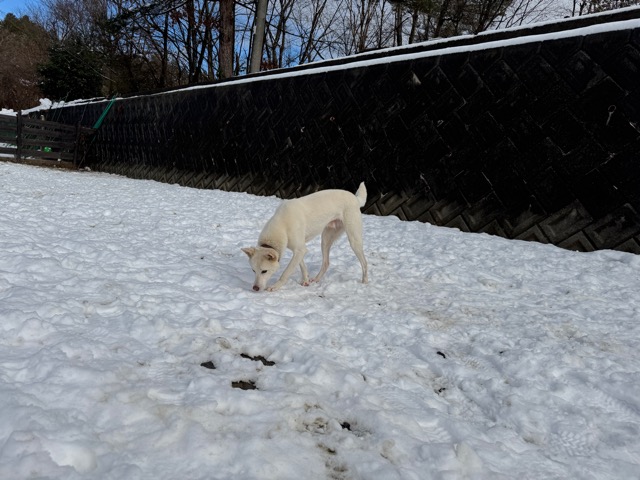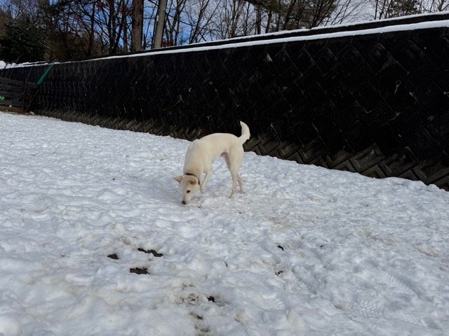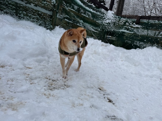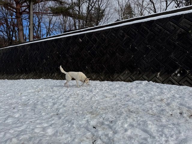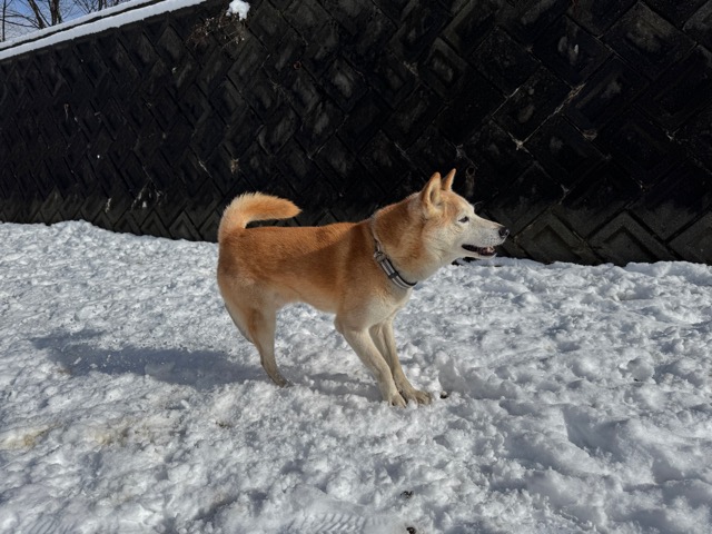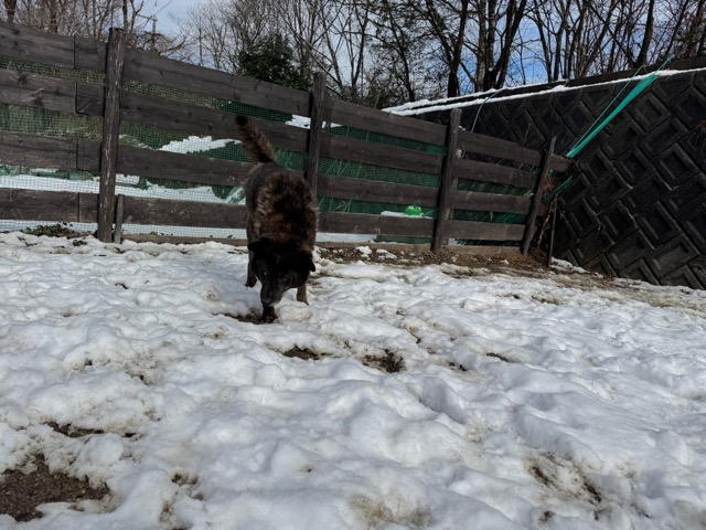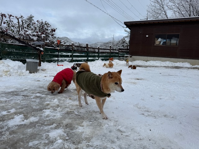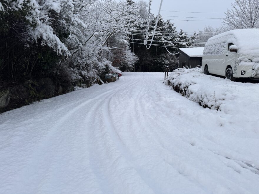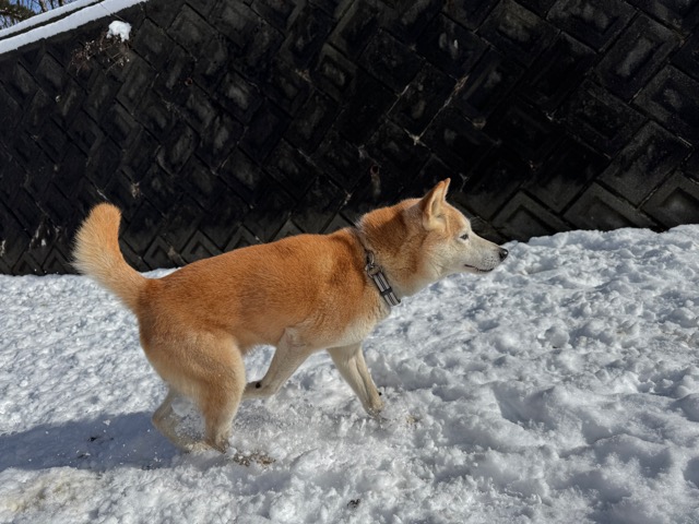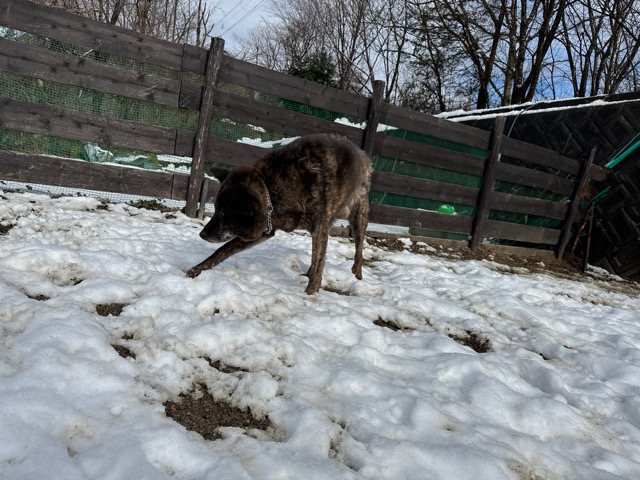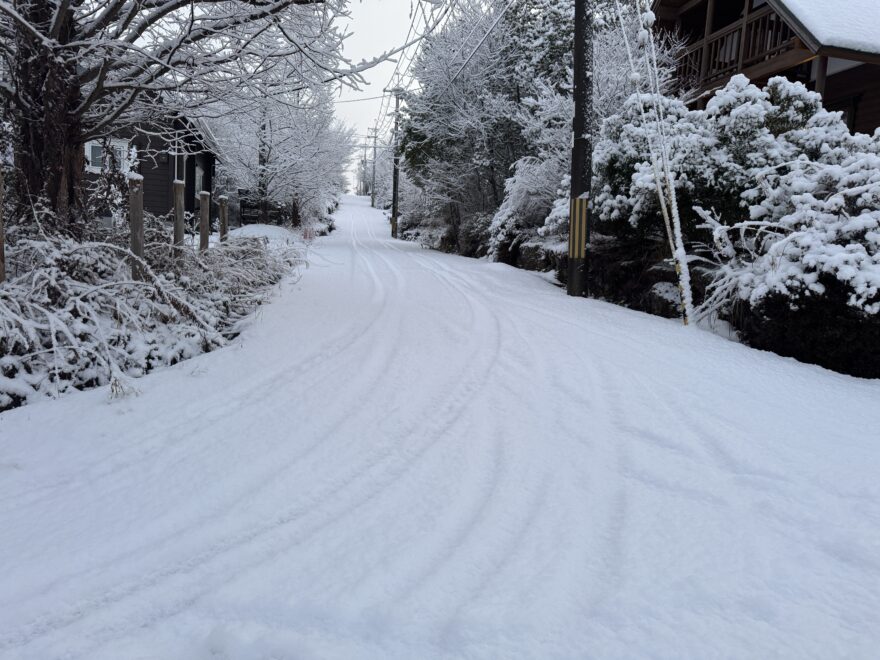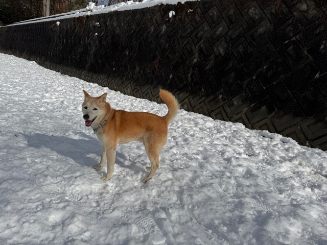今朝は昨日までの雪がカチカチに、午前中のうちに解けると思います。