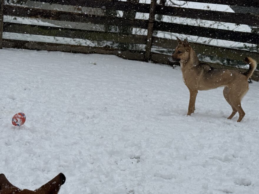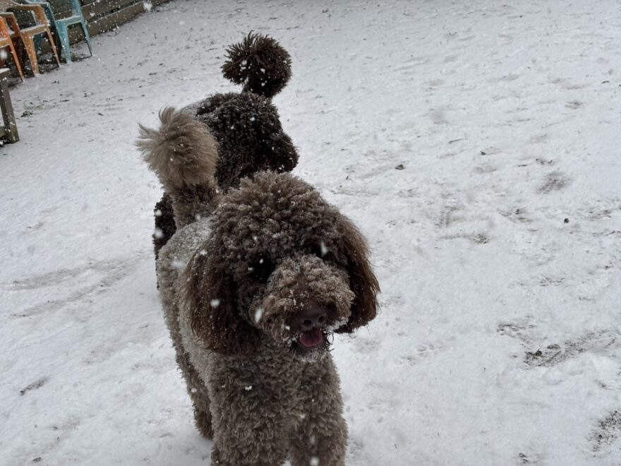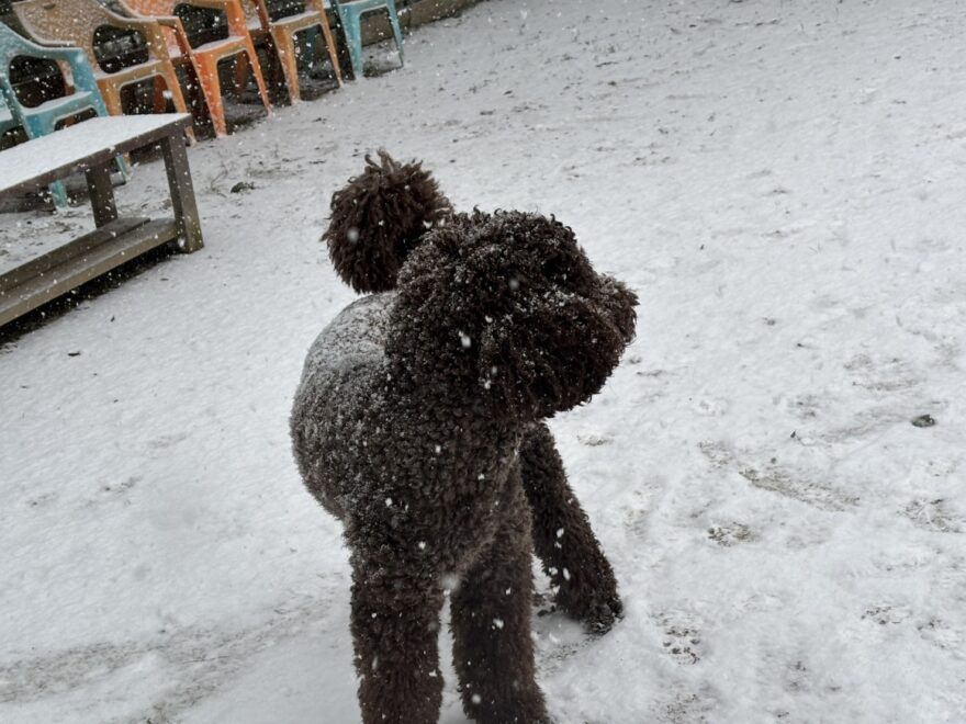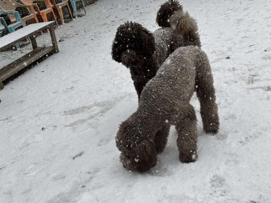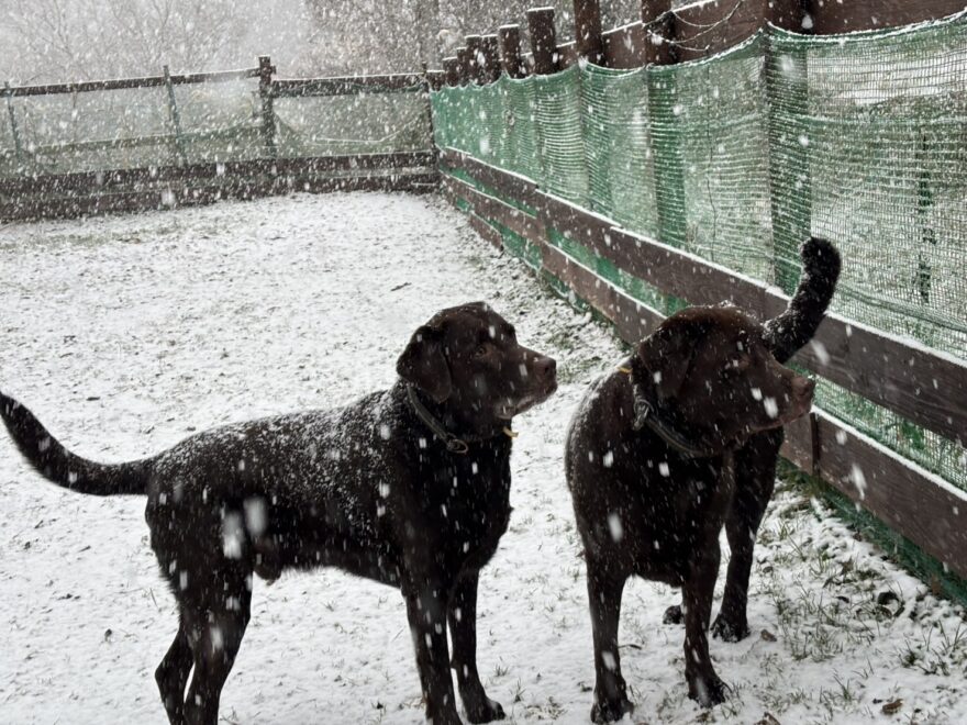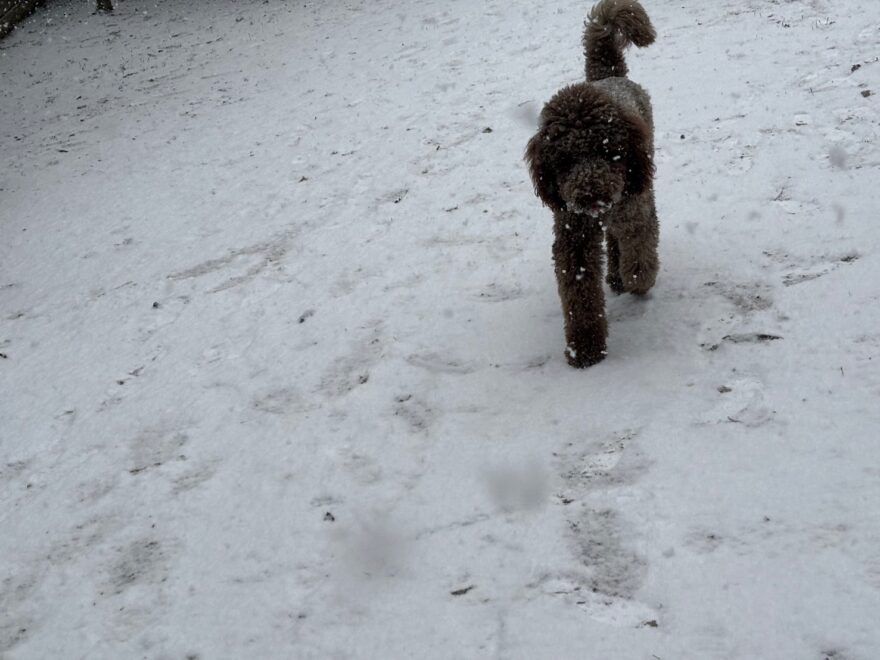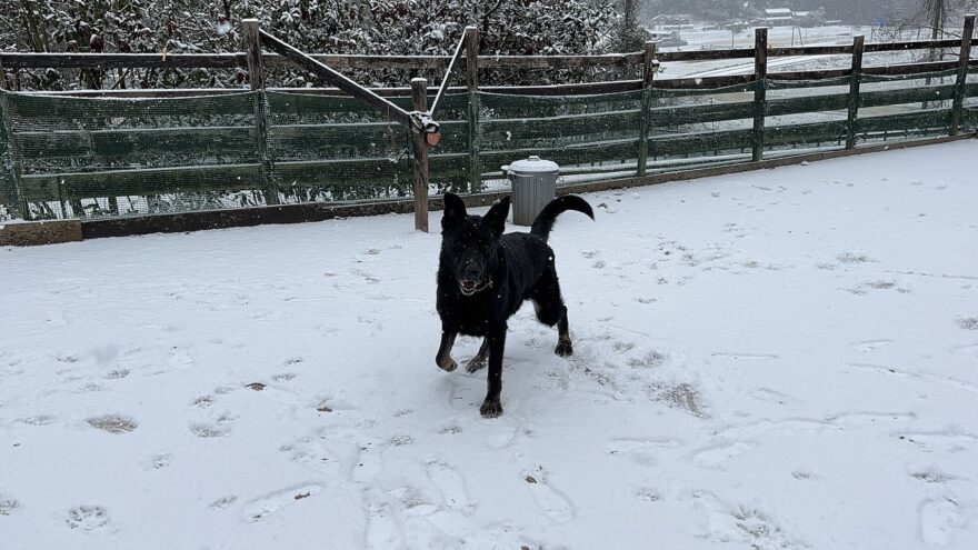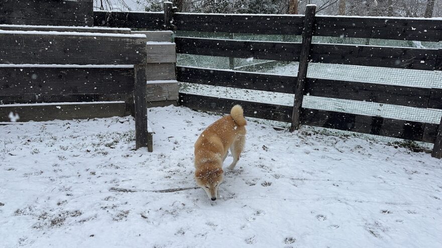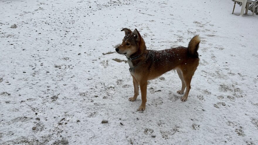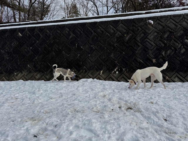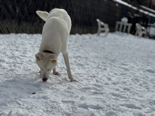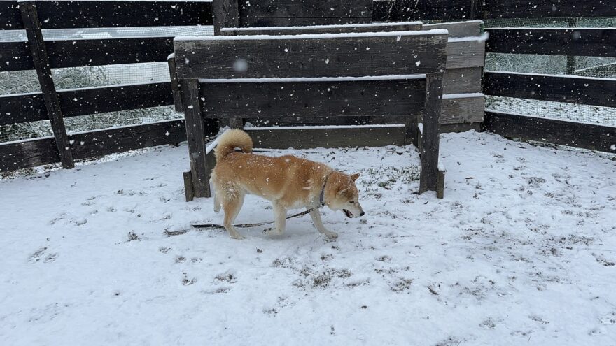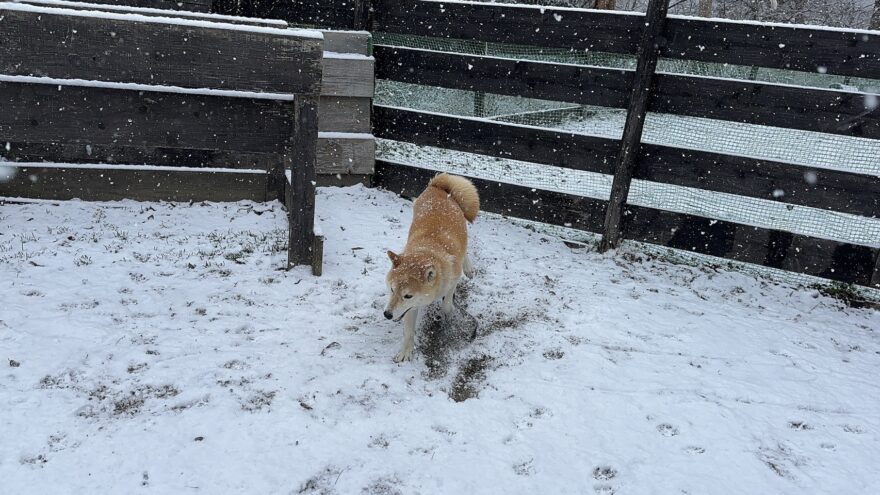 今朝は昨日までの雪がカチカチに、午前中のうちに解けると思います。