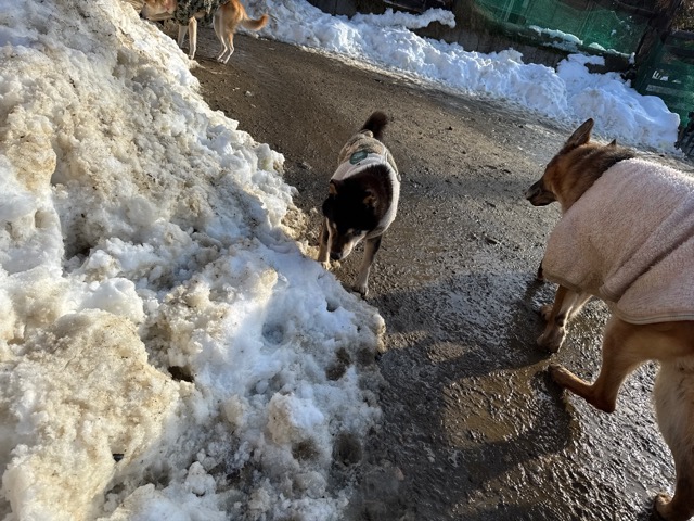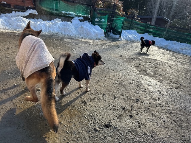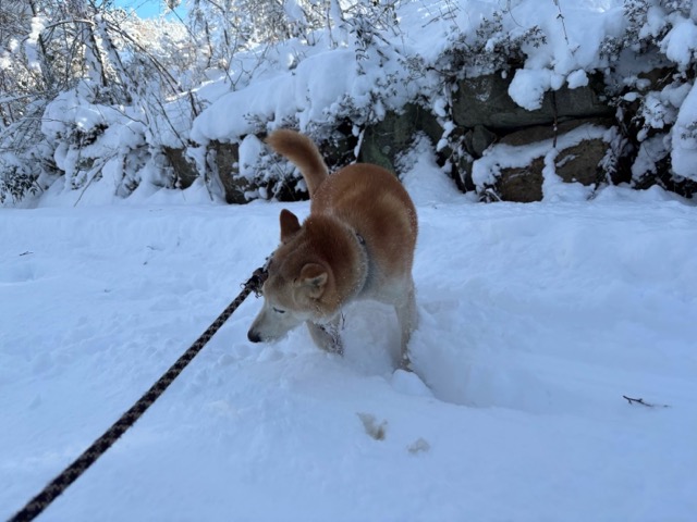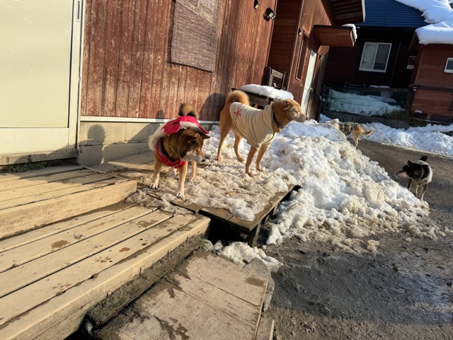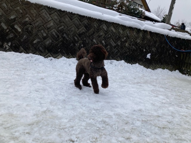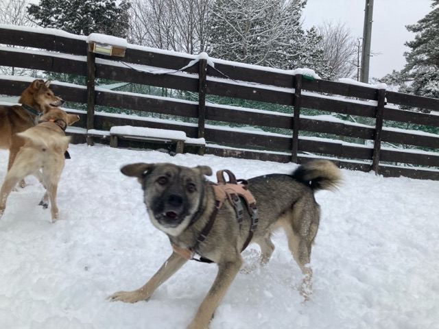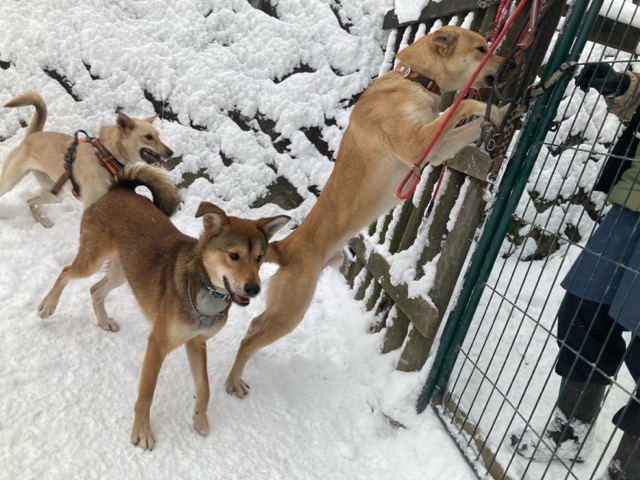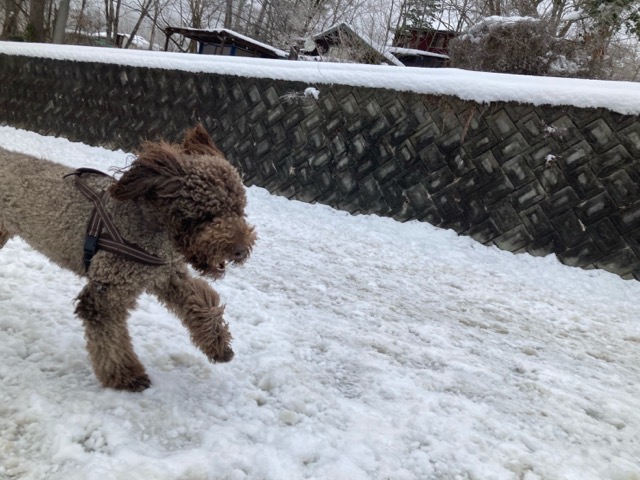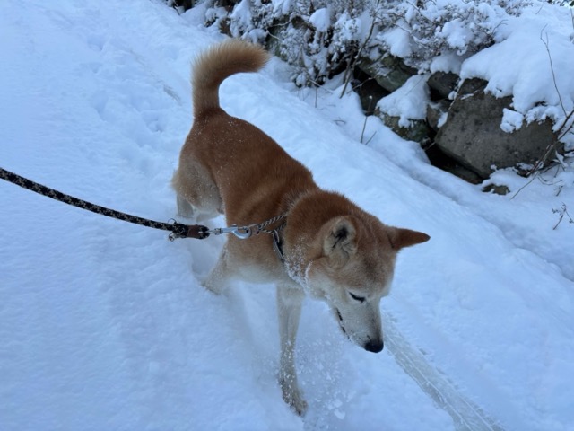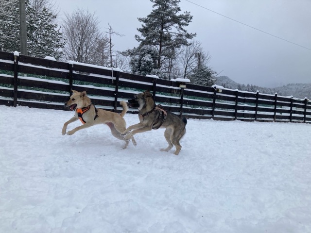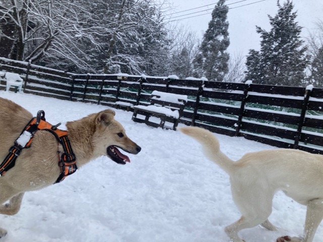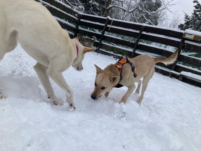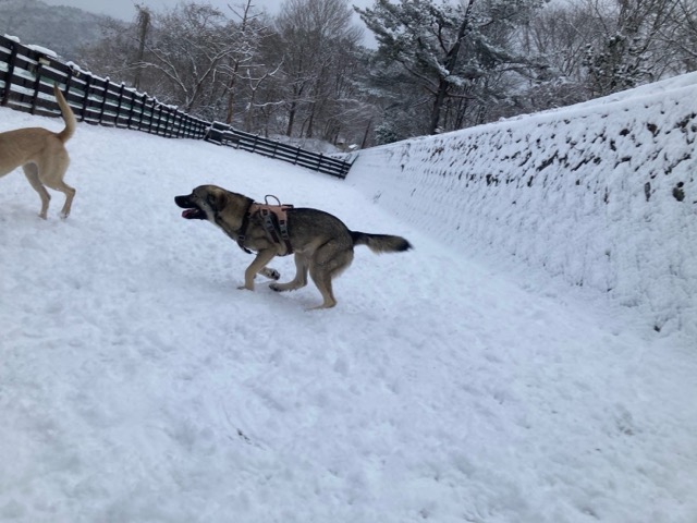 ワンコ達は雪が嬉しいのか雪の中にグイグイ進んでいく子も。