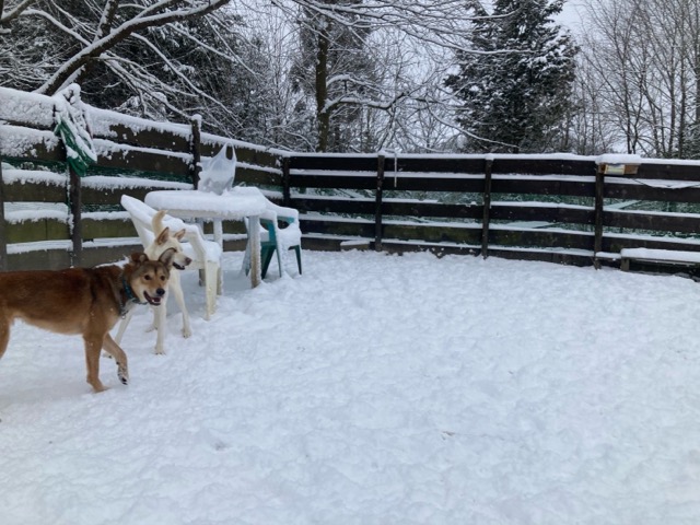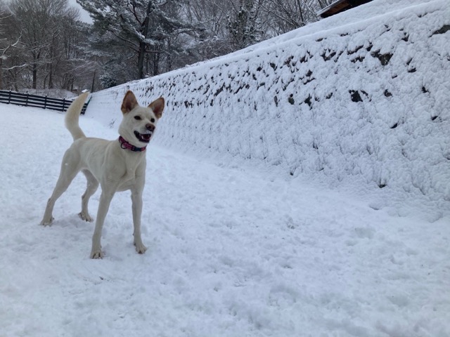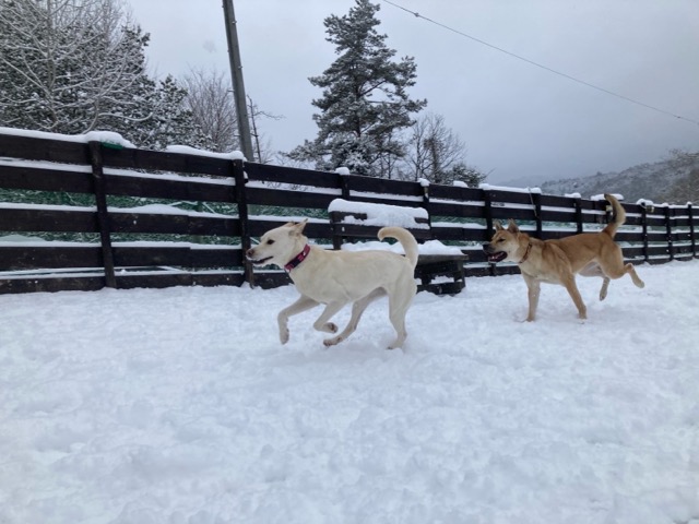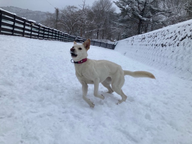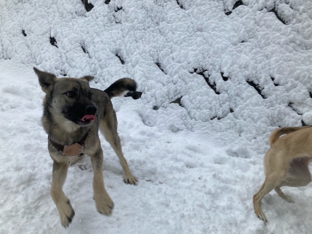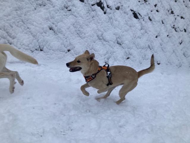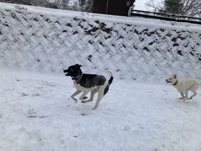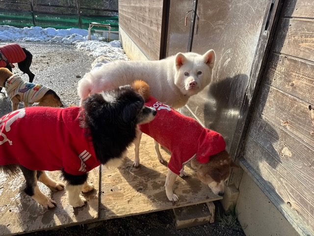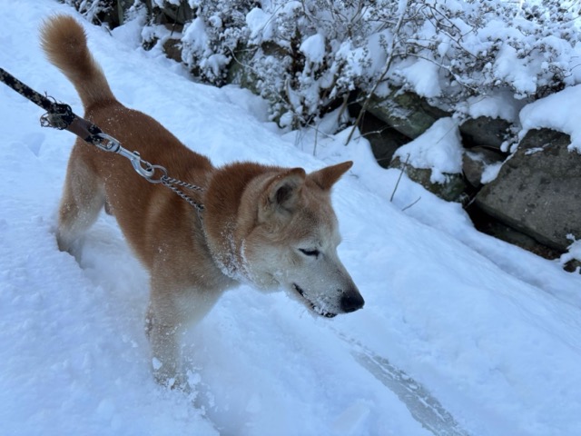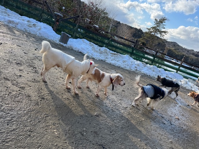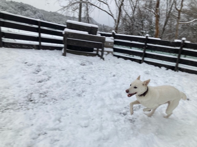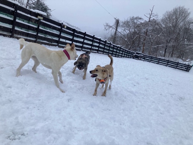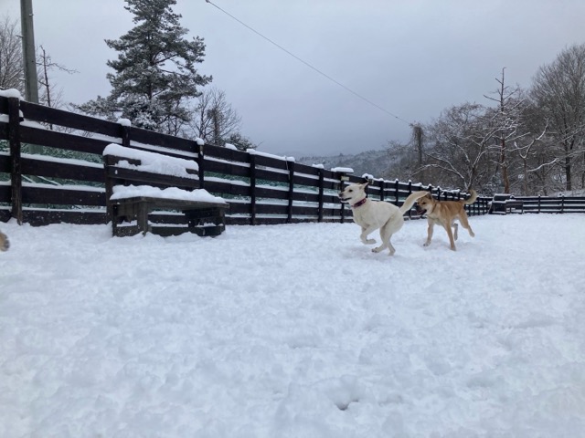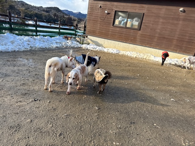 ワンコ達は雪が嬉しいのか雪の中にグイグイ進んでいく子も。