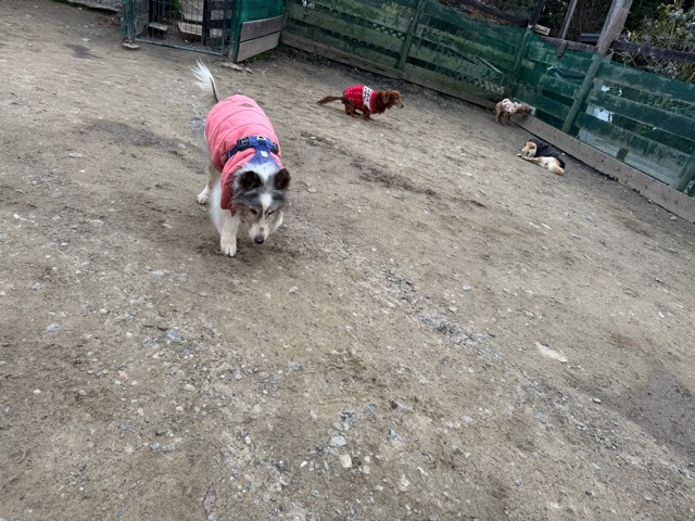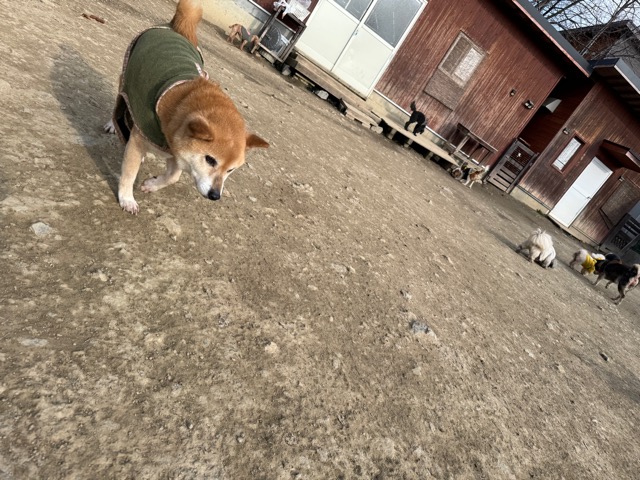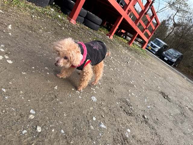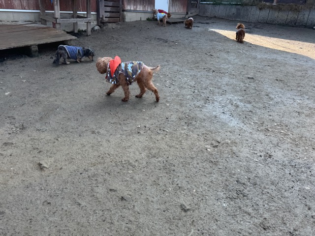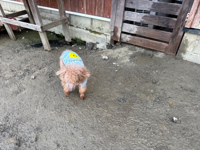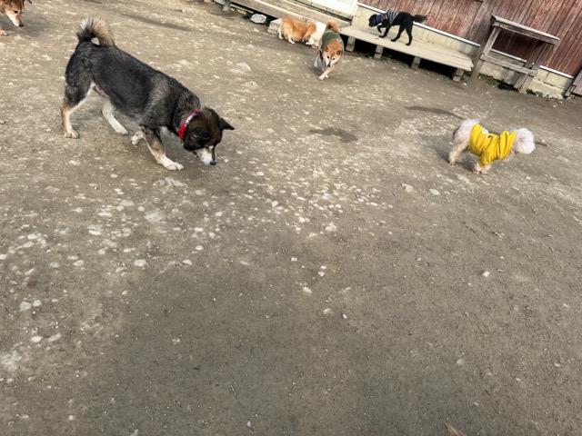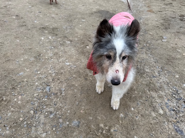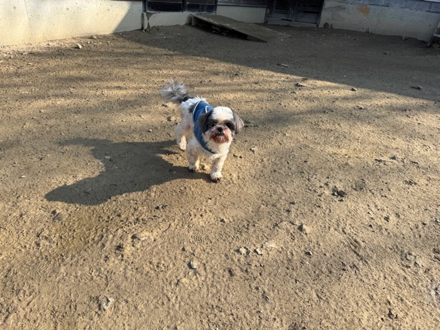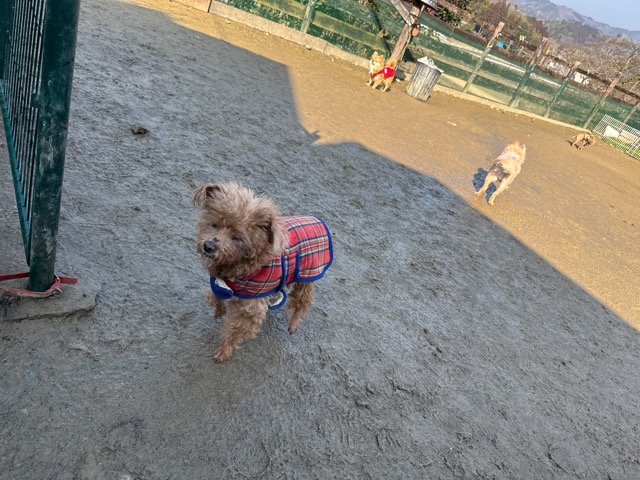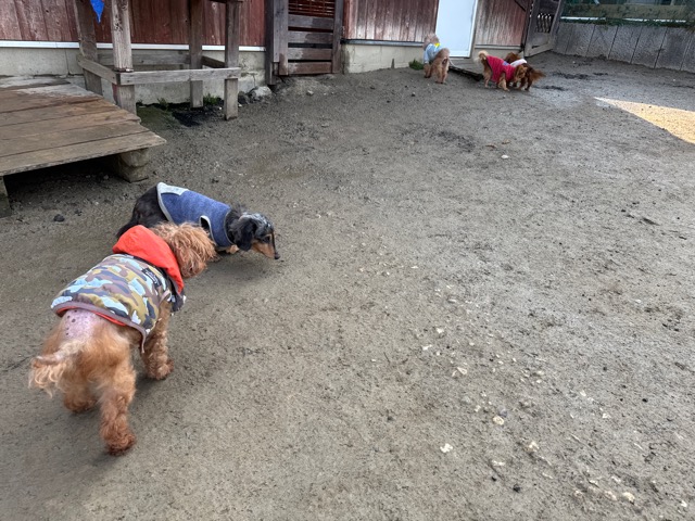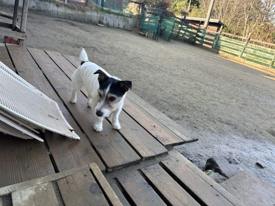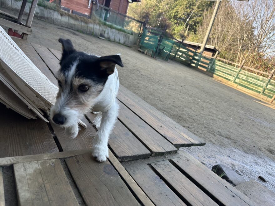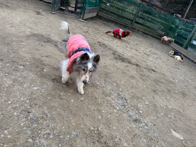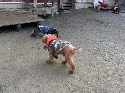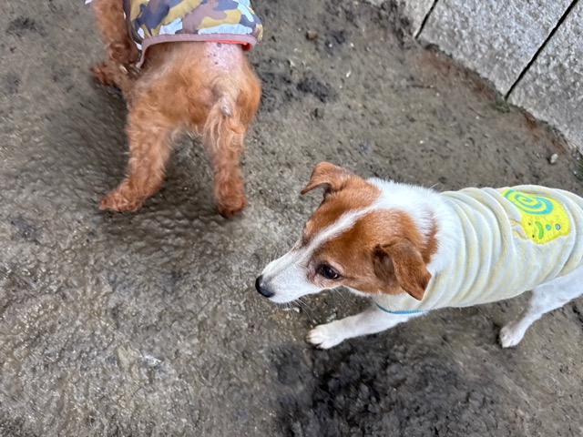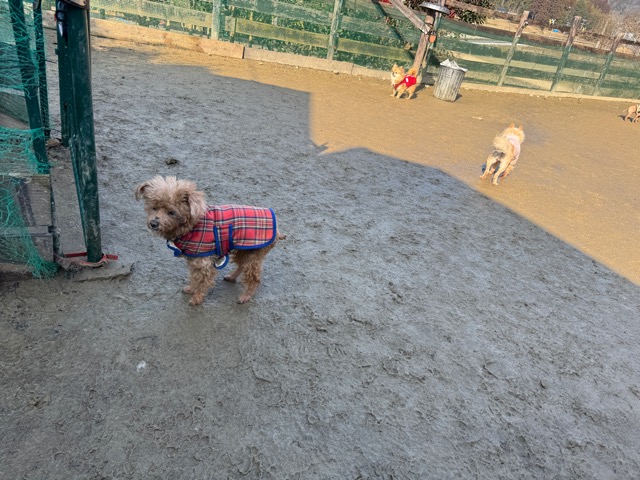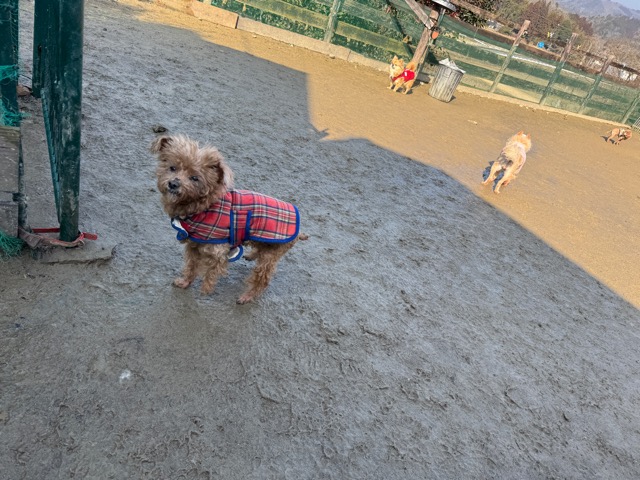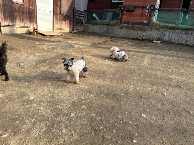 今日は元保護犬ちゃんが初保育園、怖がりさん。