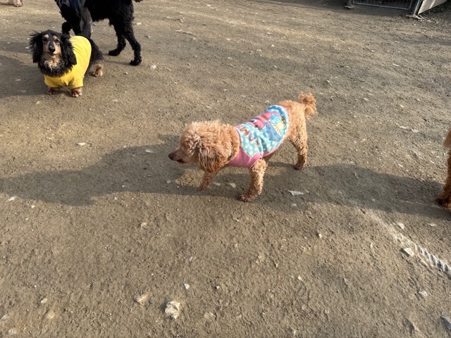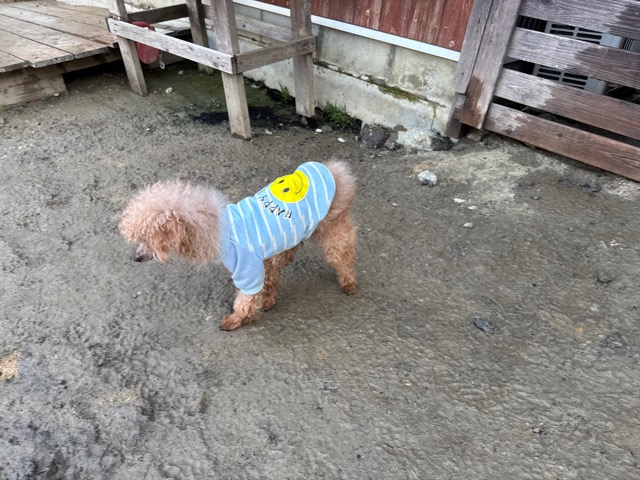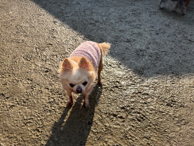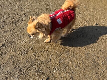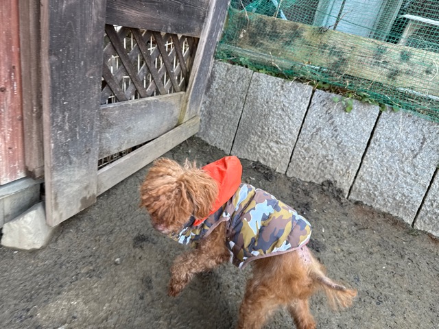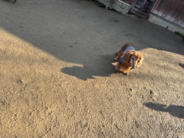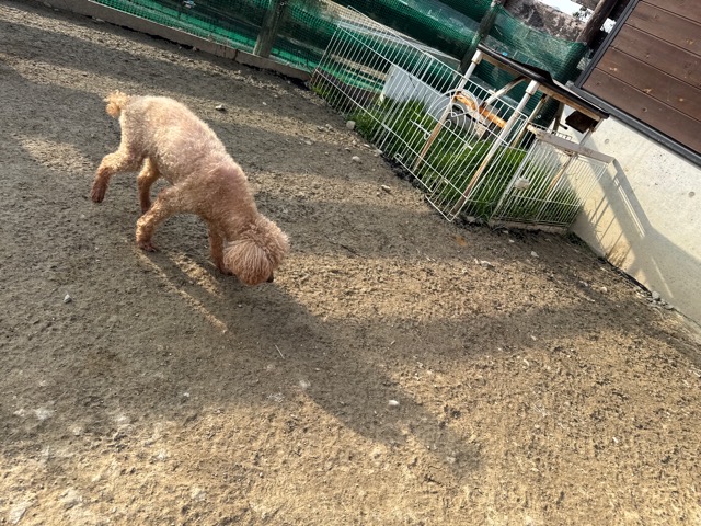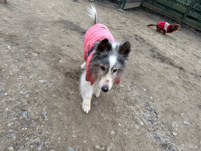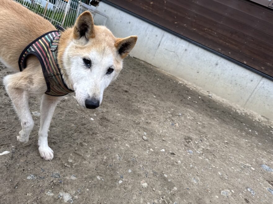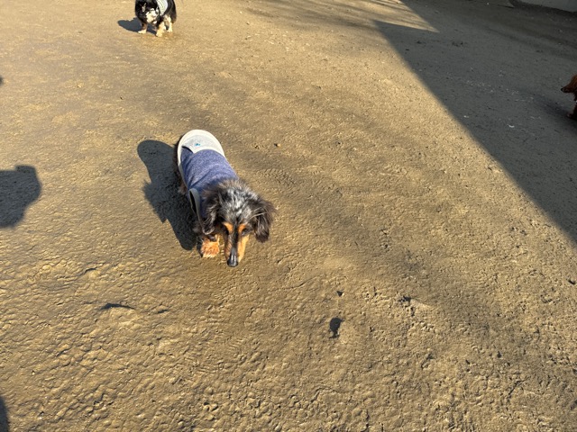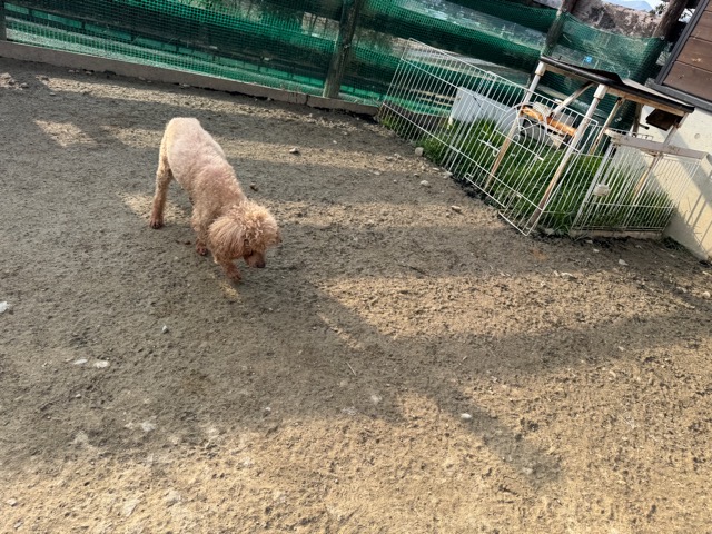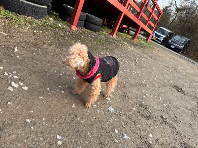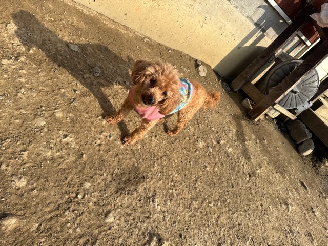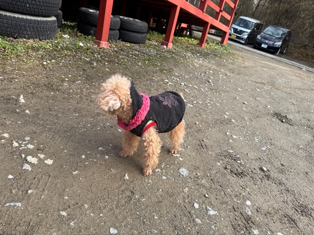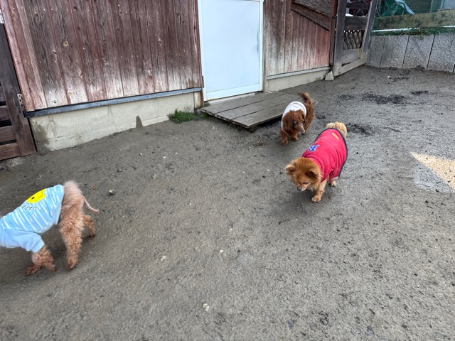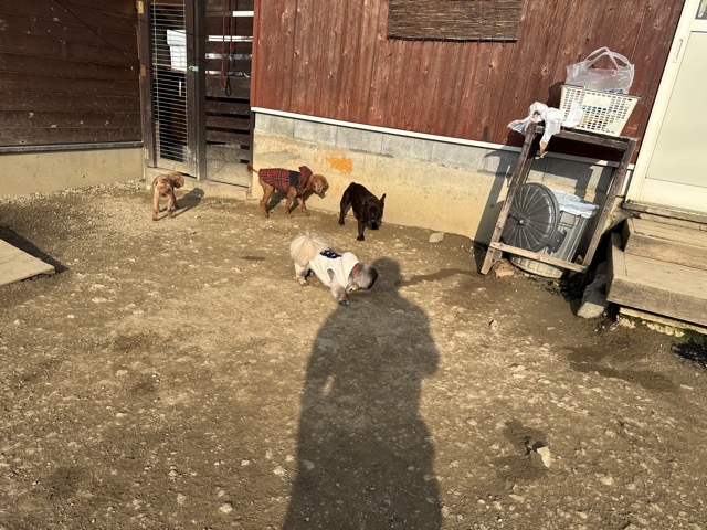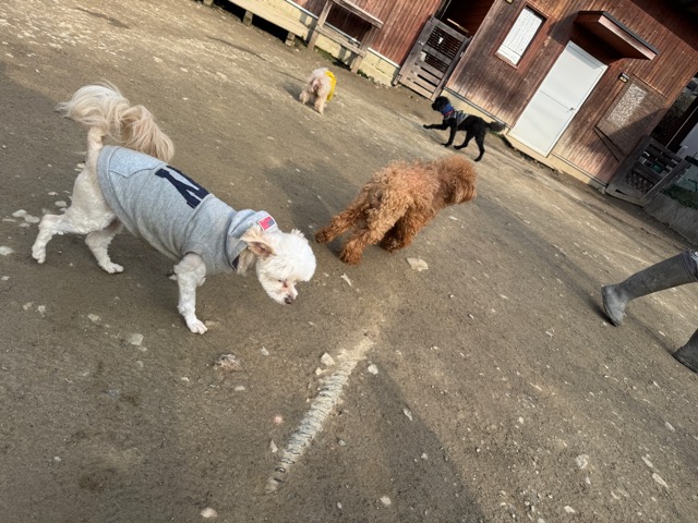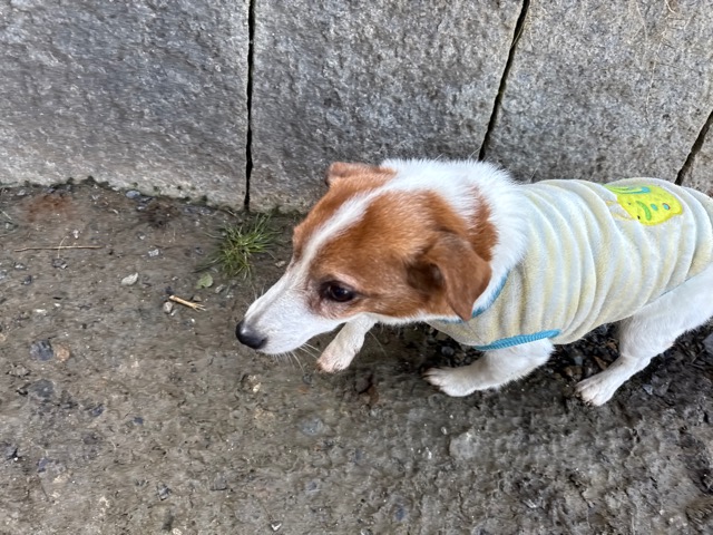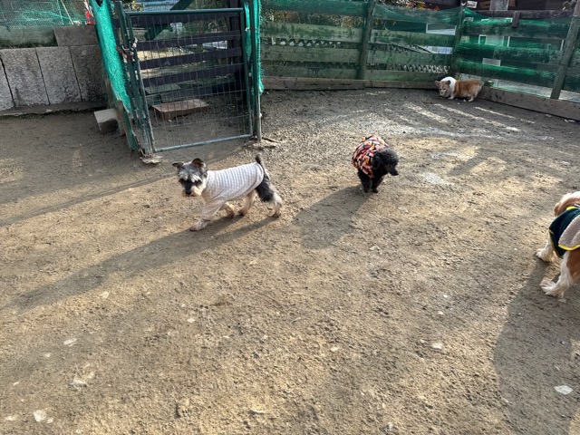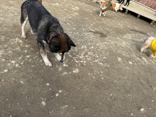 今日は元保護犬ちゃんが初保育園、怖がりさん。