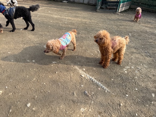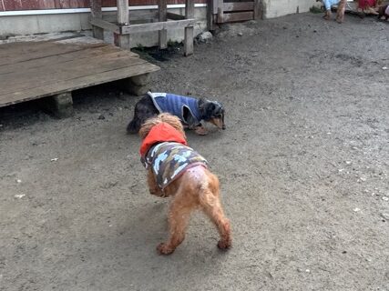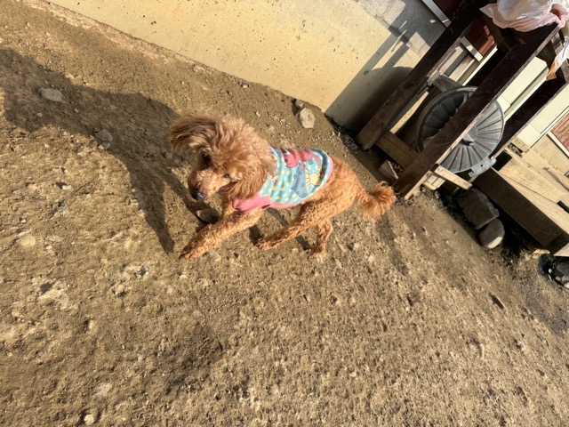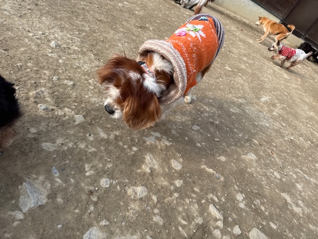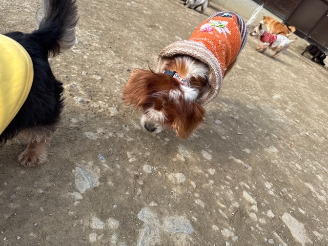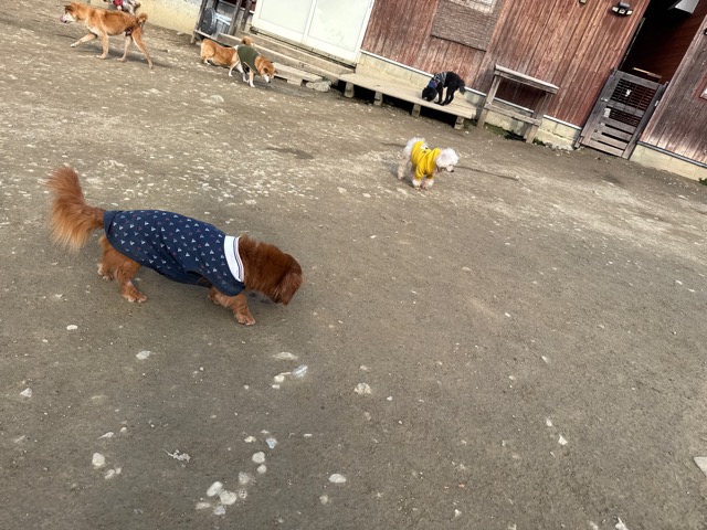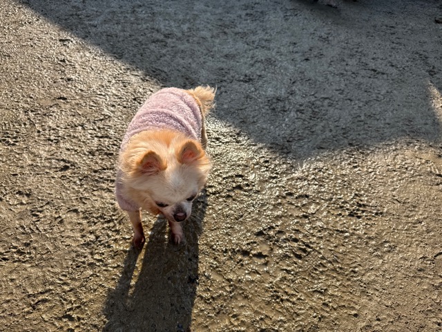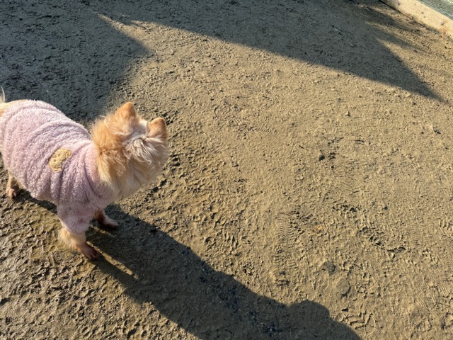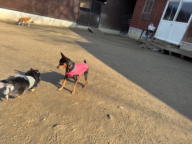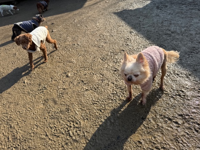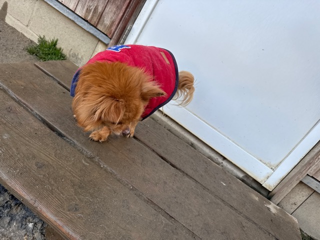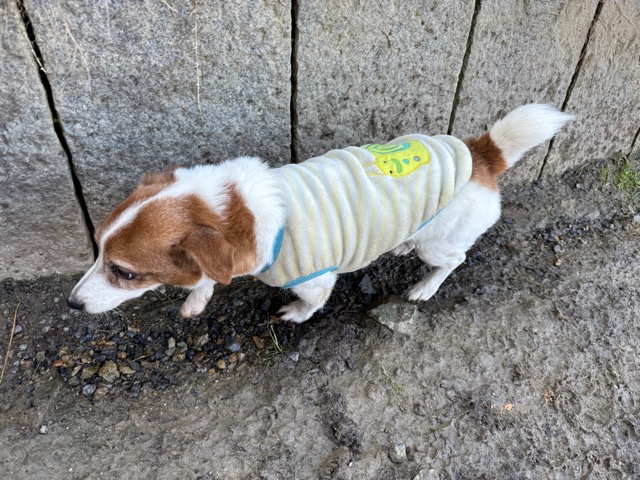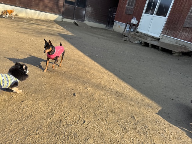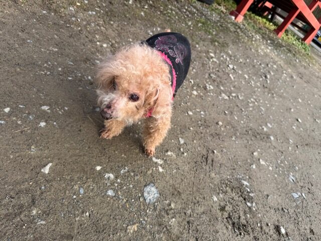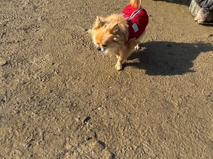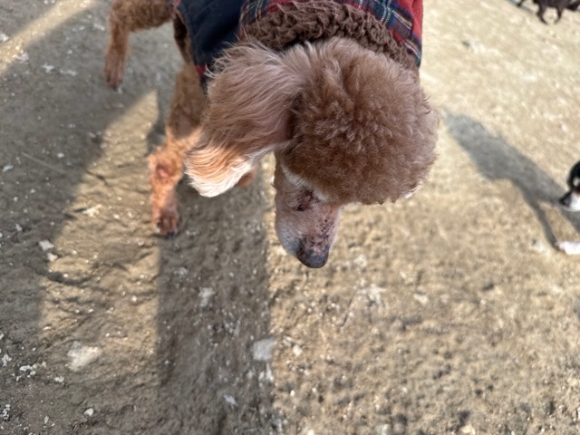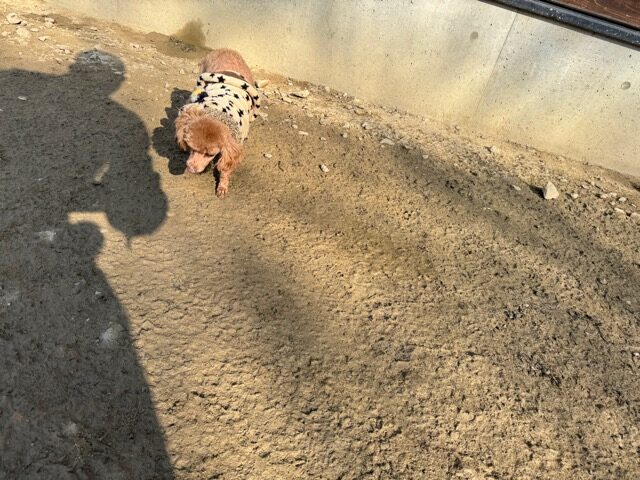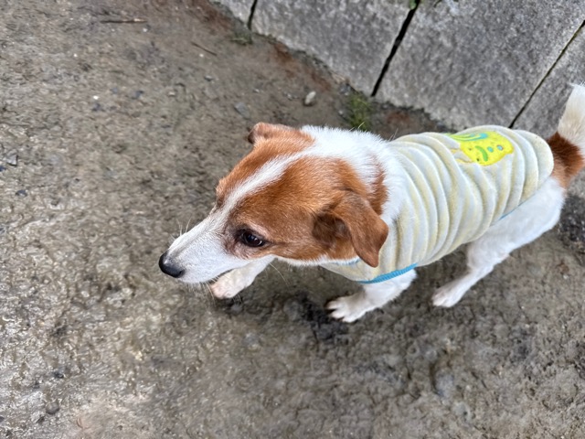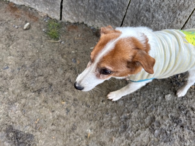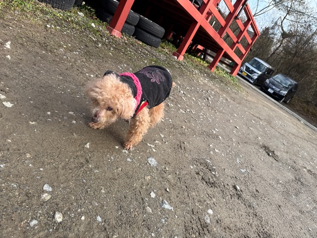 今日は元保護犬ちゃんが初保育園、怖がりさん。